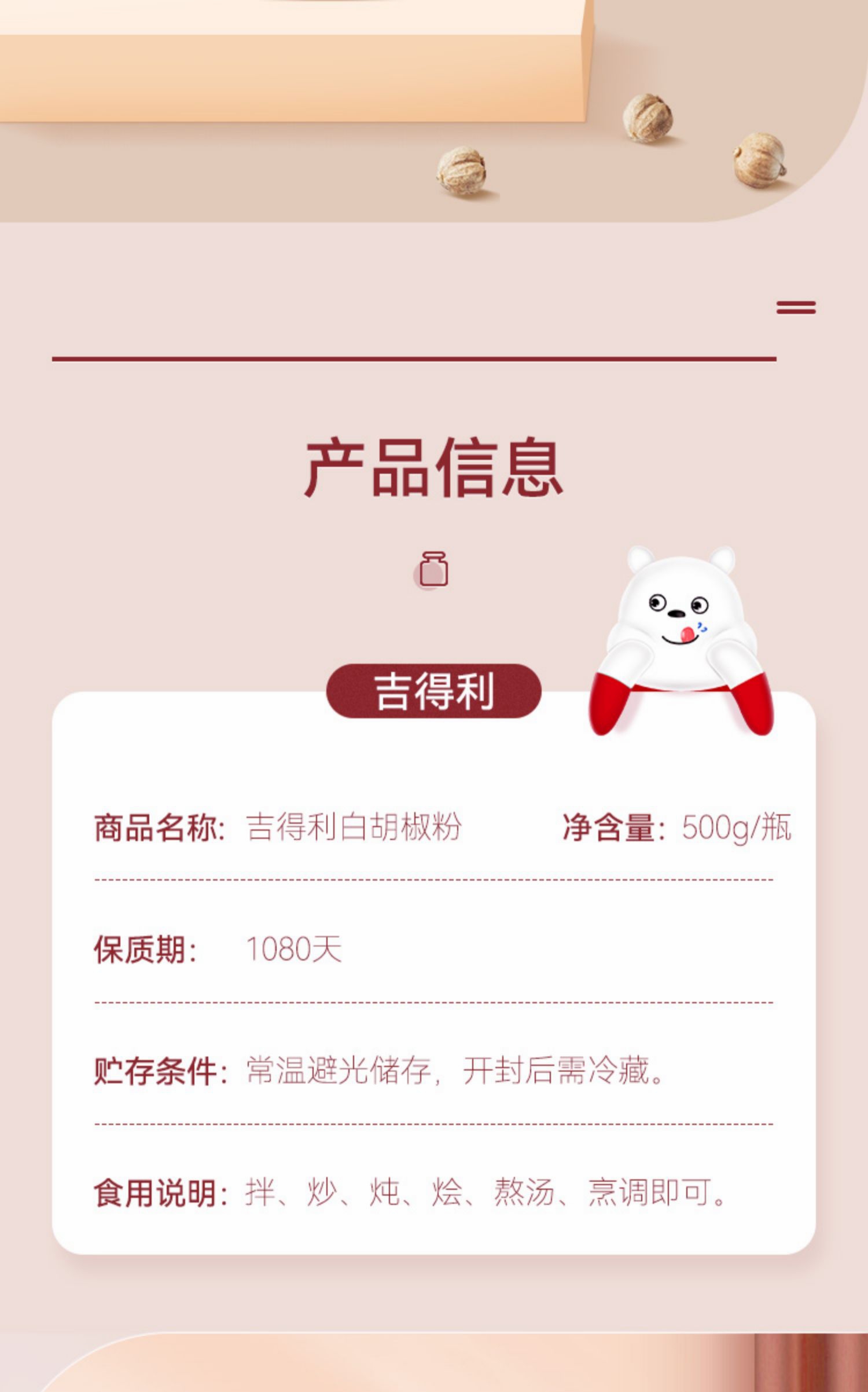 吉得利 白胡椒粉500g(制品)—rxs