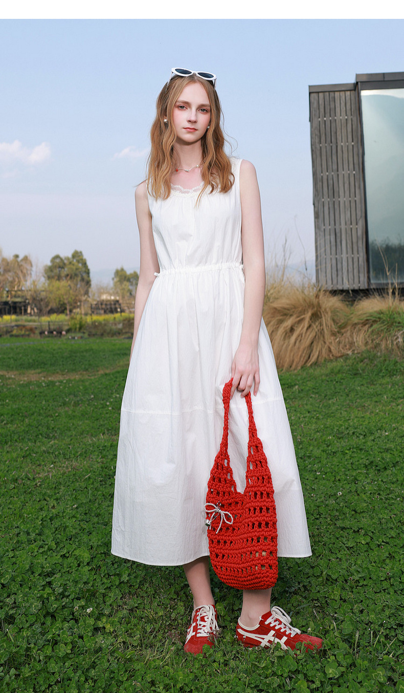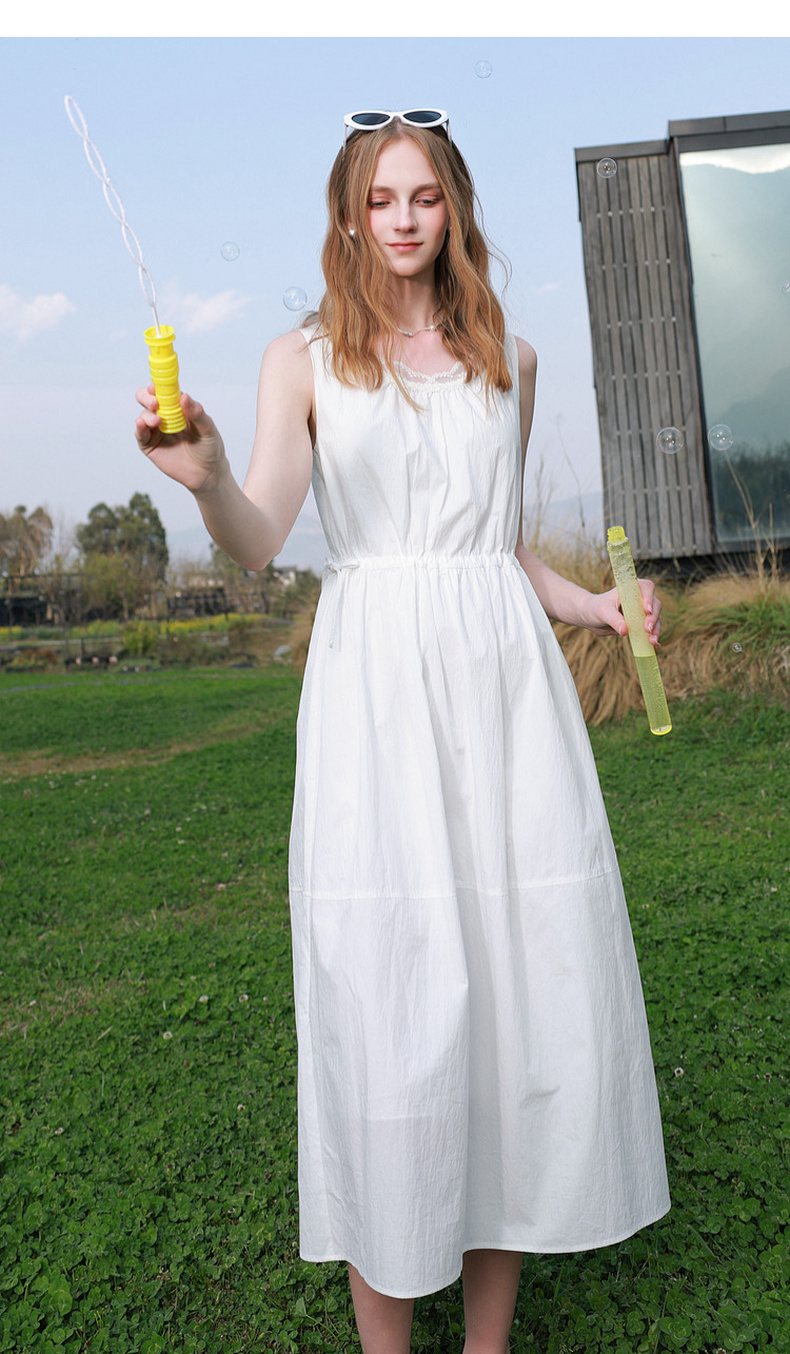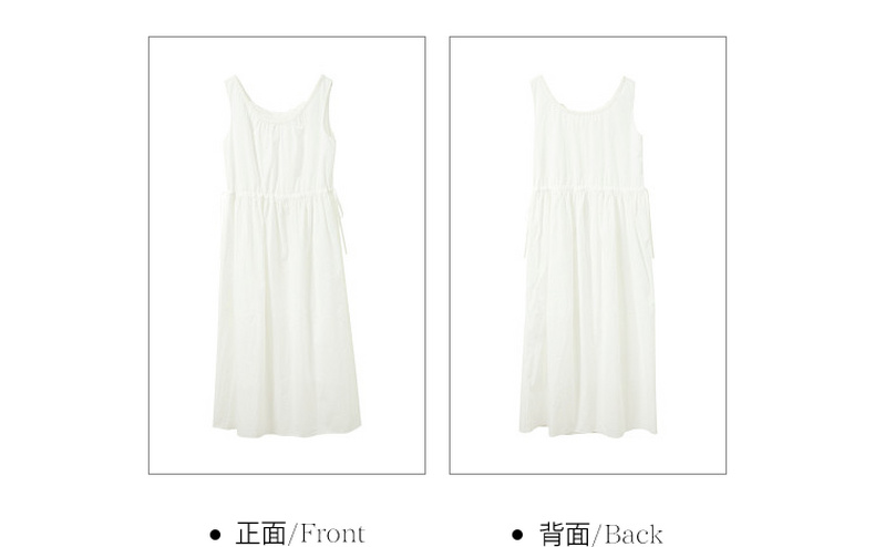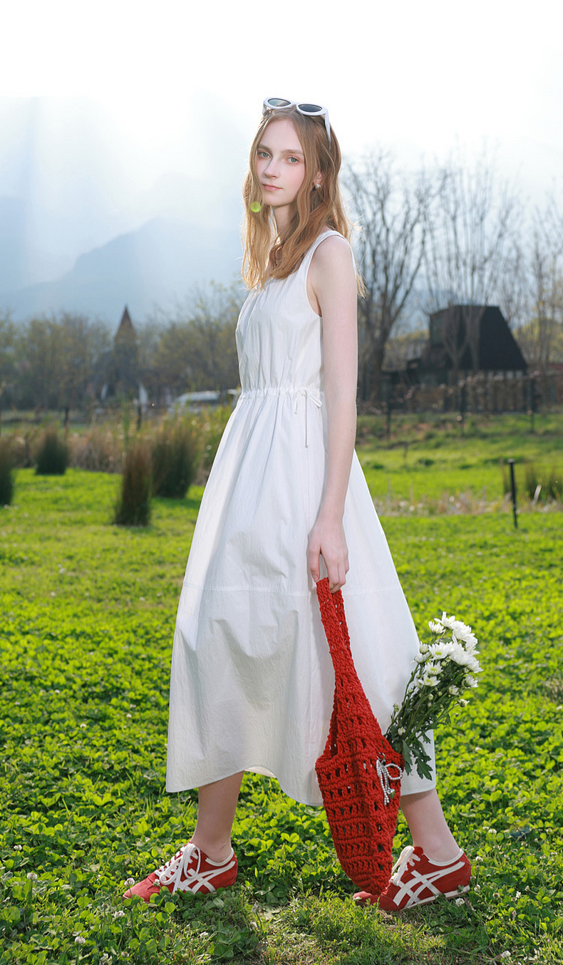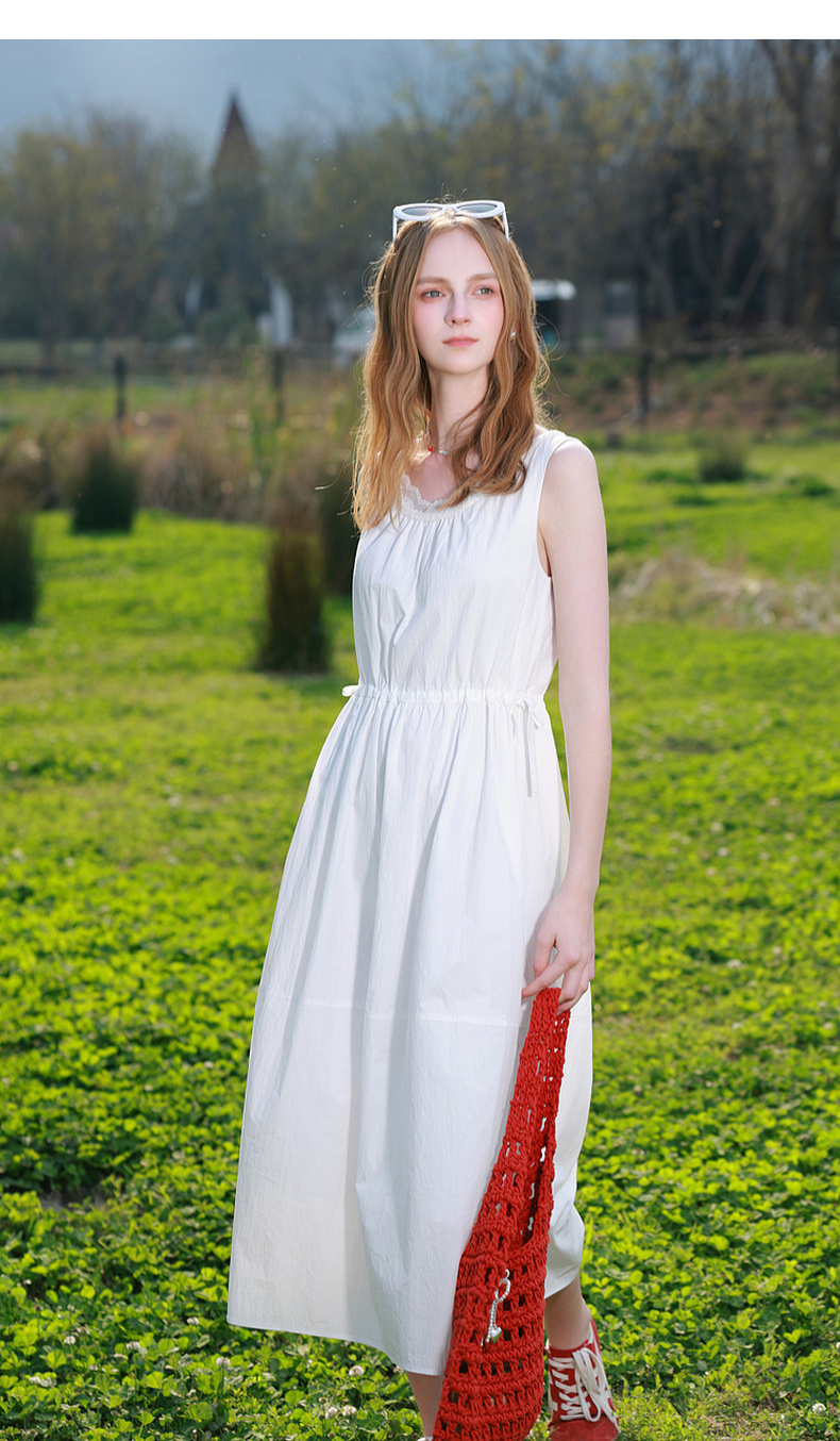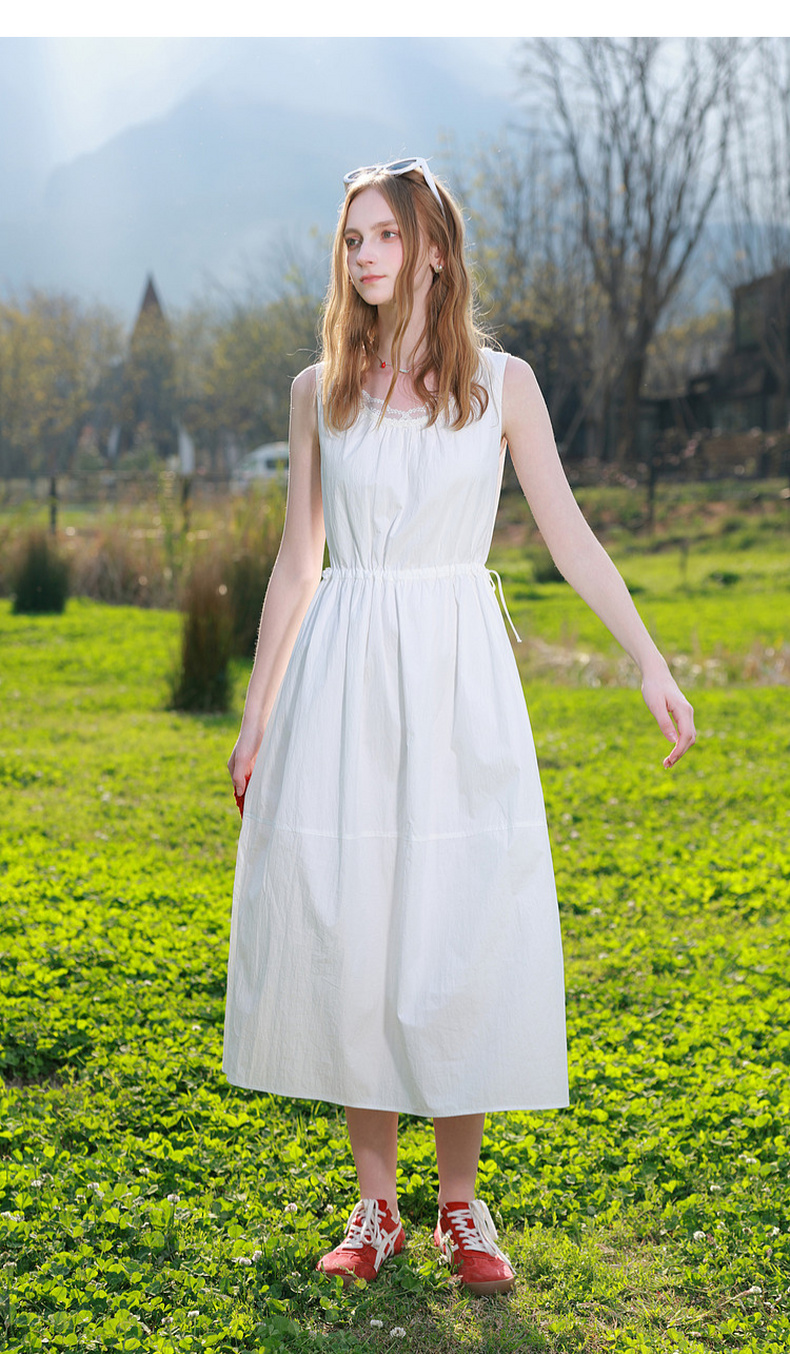 三彩2026夏季新款无袖连衣裙可调节收腰A字裙长裙M