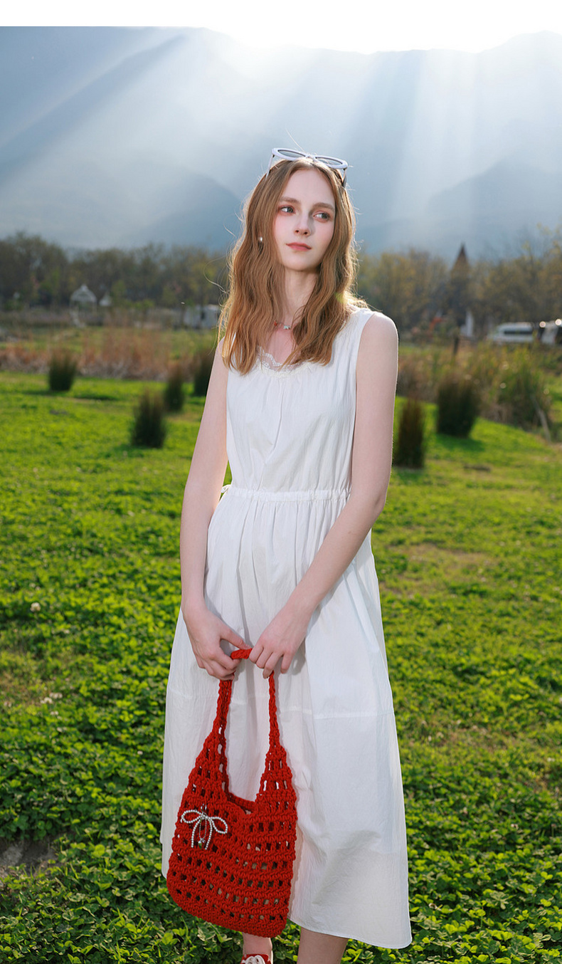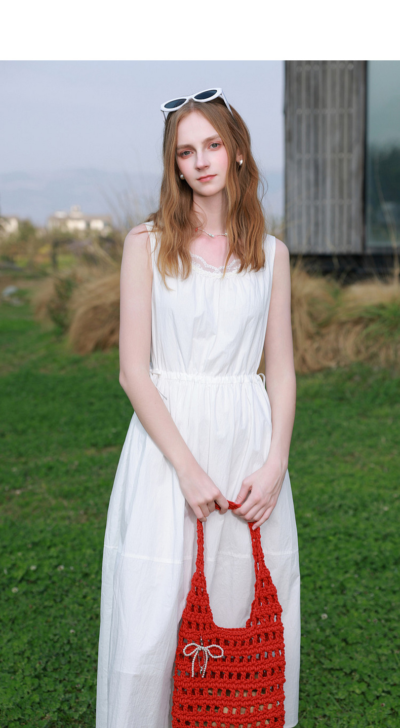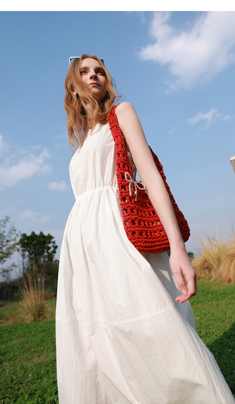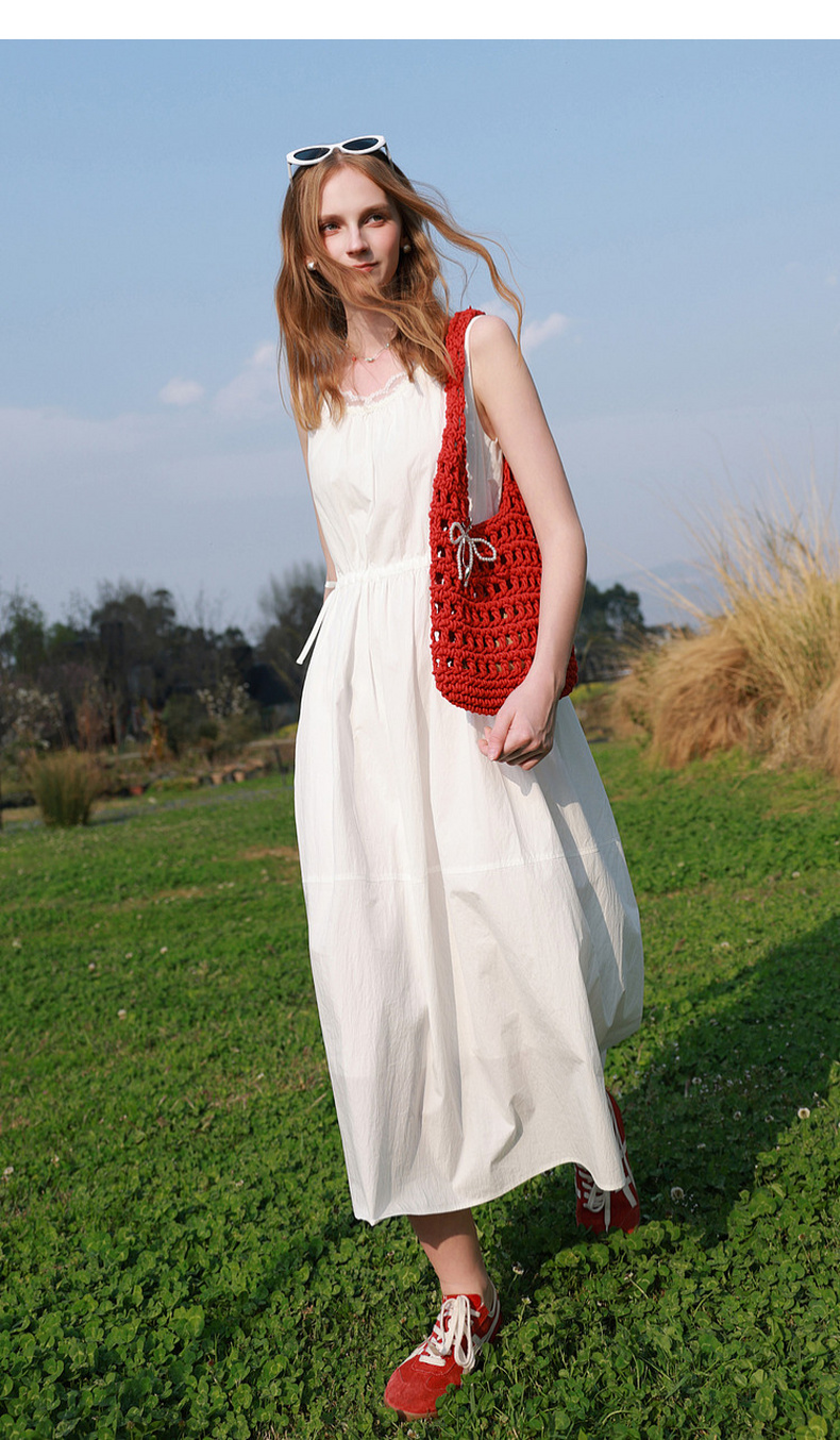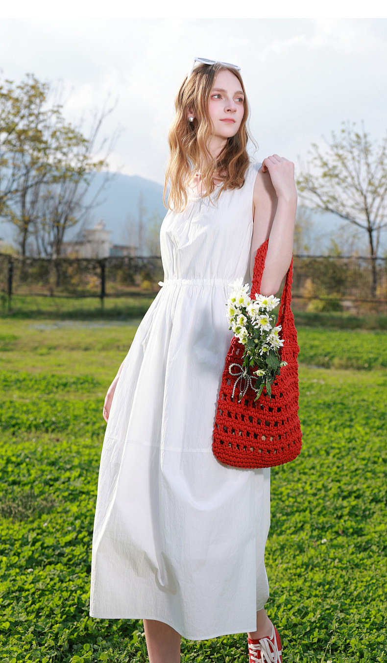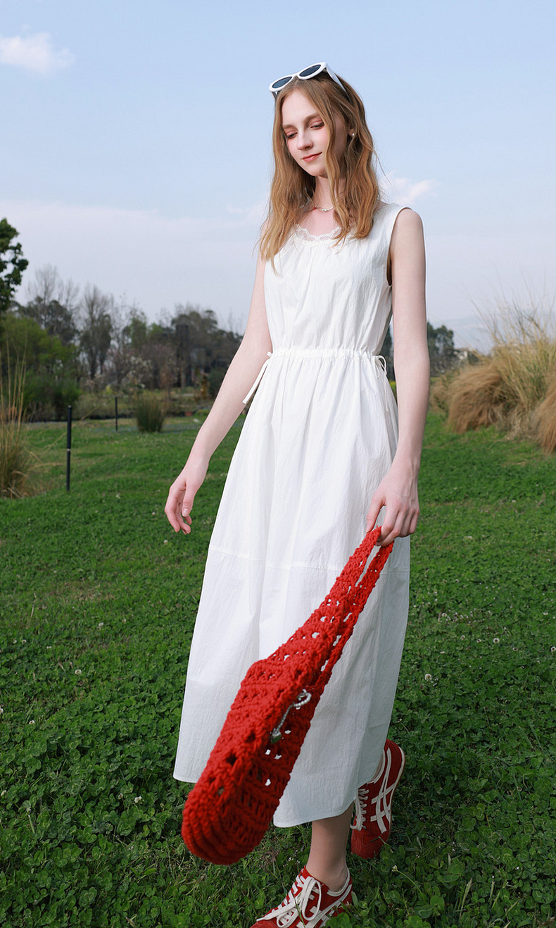 三彩2026夏季新款无袖连衣裙可调节收腰A字裙长裙M