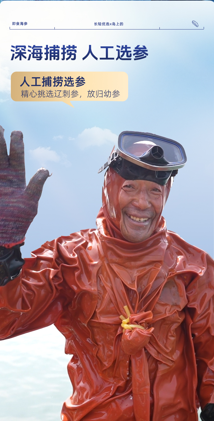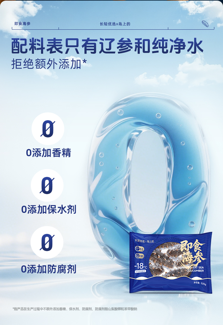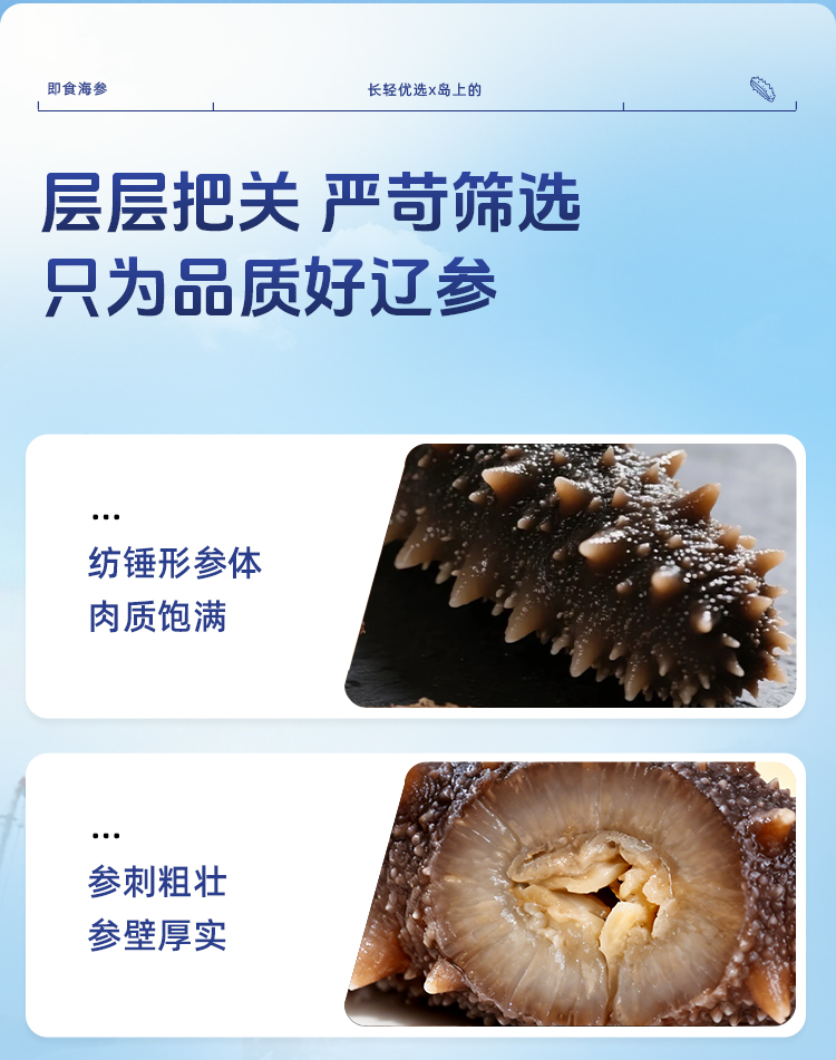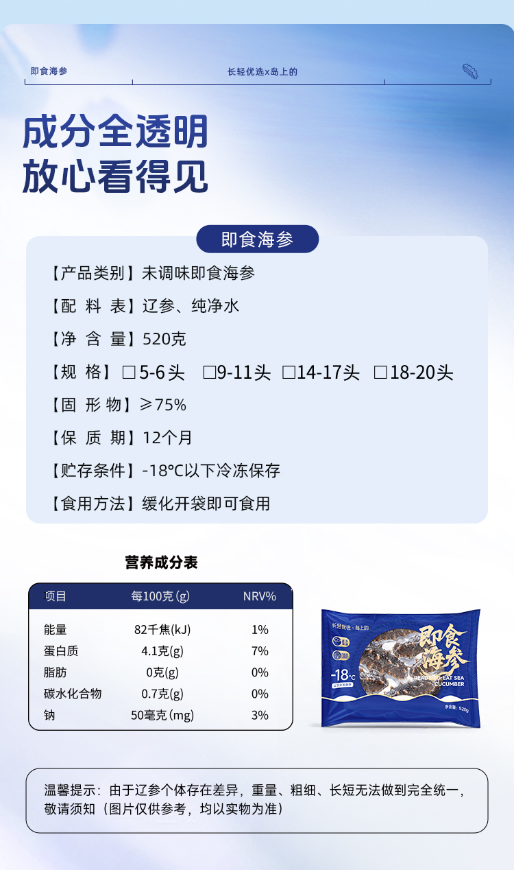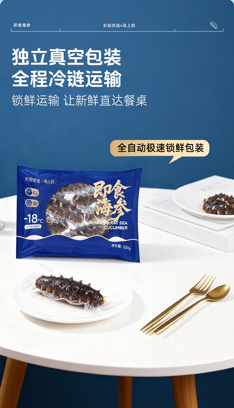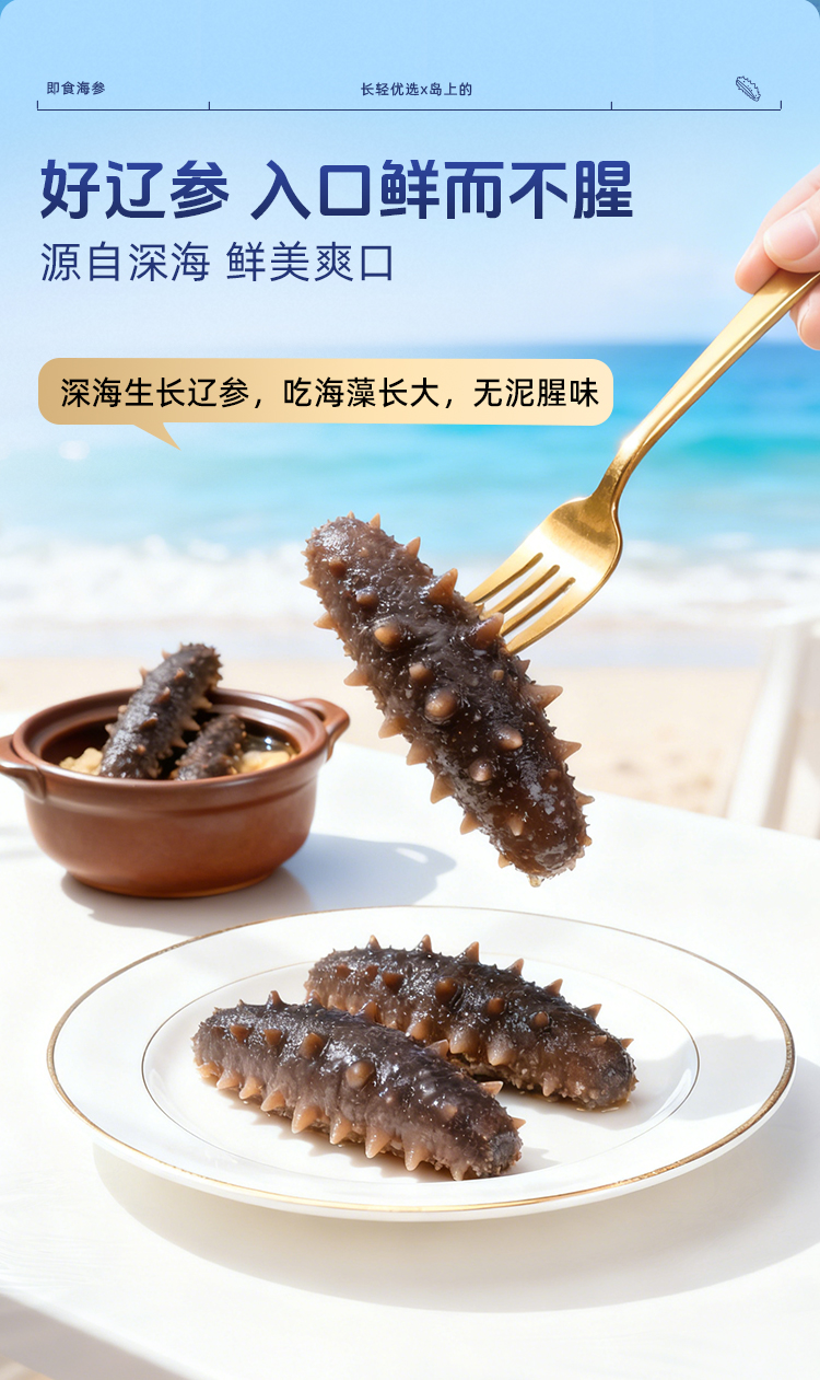 【海参半年卡】长轻优选×岛上的 即食海参 520g/袋(14-17头) 鲜美爽口营养丰富