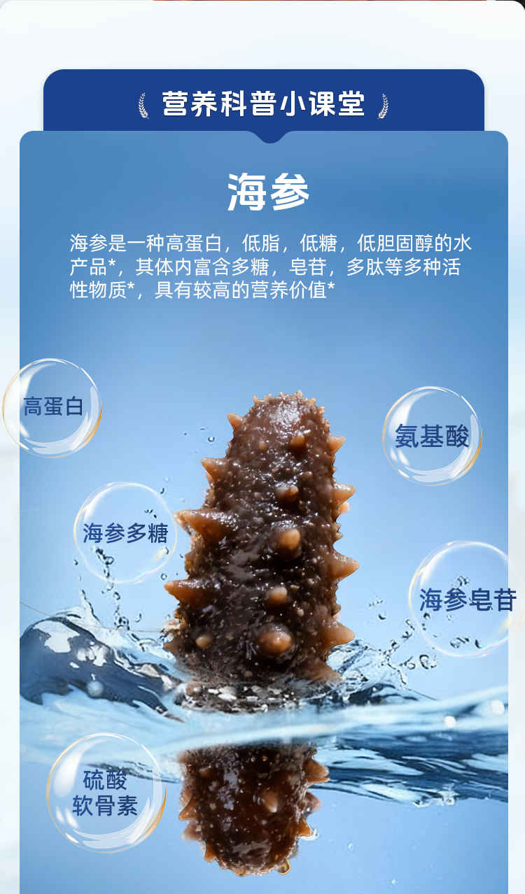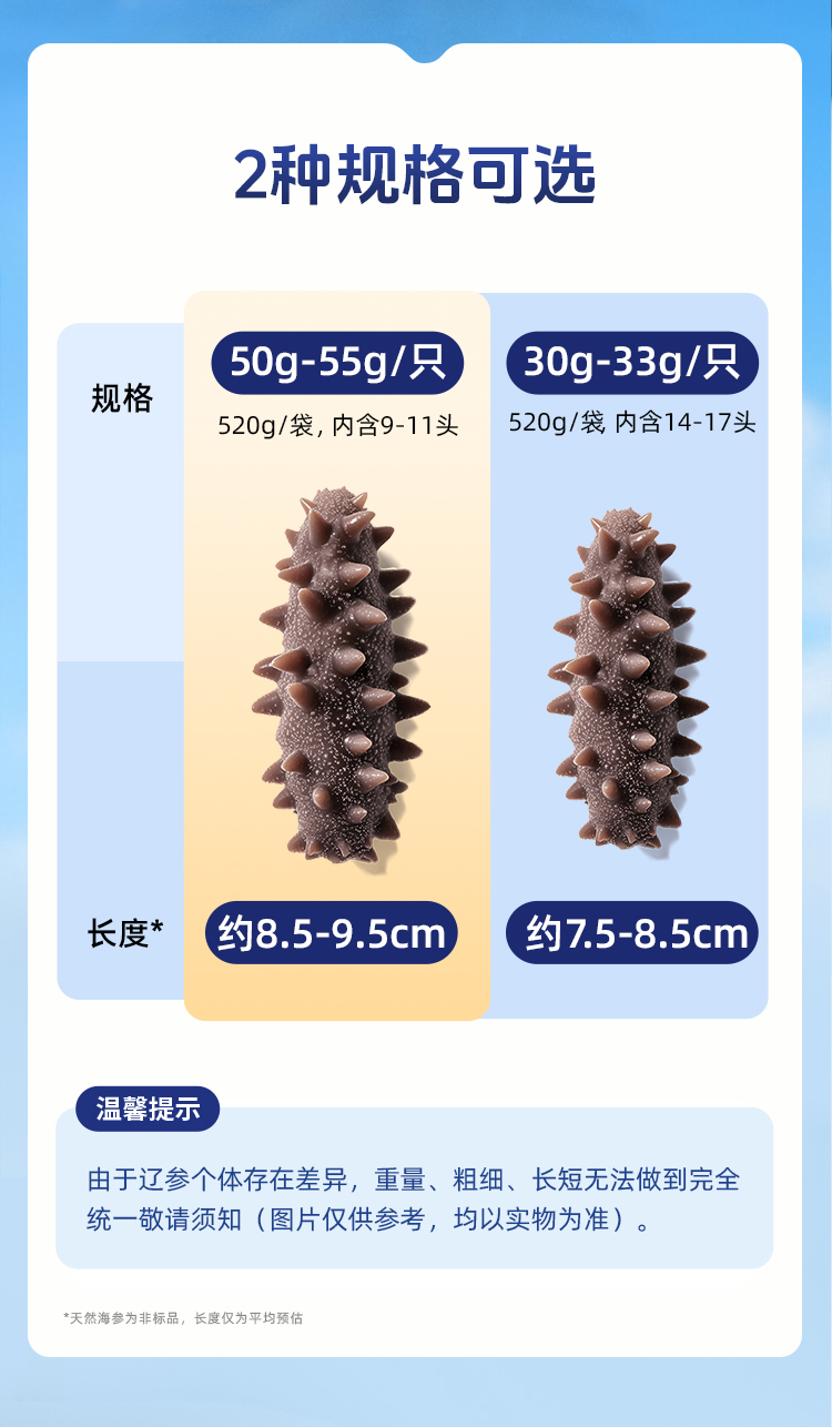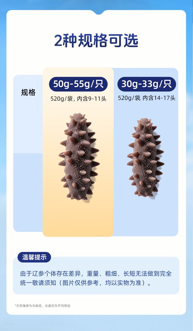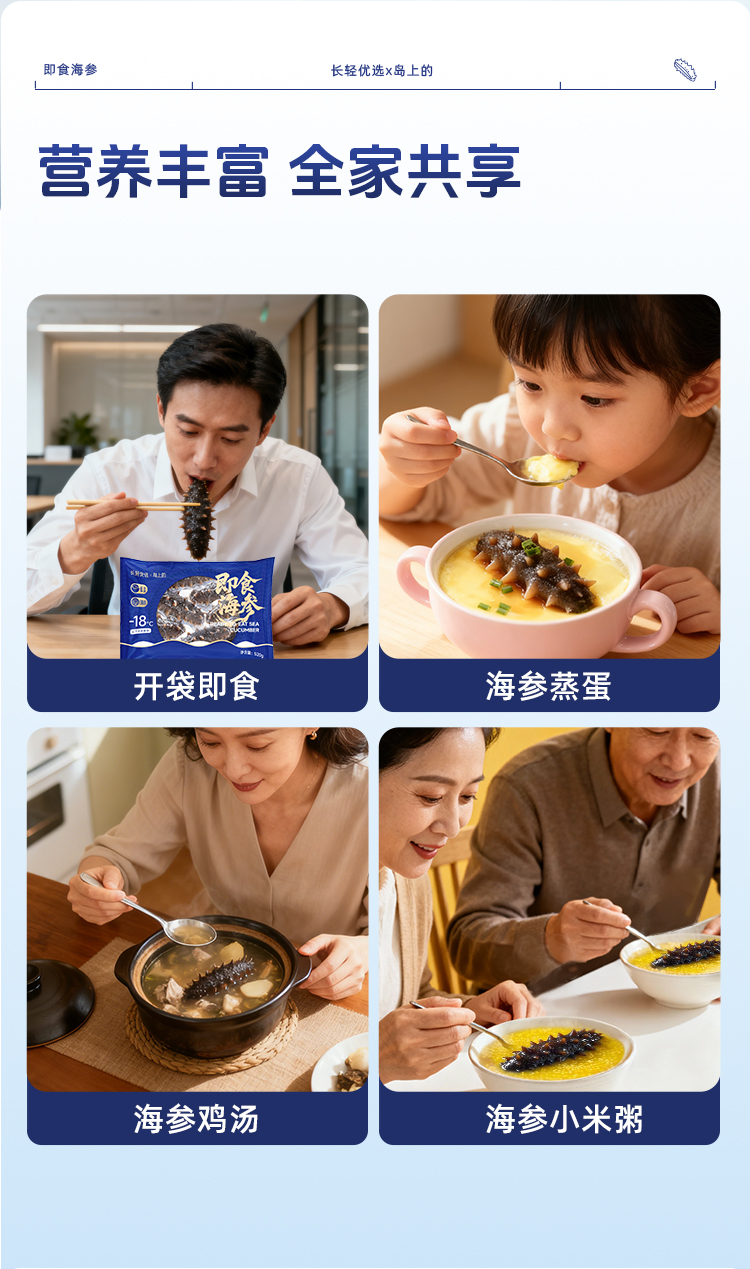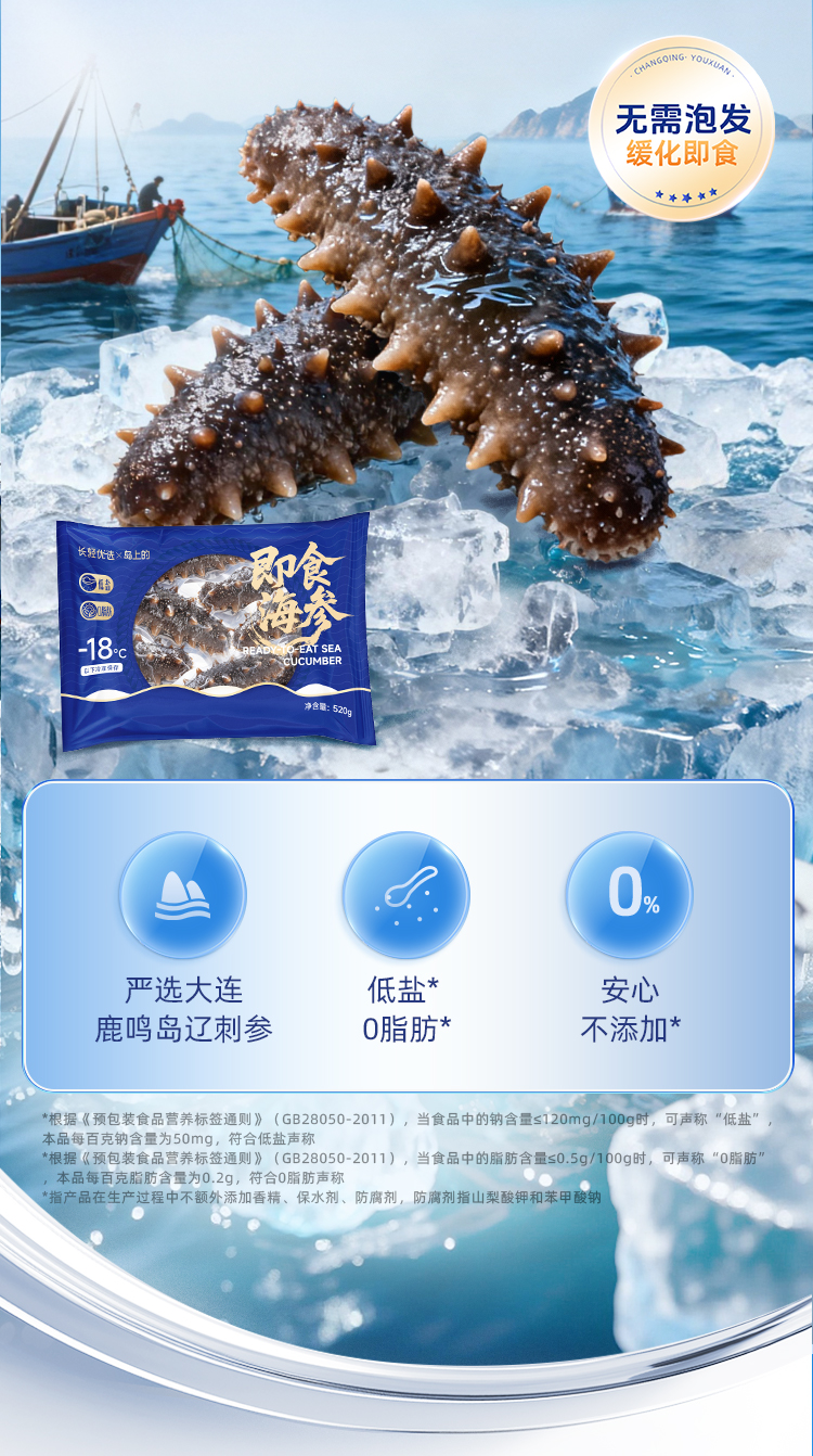 【海参半年卡】长轻优选×岛上的 即食海参 520g/袋(14-17头) 鲜美爽口营养丰富