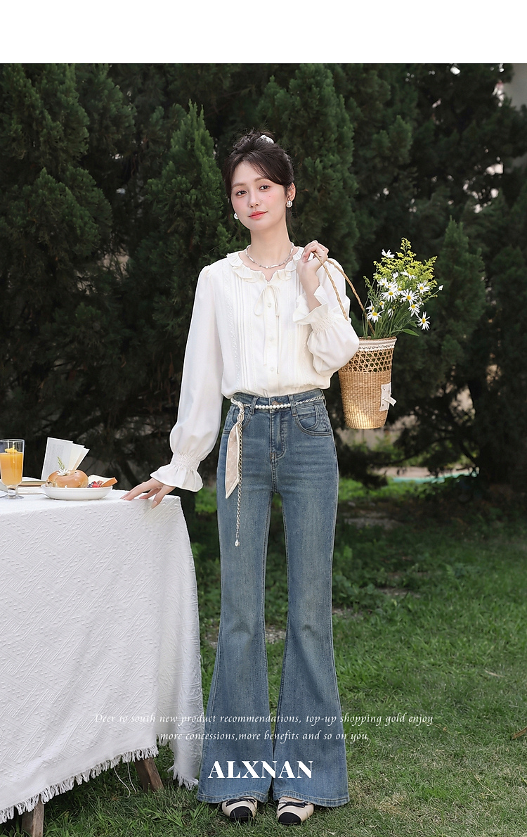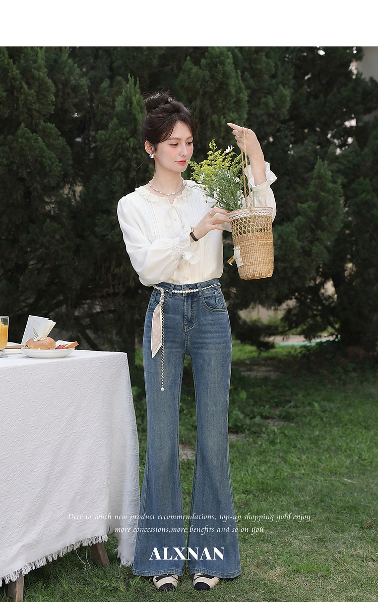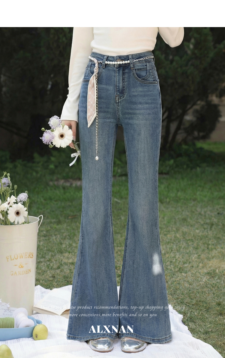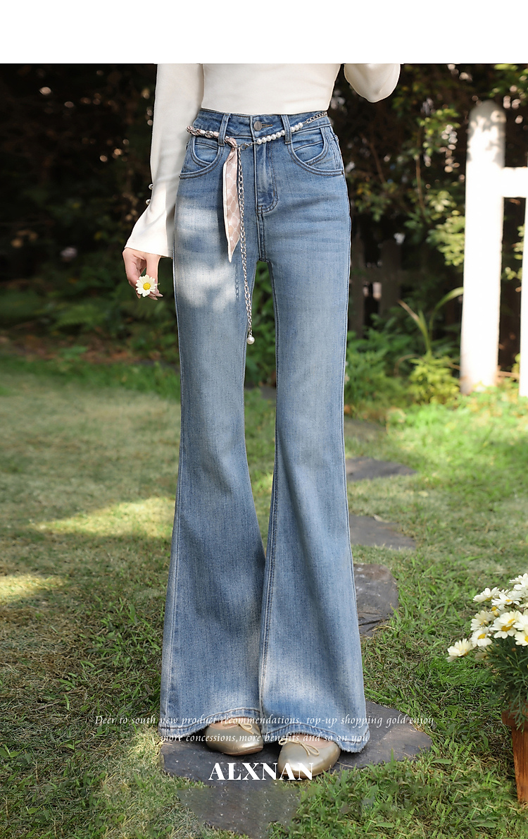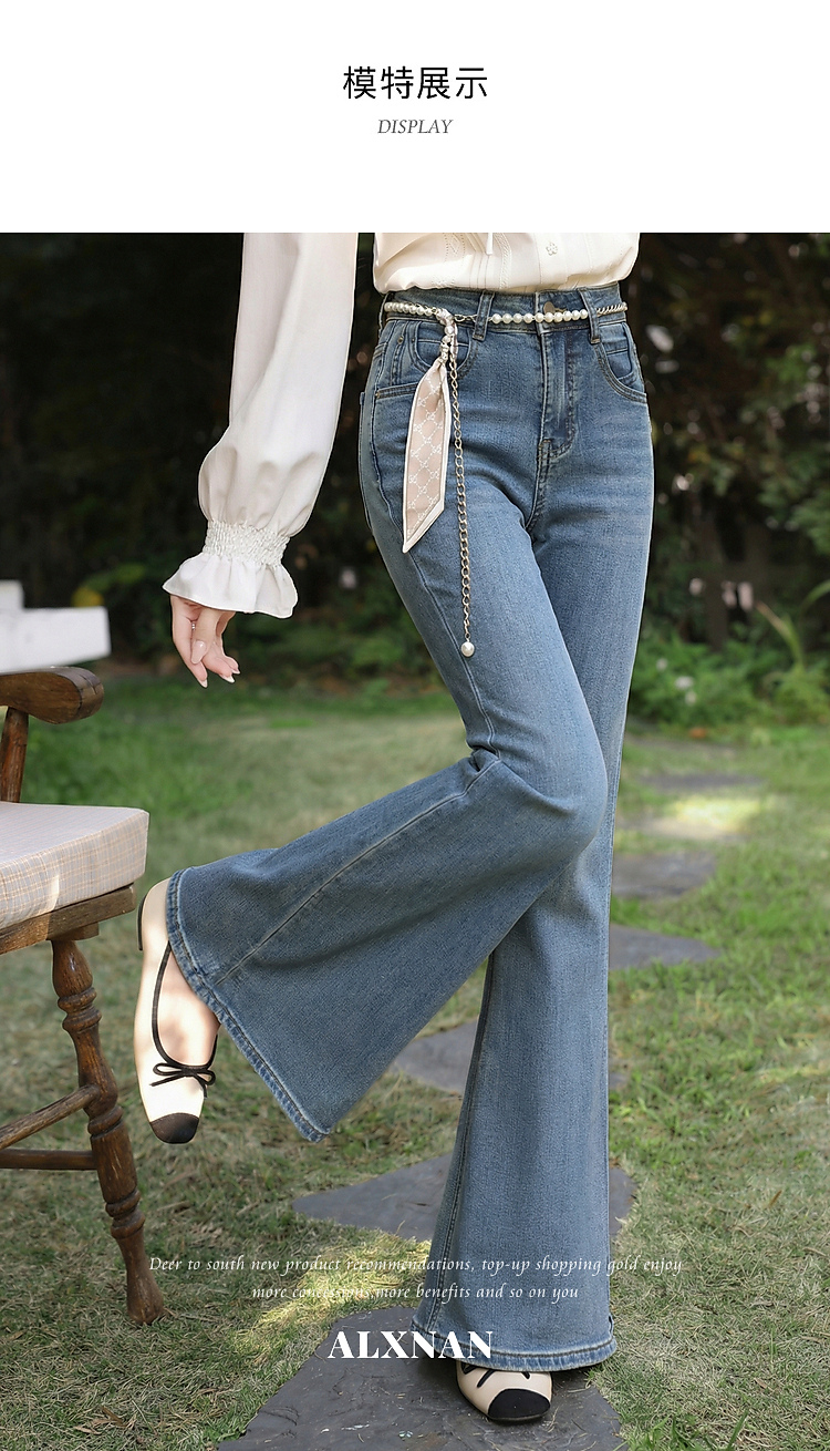 鹿向南「枫糖落日」复古蓝小个子直筒微喇牛仔裤春季显瘦长裤子女