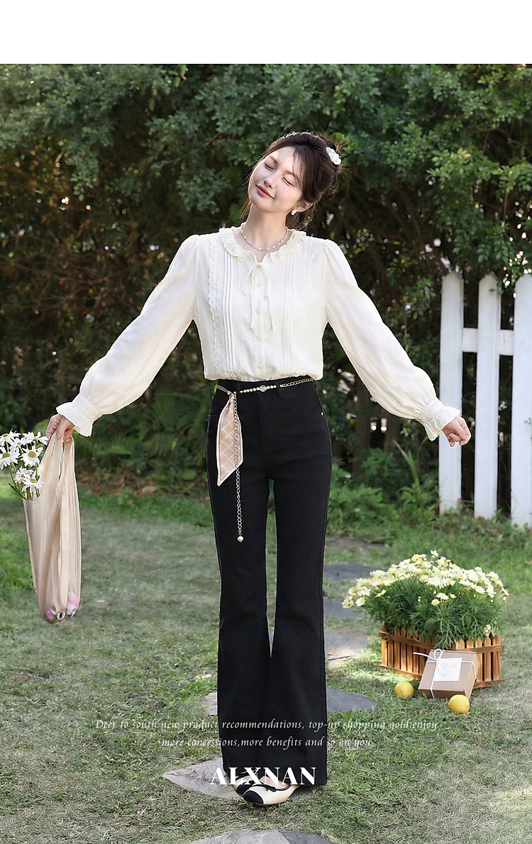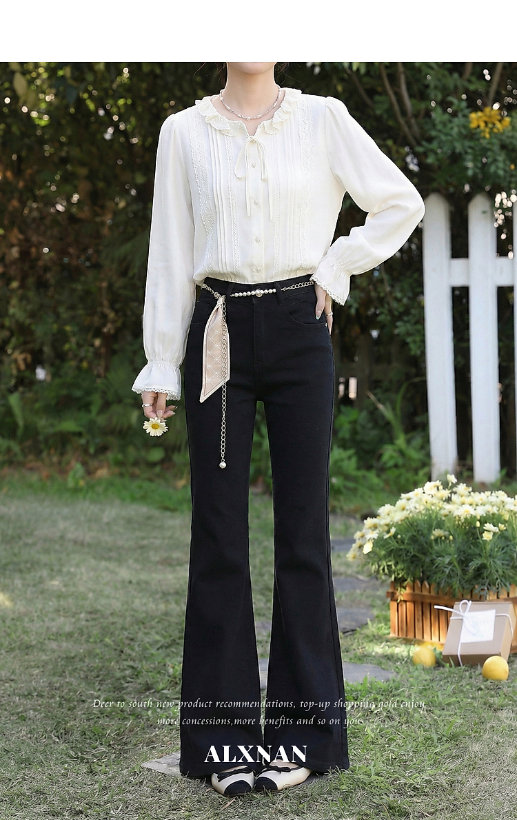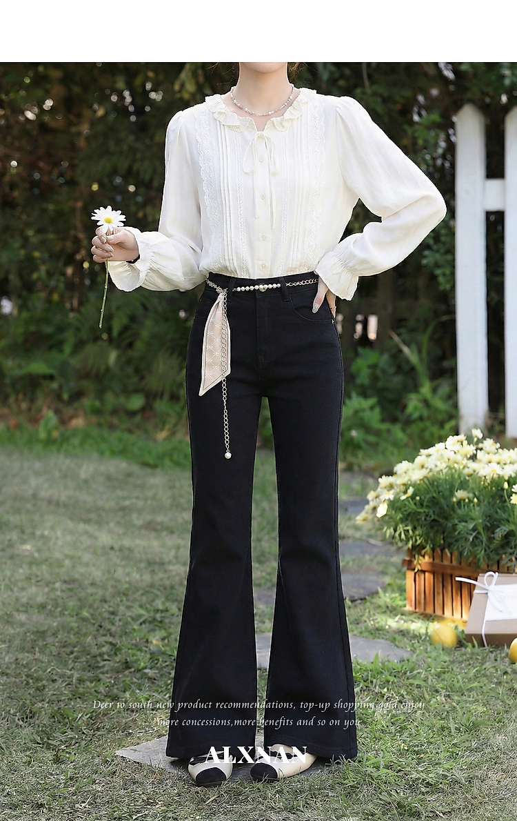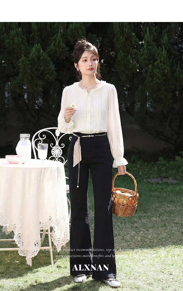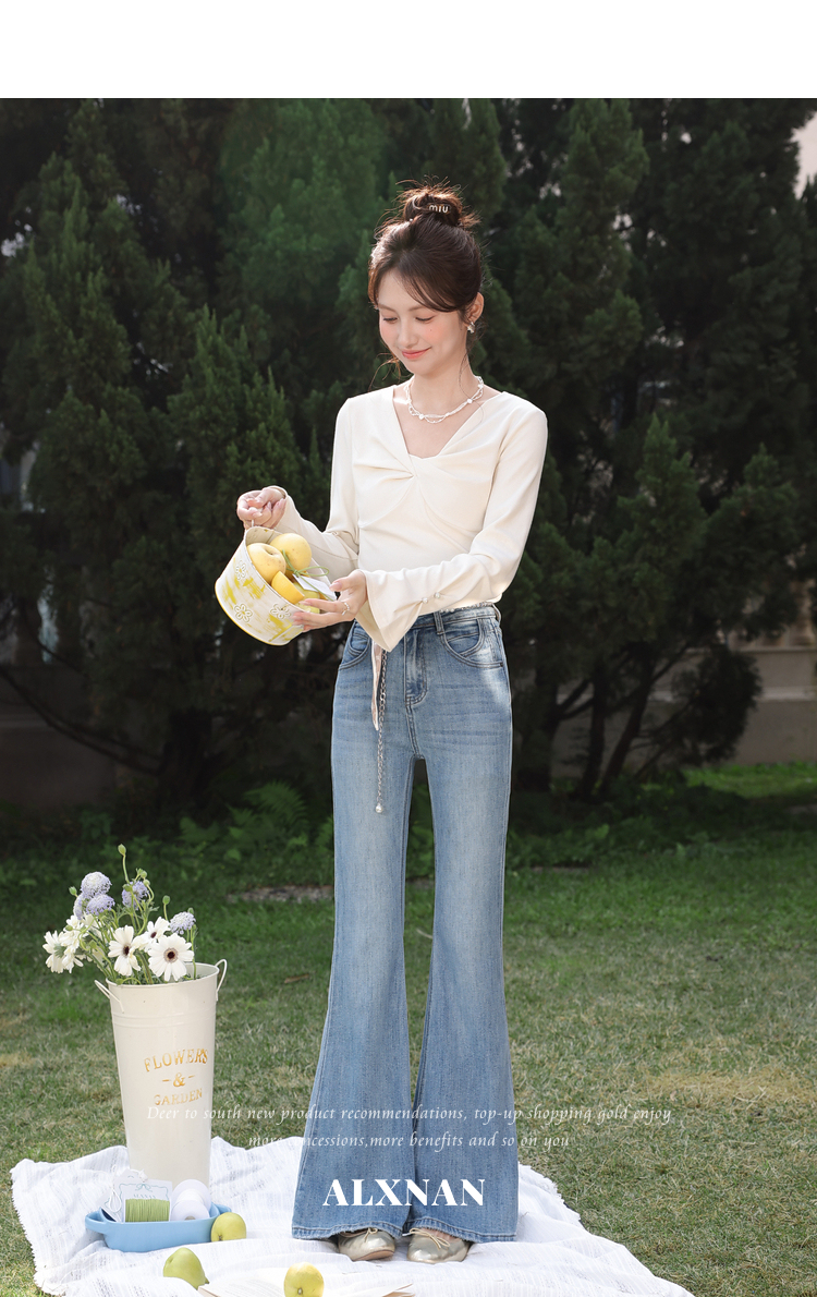 鹿向南「枫糖落日」复古蓝小个子直筒微喇牛仔裤春季显瘦长裤子女