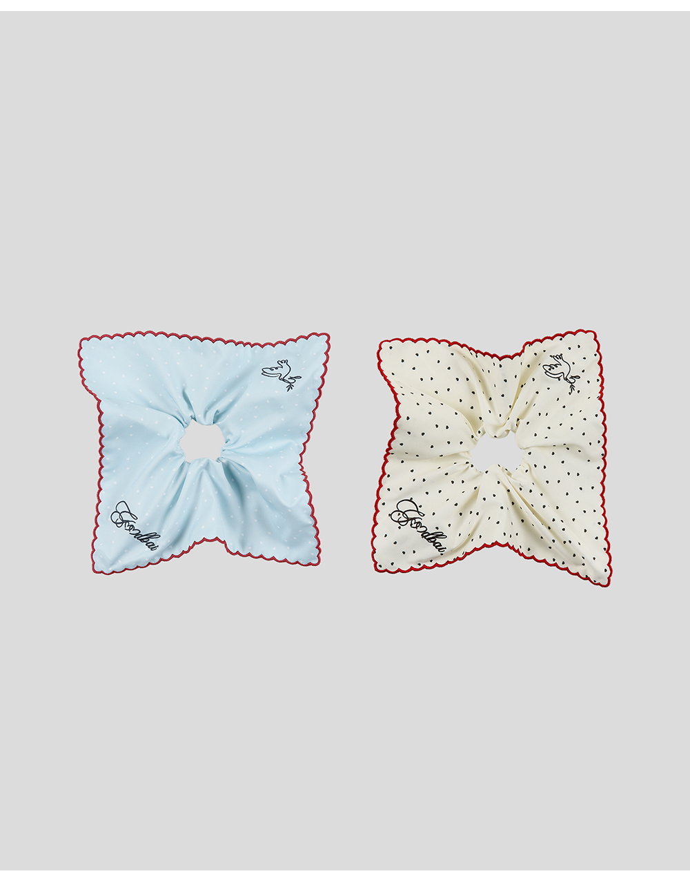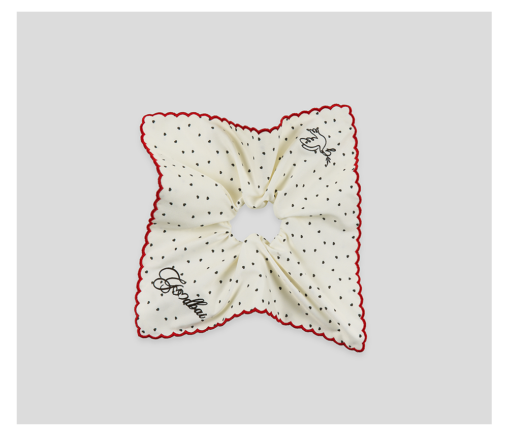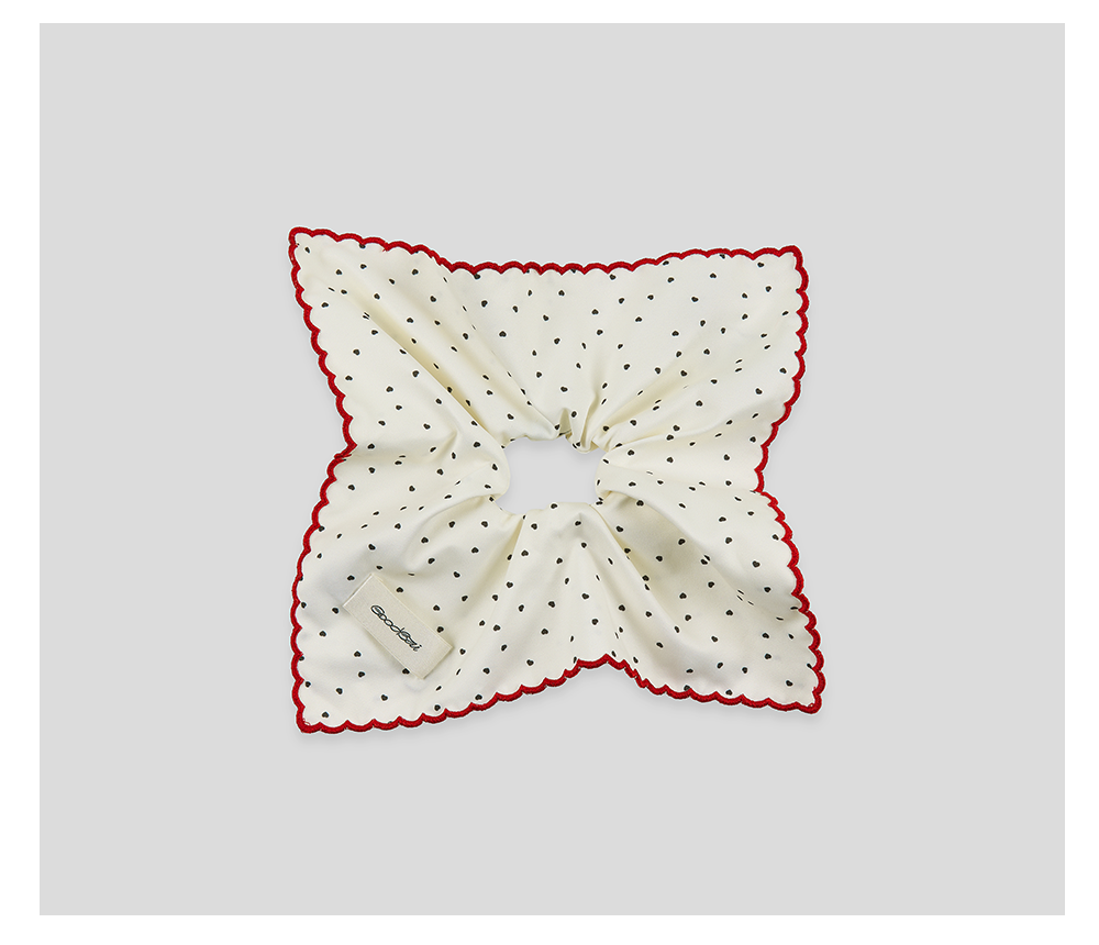 GOODBAI 新款花体刺绣logo撞色爱心波点方巾发圈女
