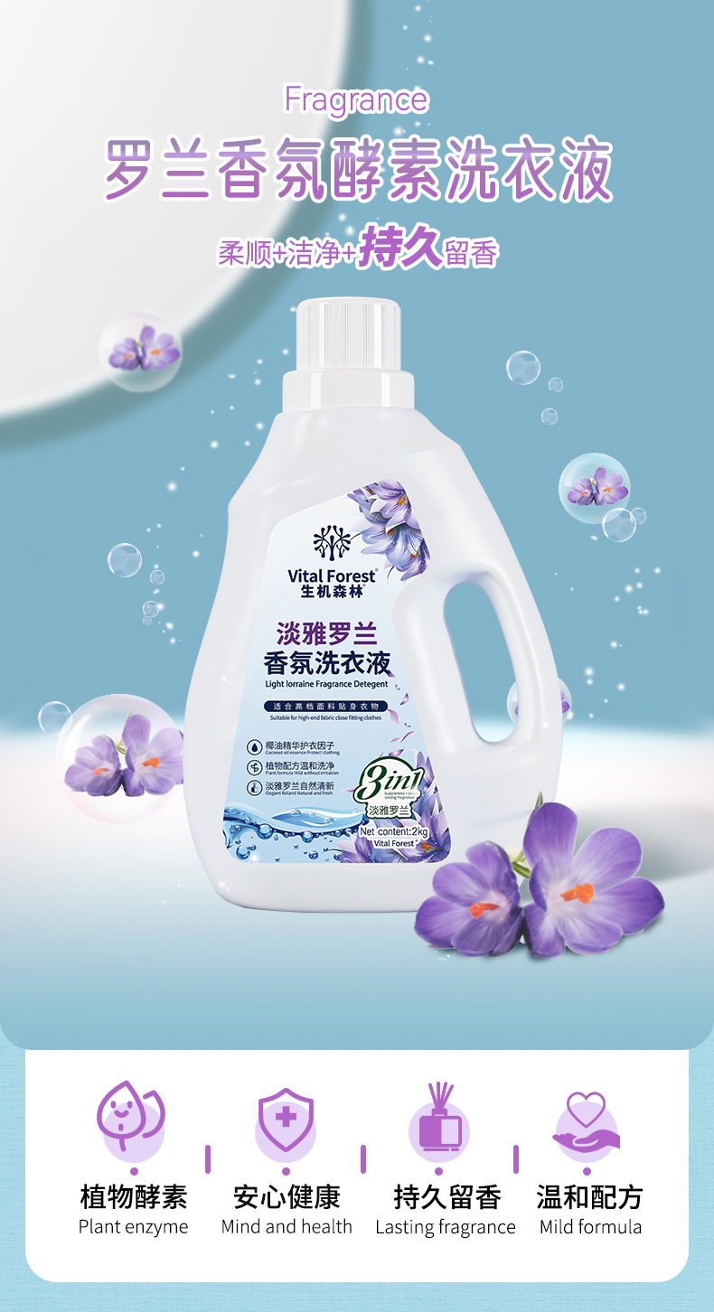 生机森林淡雅罗兰 香氛酵素洗衣液,爆炸盐,2kg*6桶+80g*6袋爆炸盐