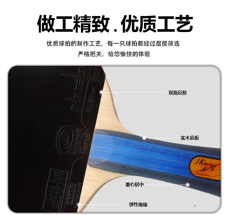 【双12特惠】金满贯蝴蝶王维斯结构外置蓝芳碳乒乓底板