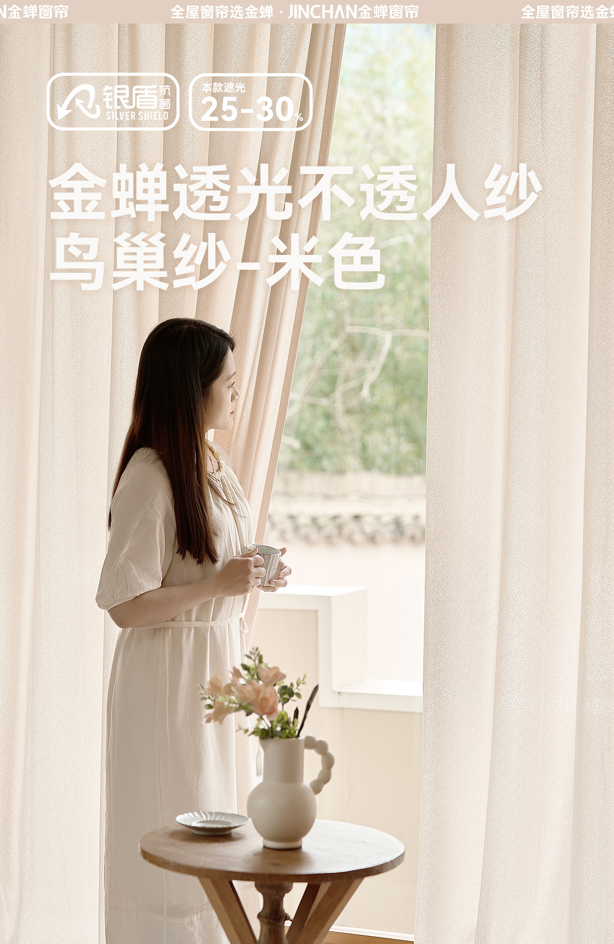 【鸟巢纱】 金蝉新款抗菌窗纱透光不透人纱帘
