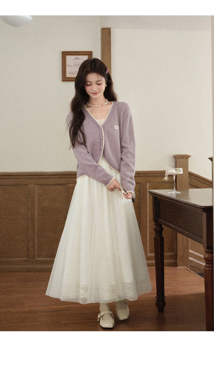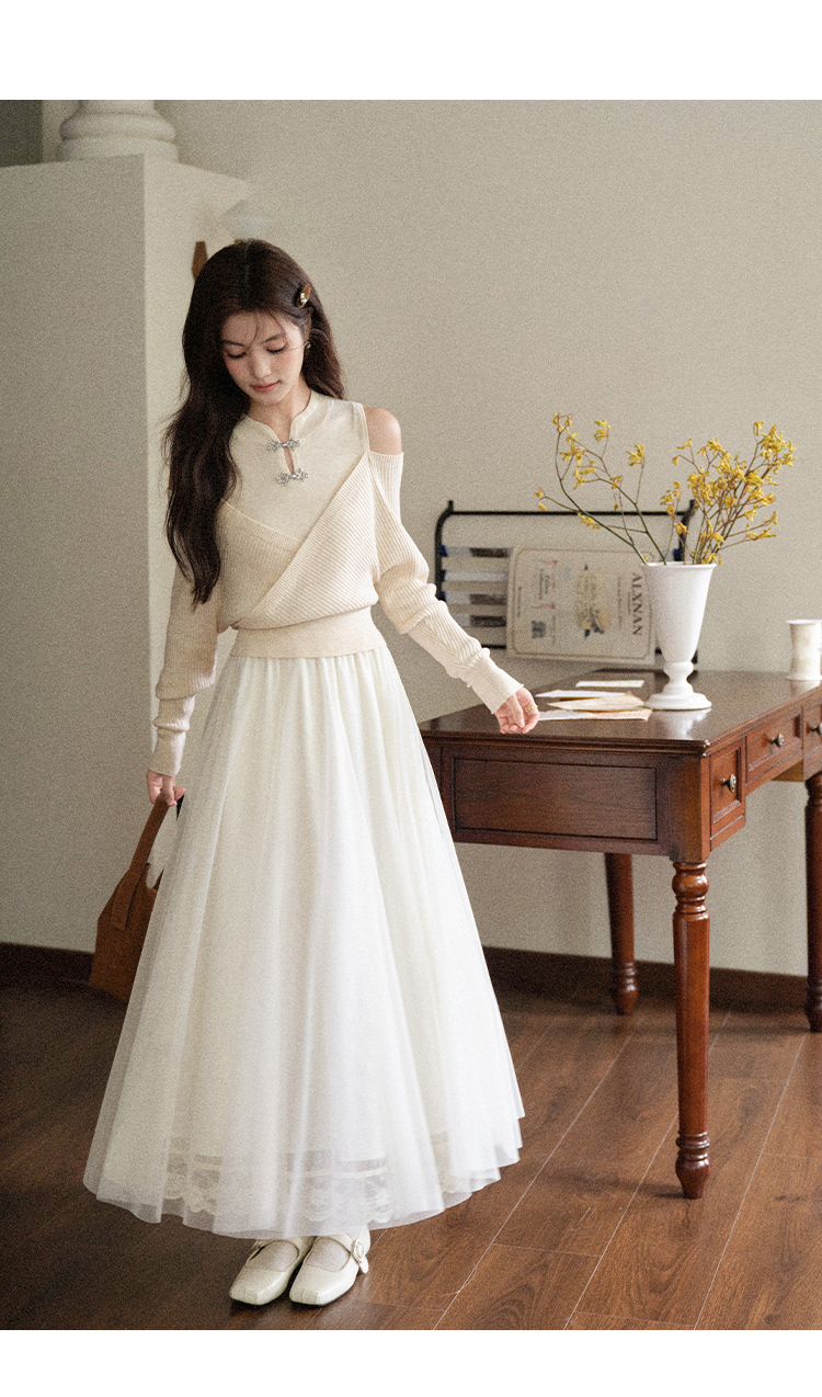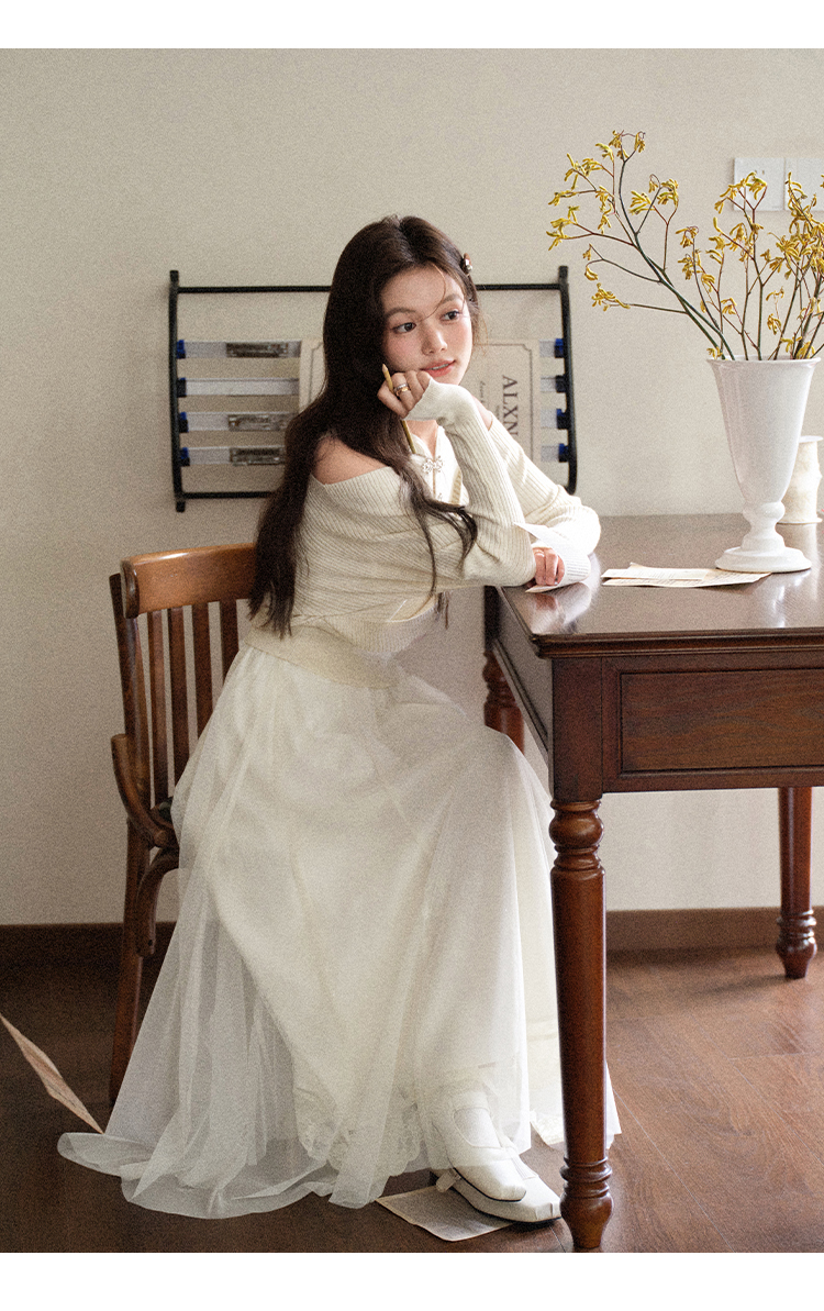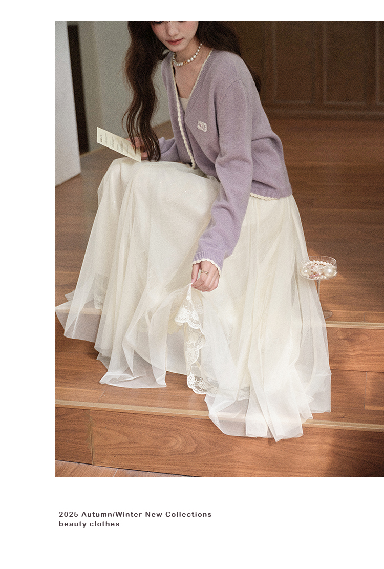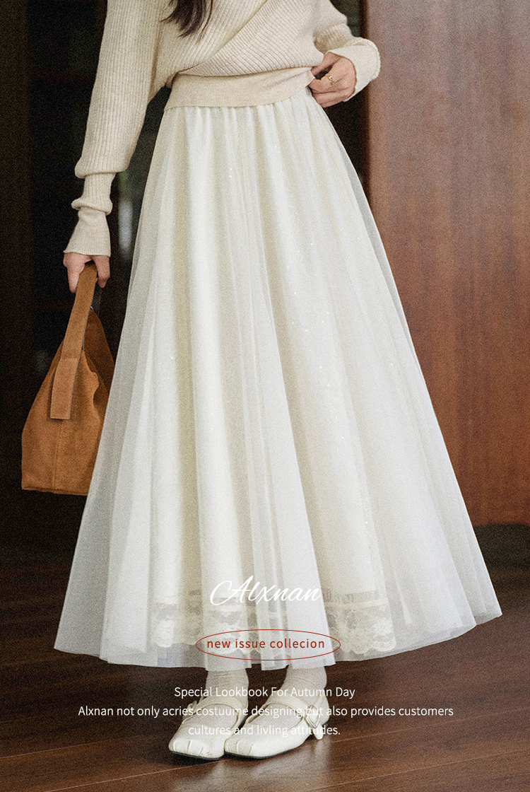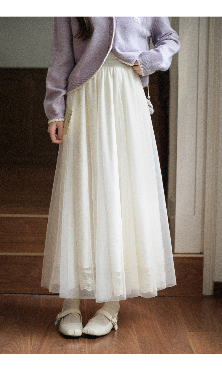 鹿向南「童话镇」温柔米白色网纱A字半身裙女秋季高级感气质裙子