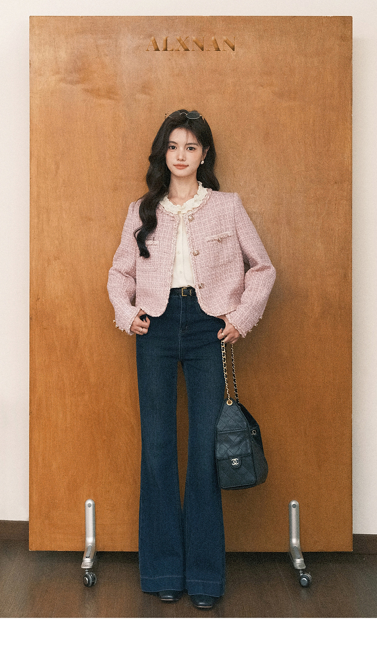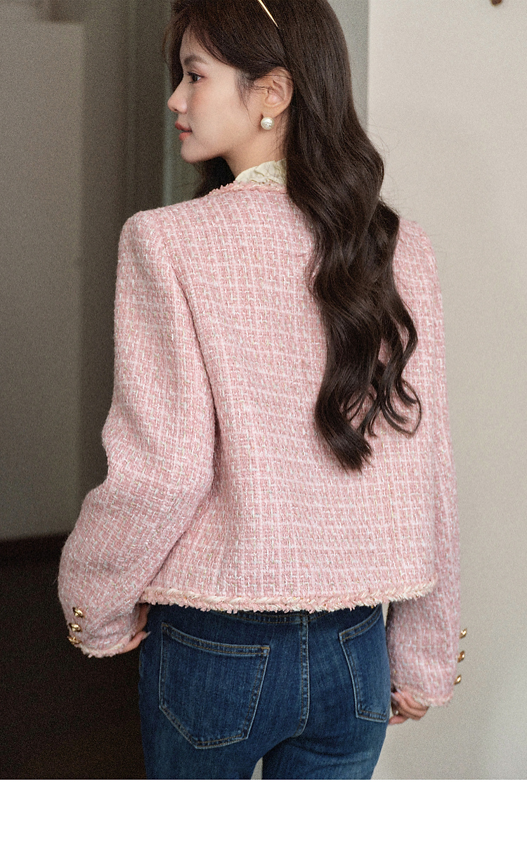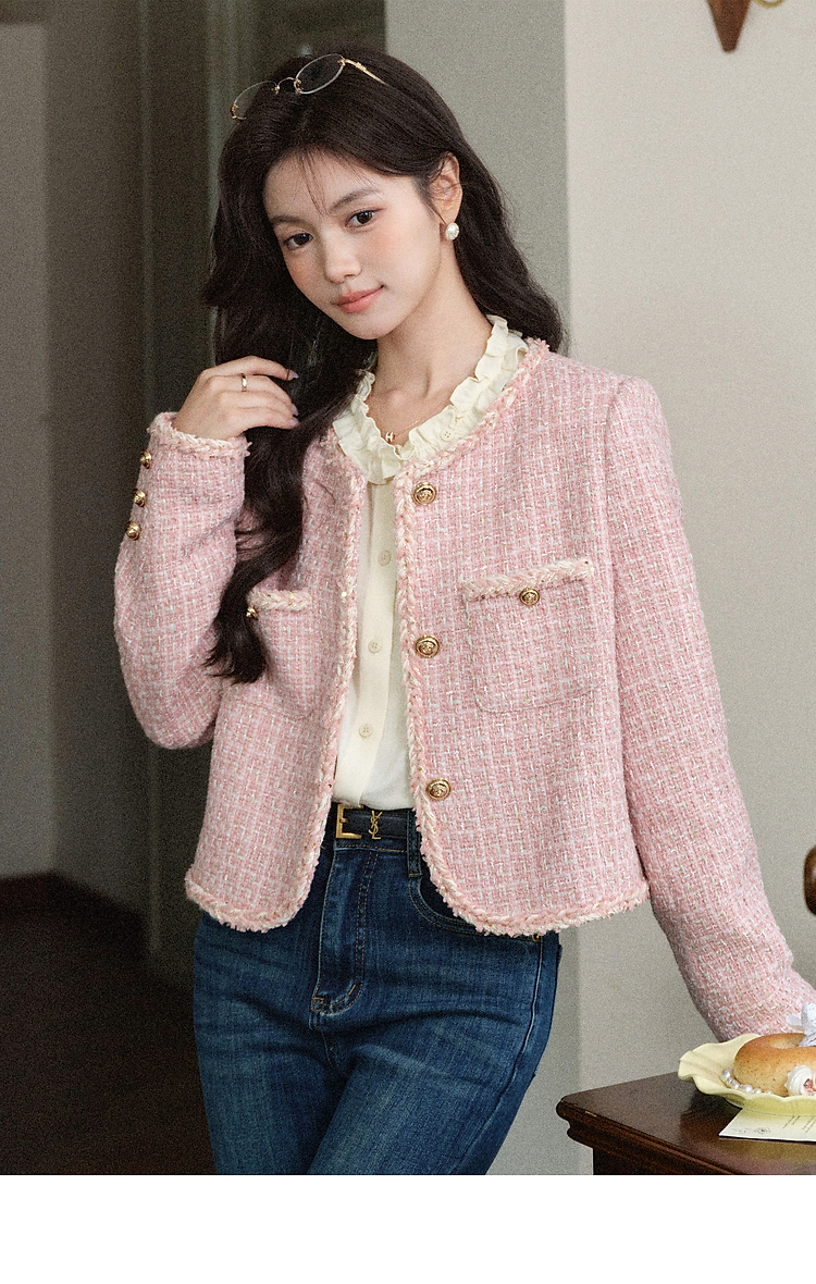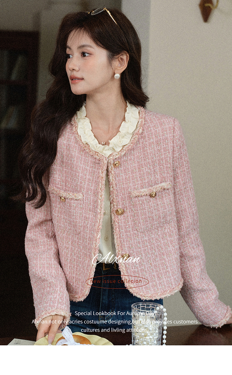 鹿向南「悸动轨迹」小香风粉色气质短外套秋季新款百搭通勤上衣女