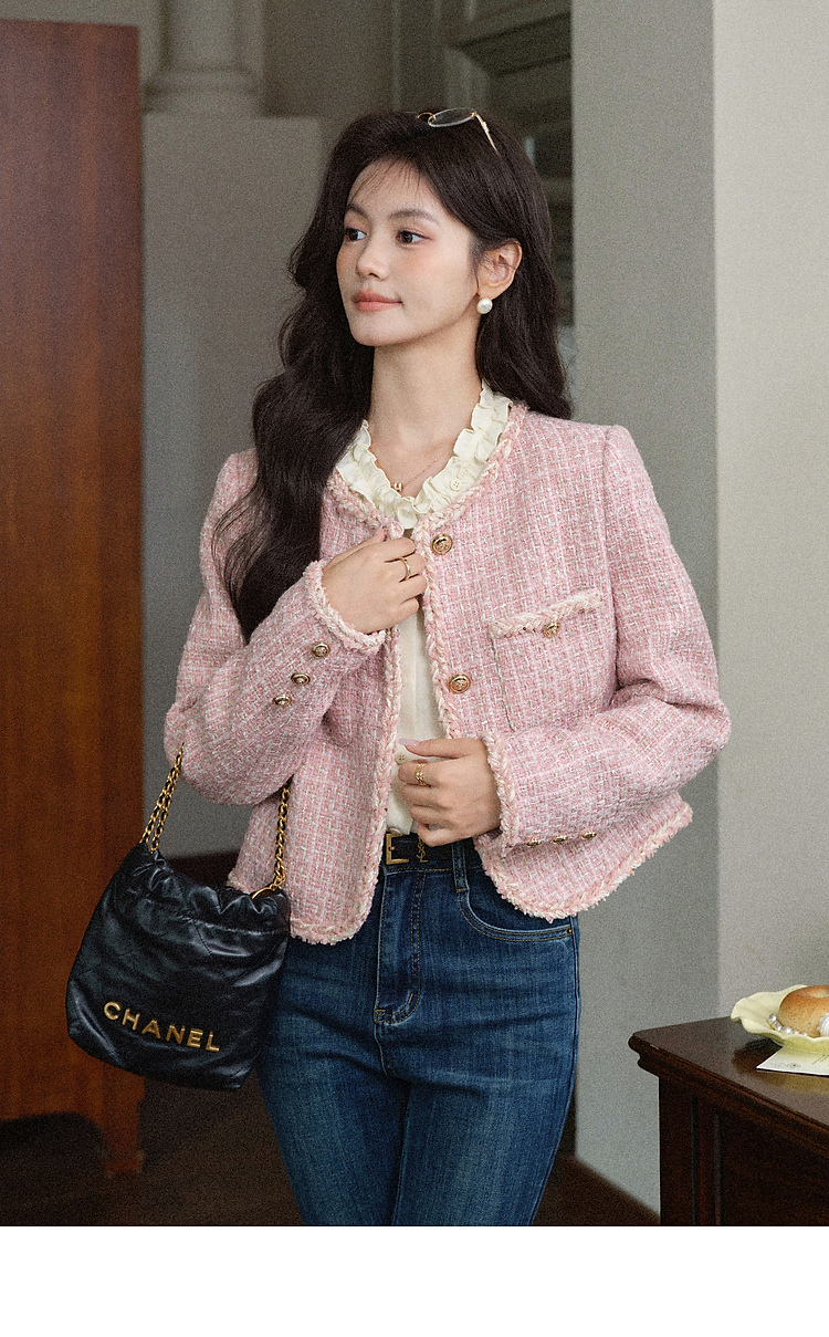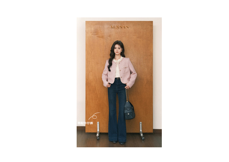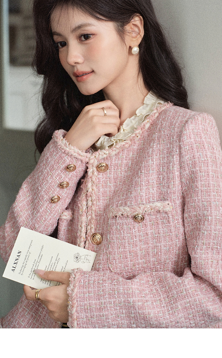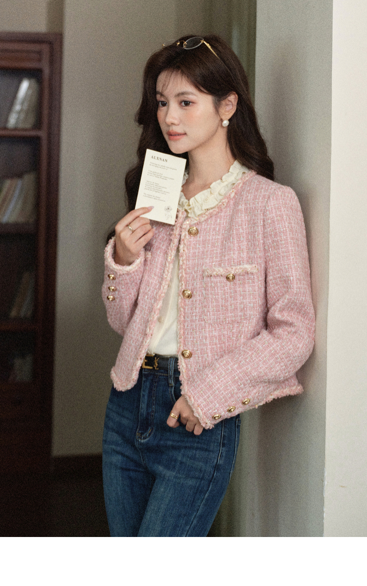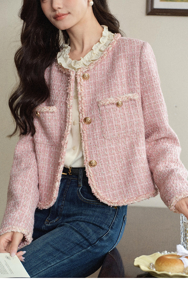 鹿向南「悸动轨迹」小香风粉色气质短外套秋季新款百搭通勤上衣女