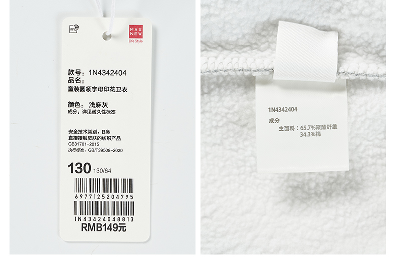 【卫衣】童装圆领字母印花卫衣1N4342404
