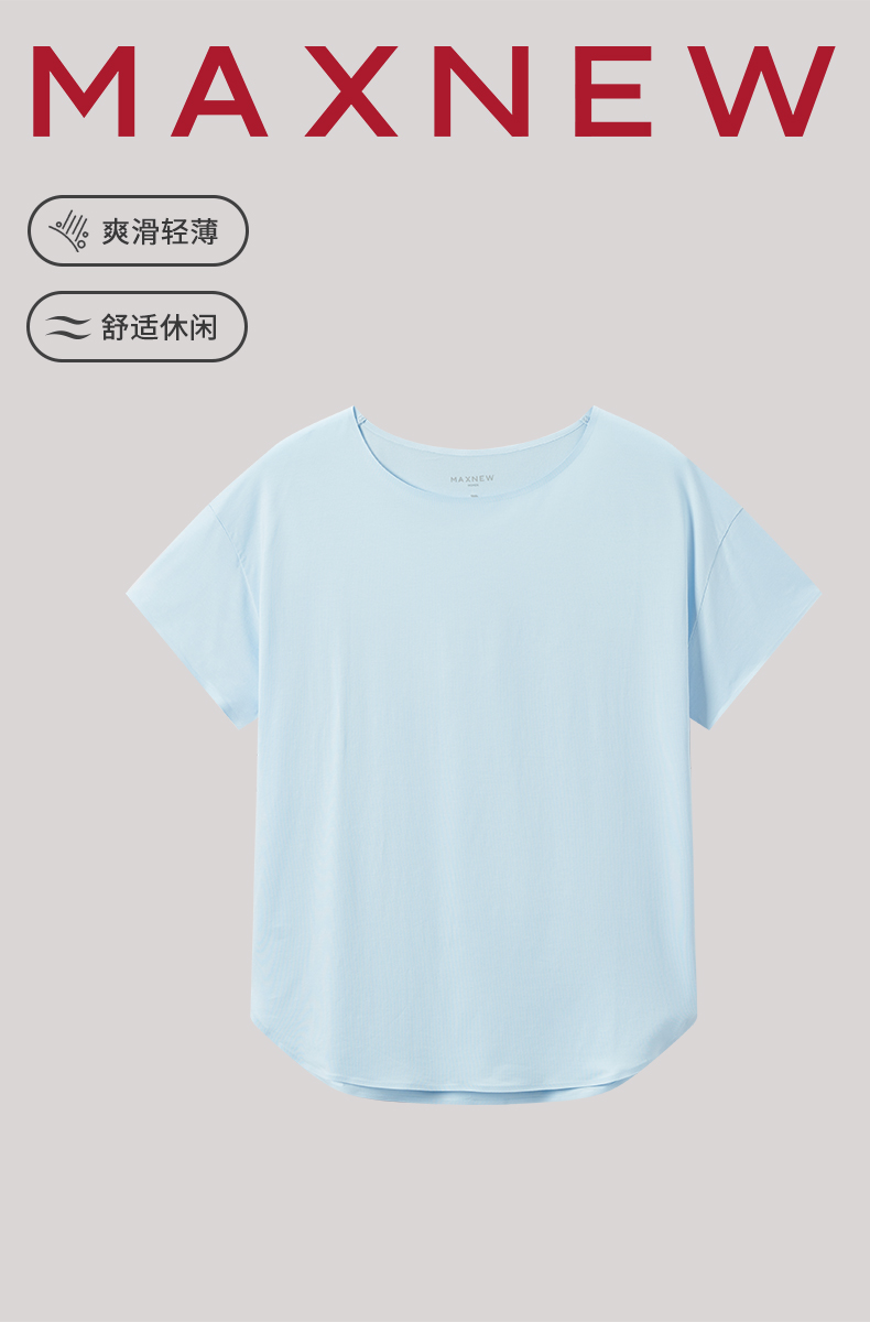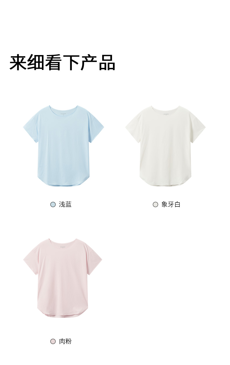 【家居】女装爽滑轻薄船领弧形下摆T恤 1N2427105