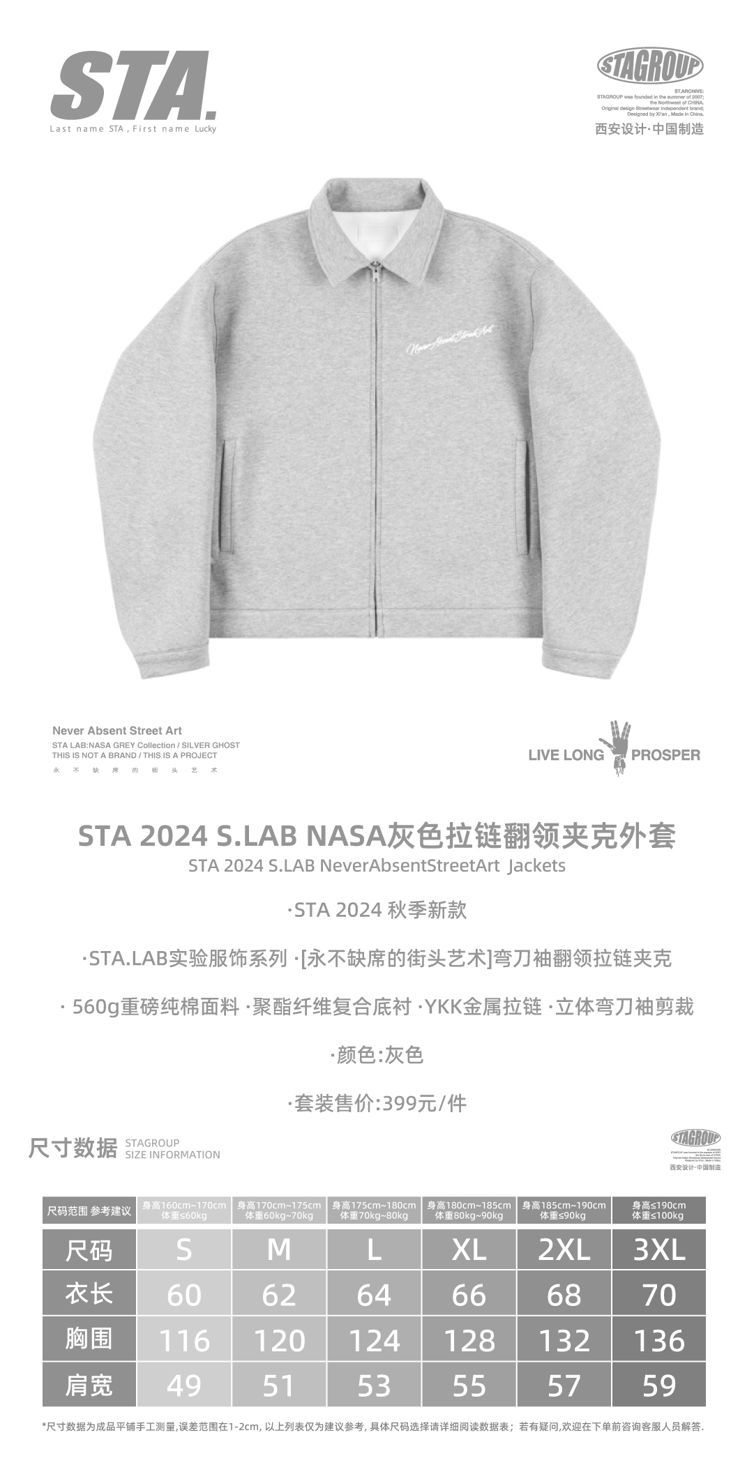 S.LAB | NASA系列灰色拉链翻领弯刀袖夹克