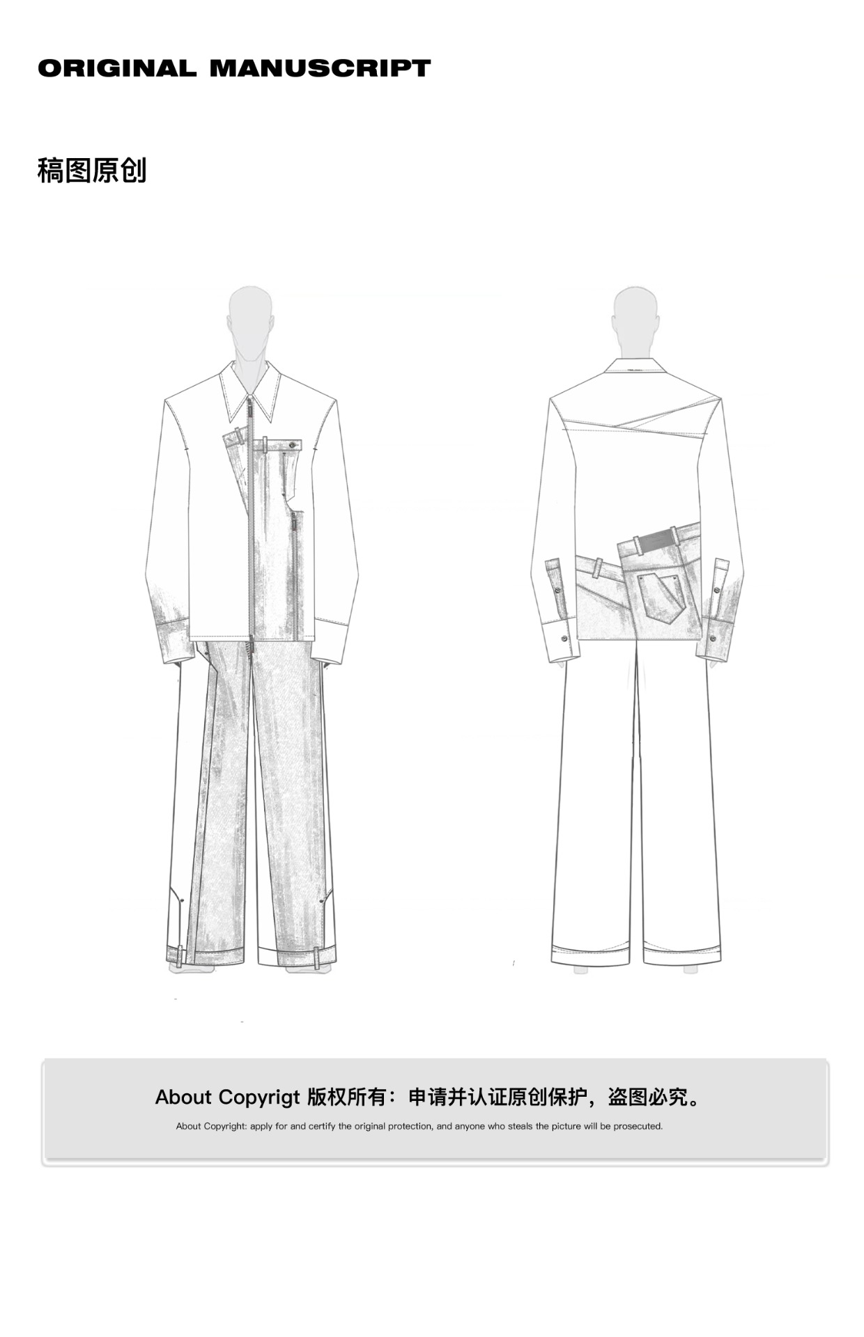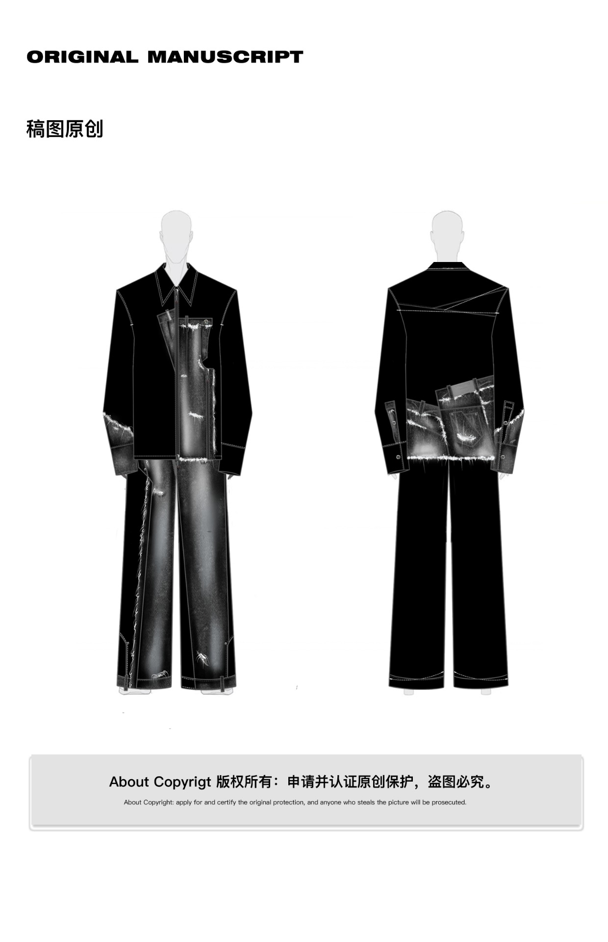 启世录TIWILLTANG“虚澜枕梦”宽松百搭条纹贴袋无领西装套装
