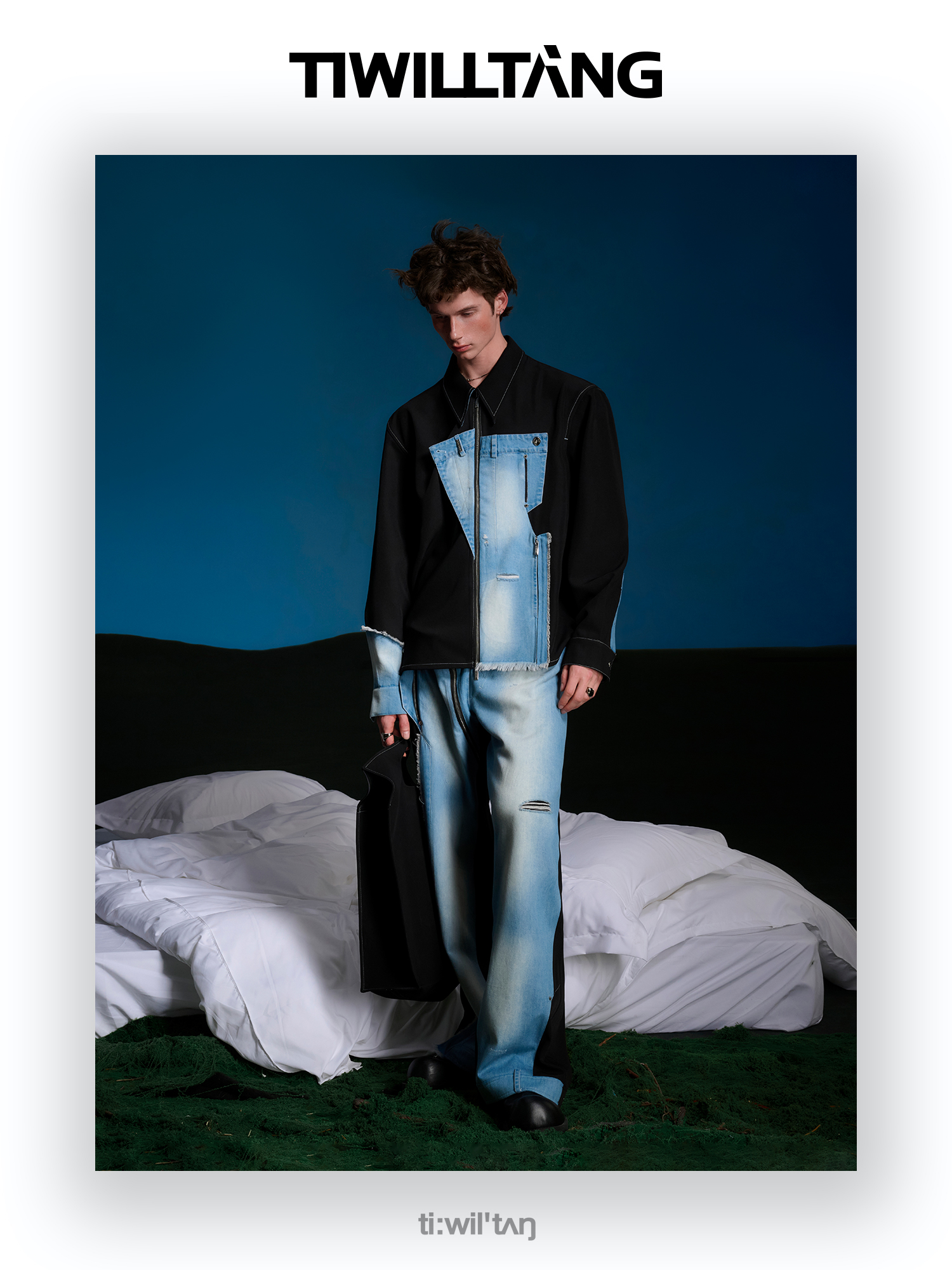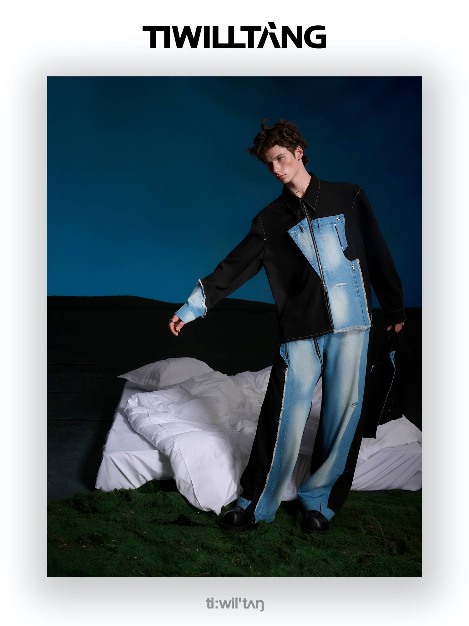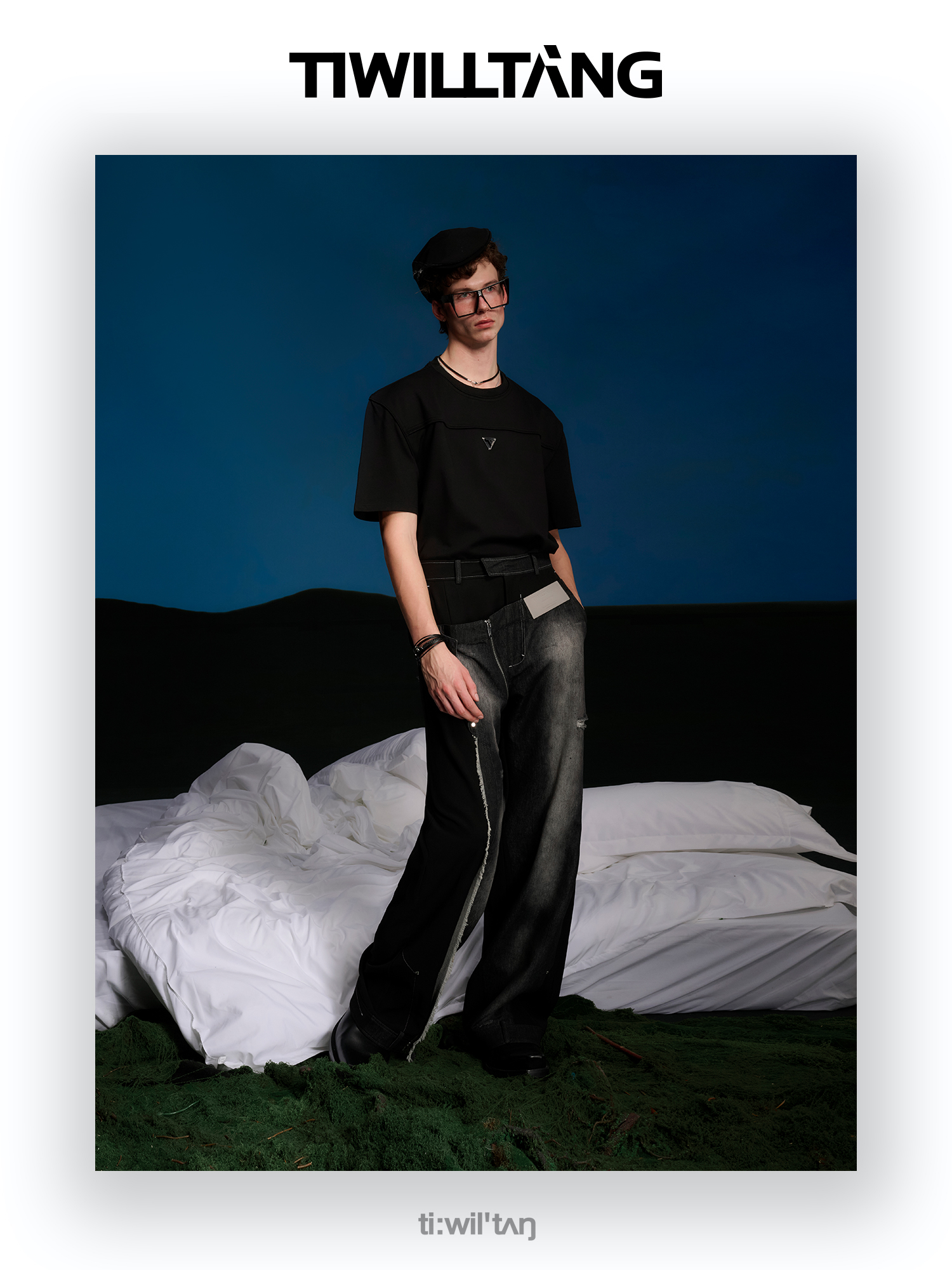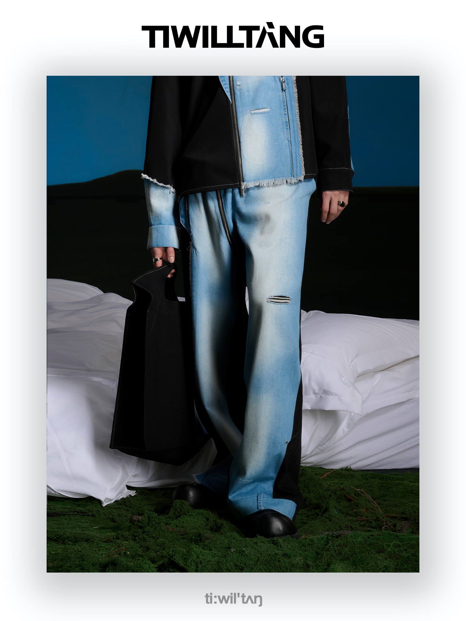 启世录TIWILLTANG“凌迹回响”牛仔拼接休闲直筒长裤