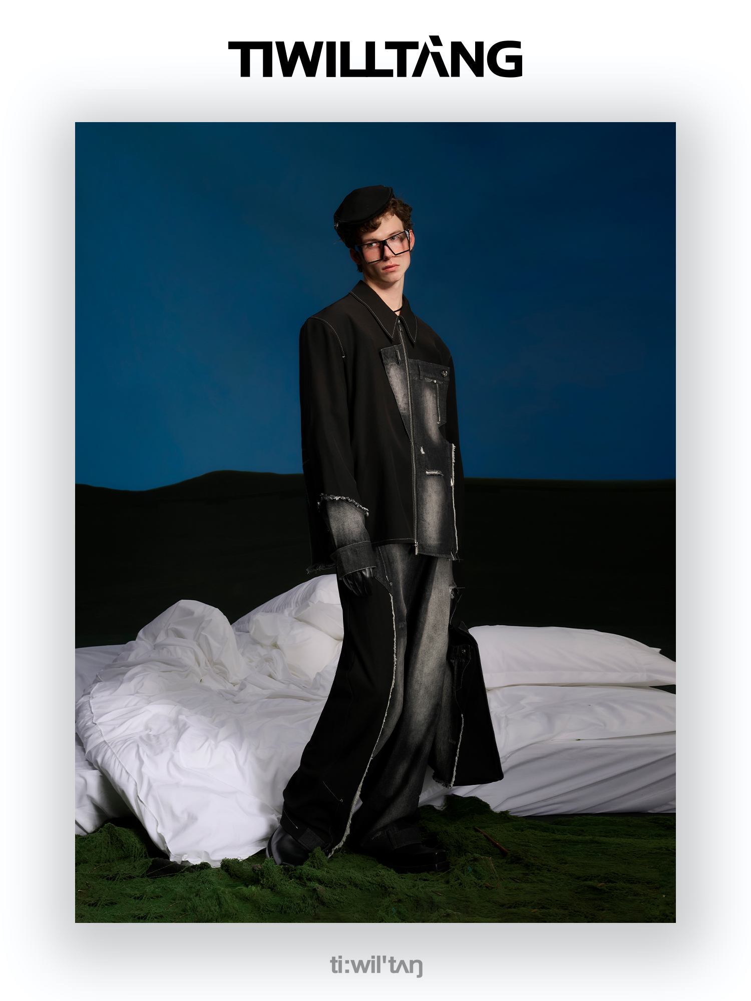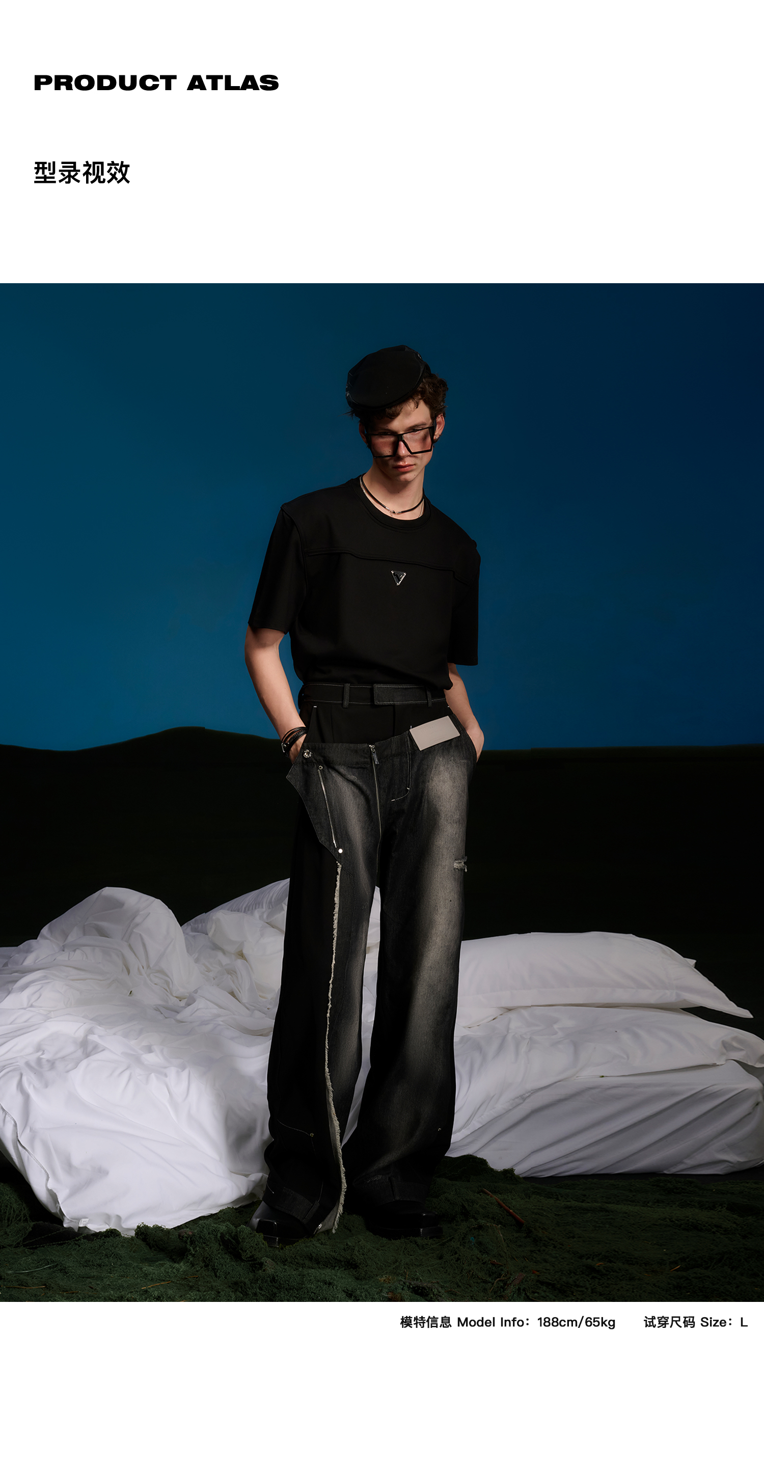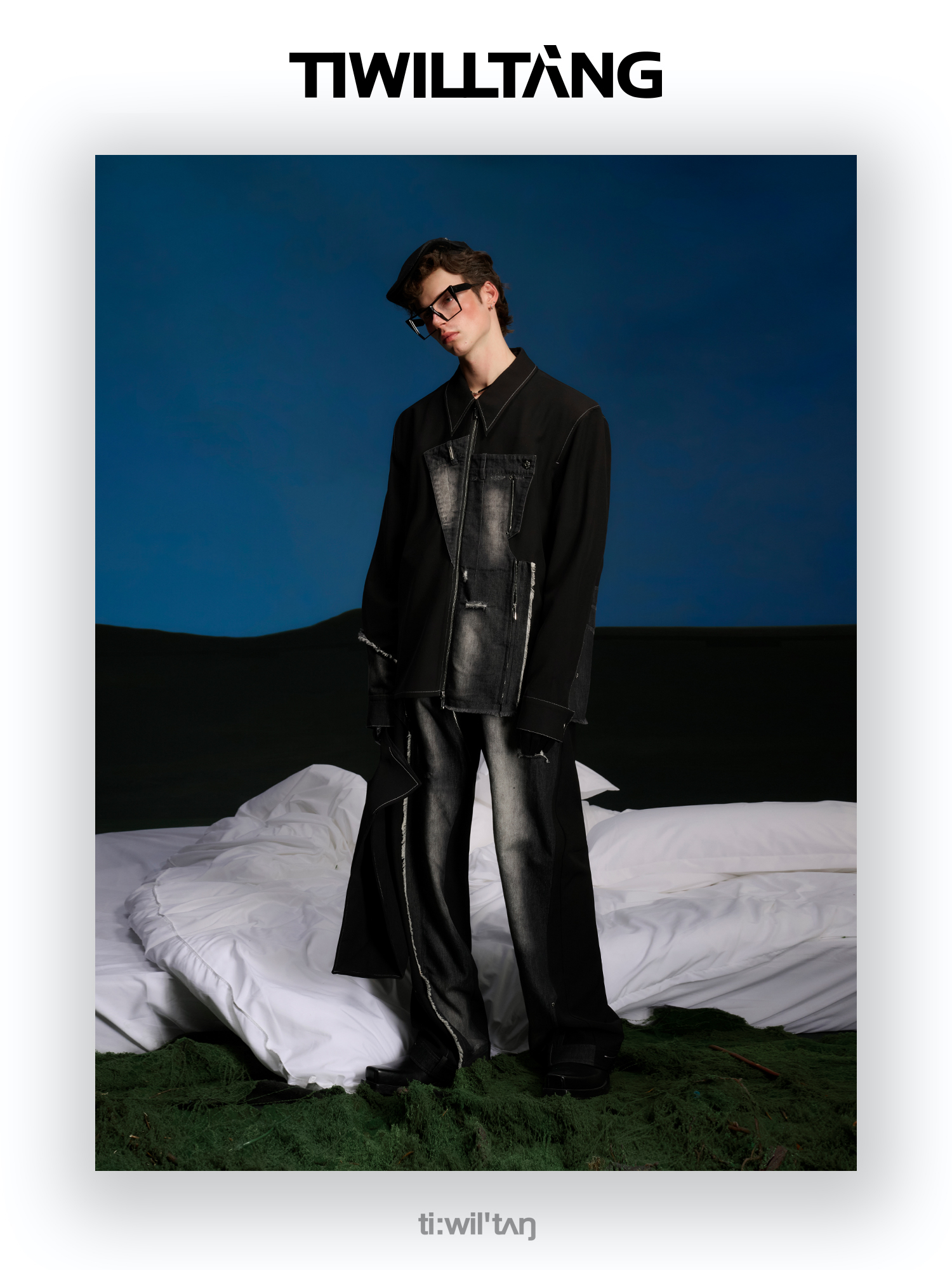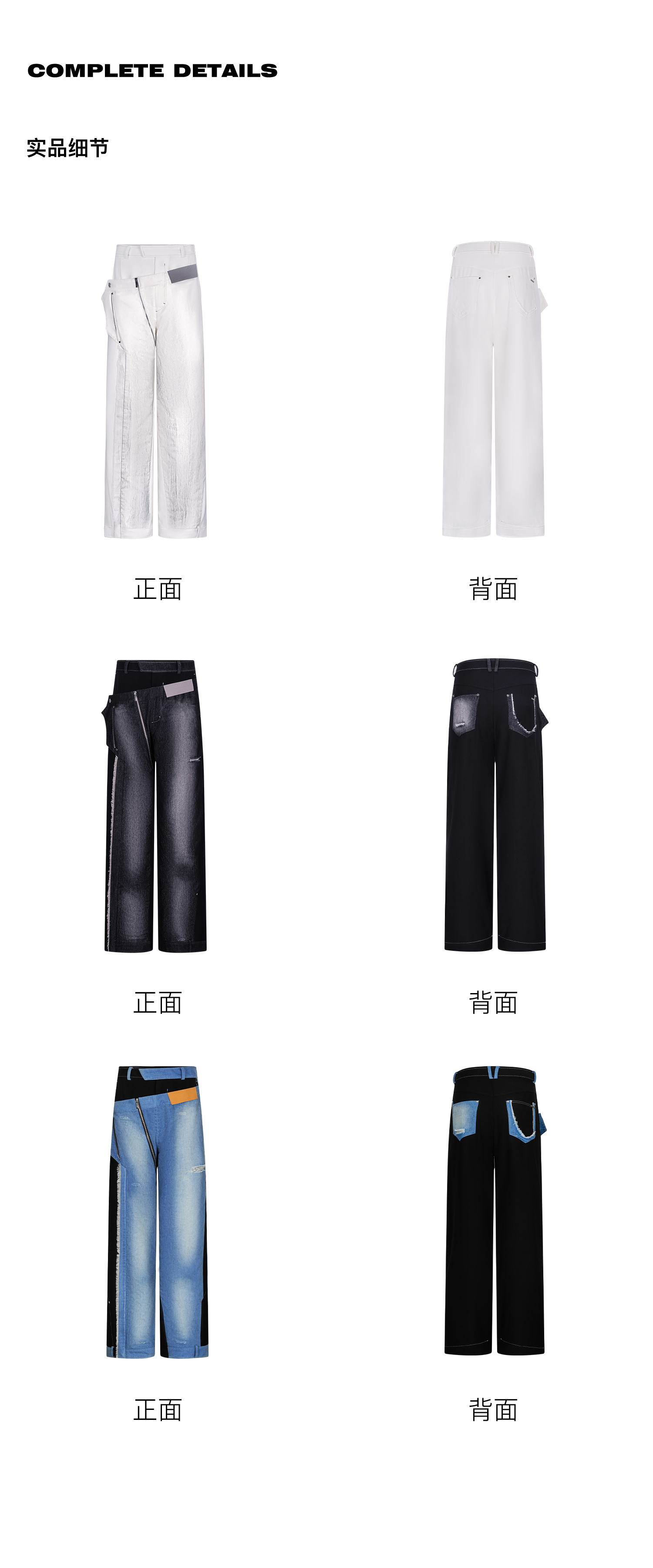 启世录TIWILLTANG“凌迹回响”牛仔拼接休闲直筒长裤