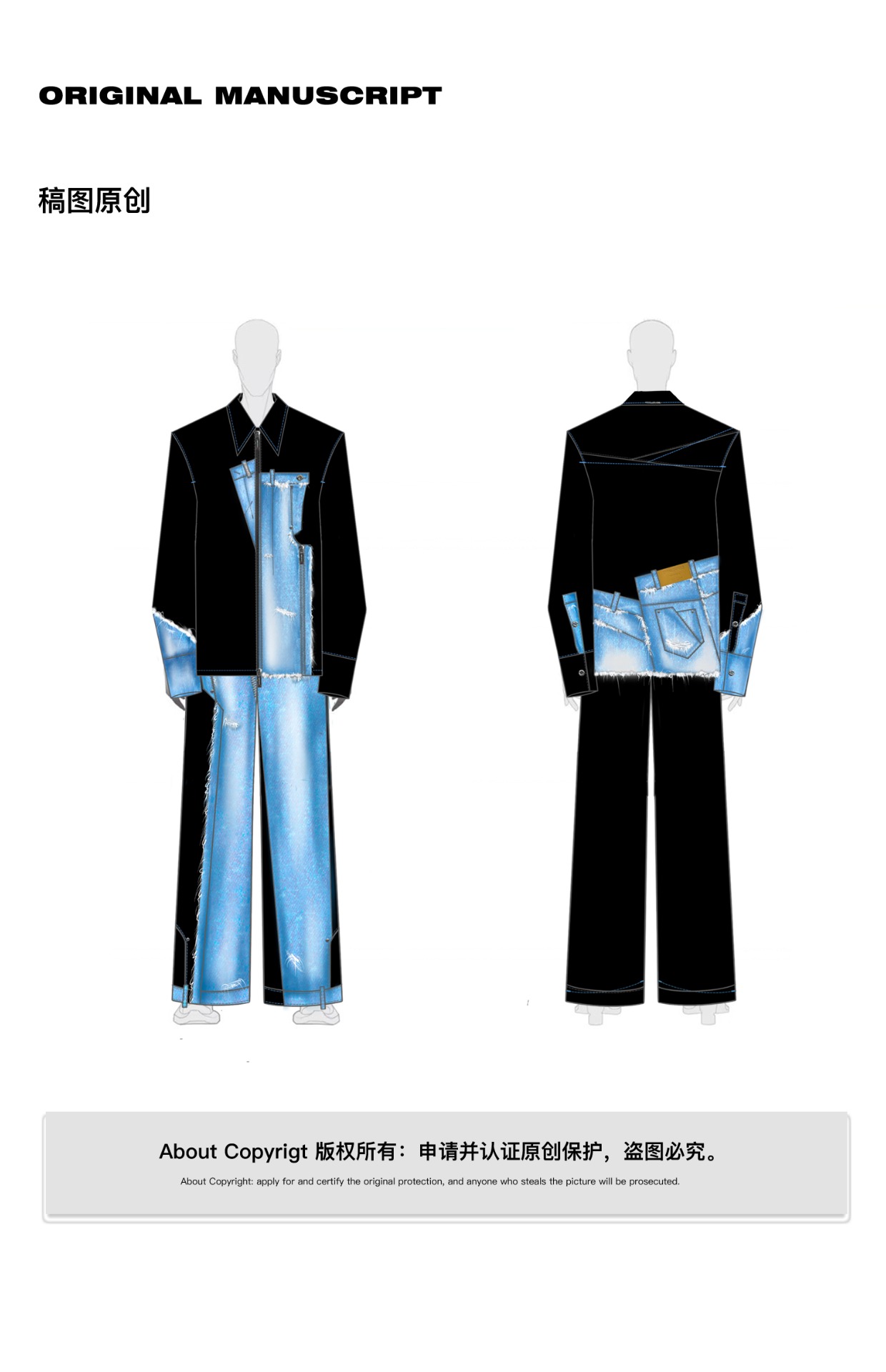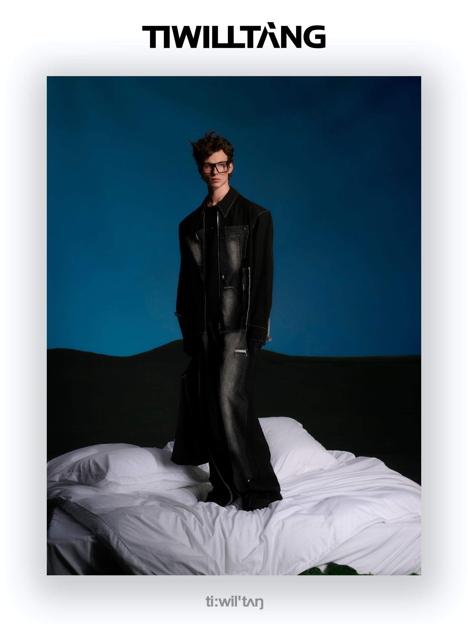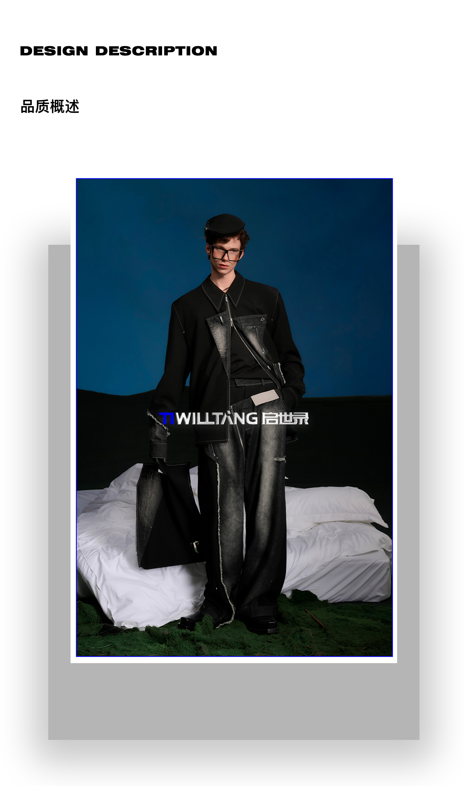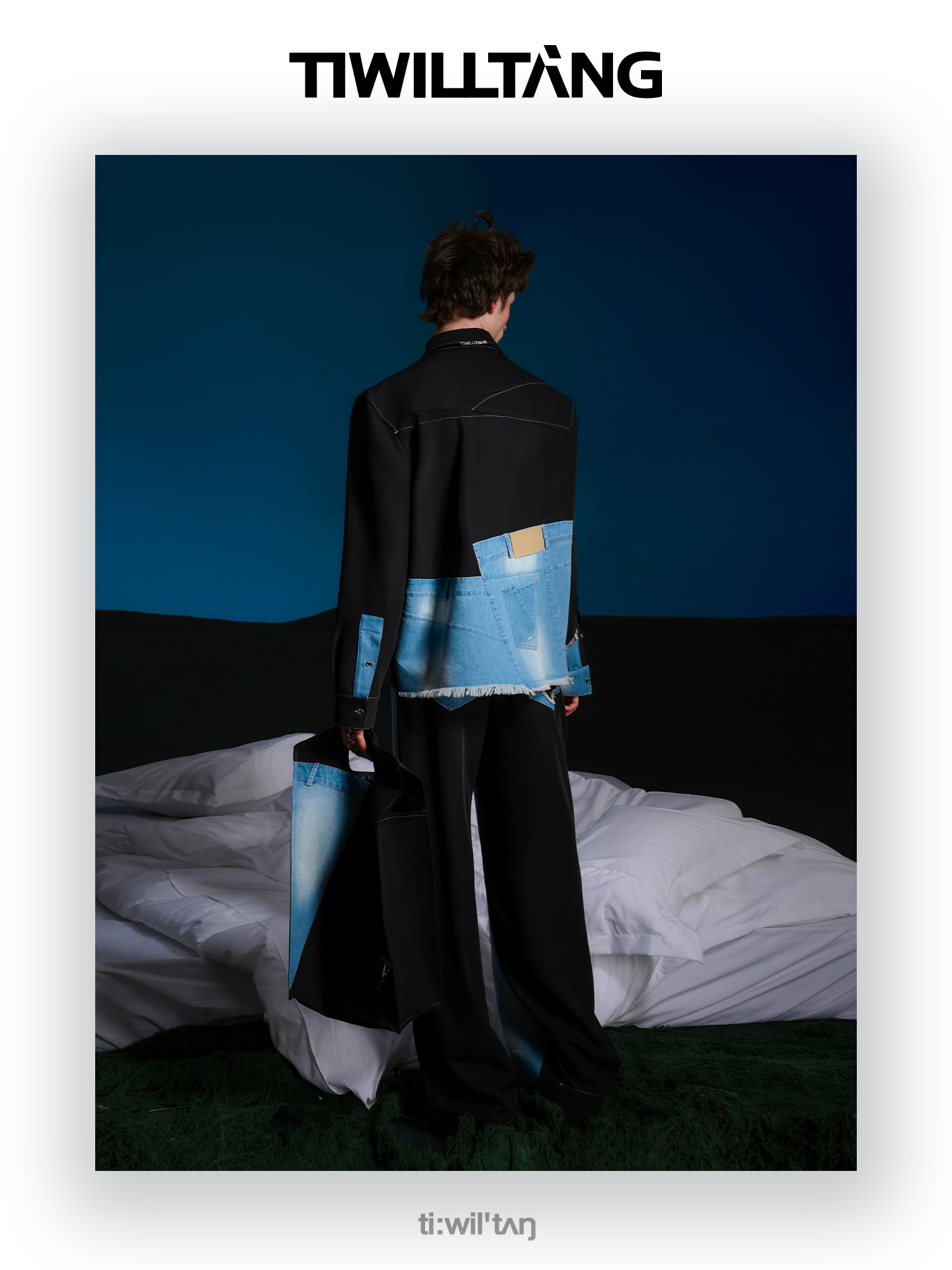 启世录TIWILLTANG“凌迹回响”牛仔拼接休闲直筒长裤