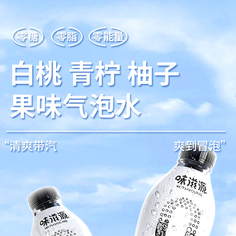 【白桃青柠柚子!果味气泡水】味滋源气泡水0糖0脂350ml饮用水柚子青柠白桃味汽水饮料零食。ry