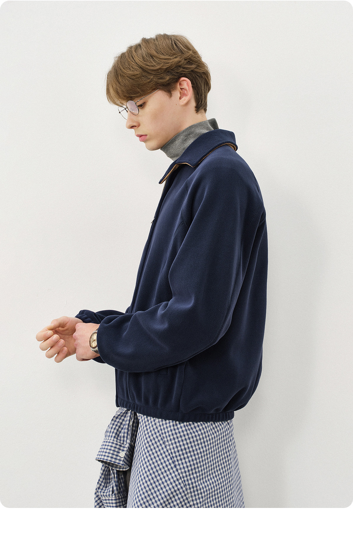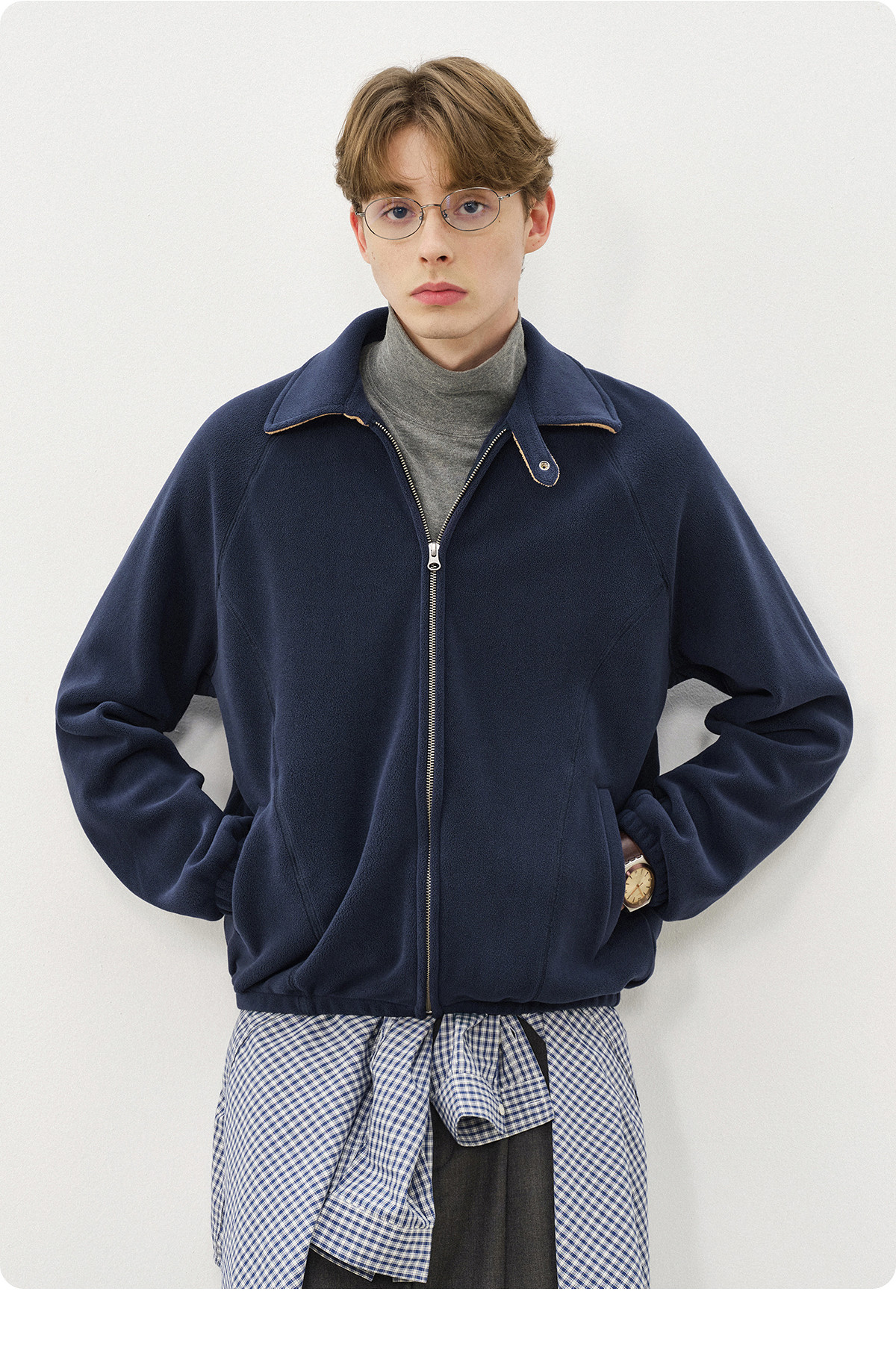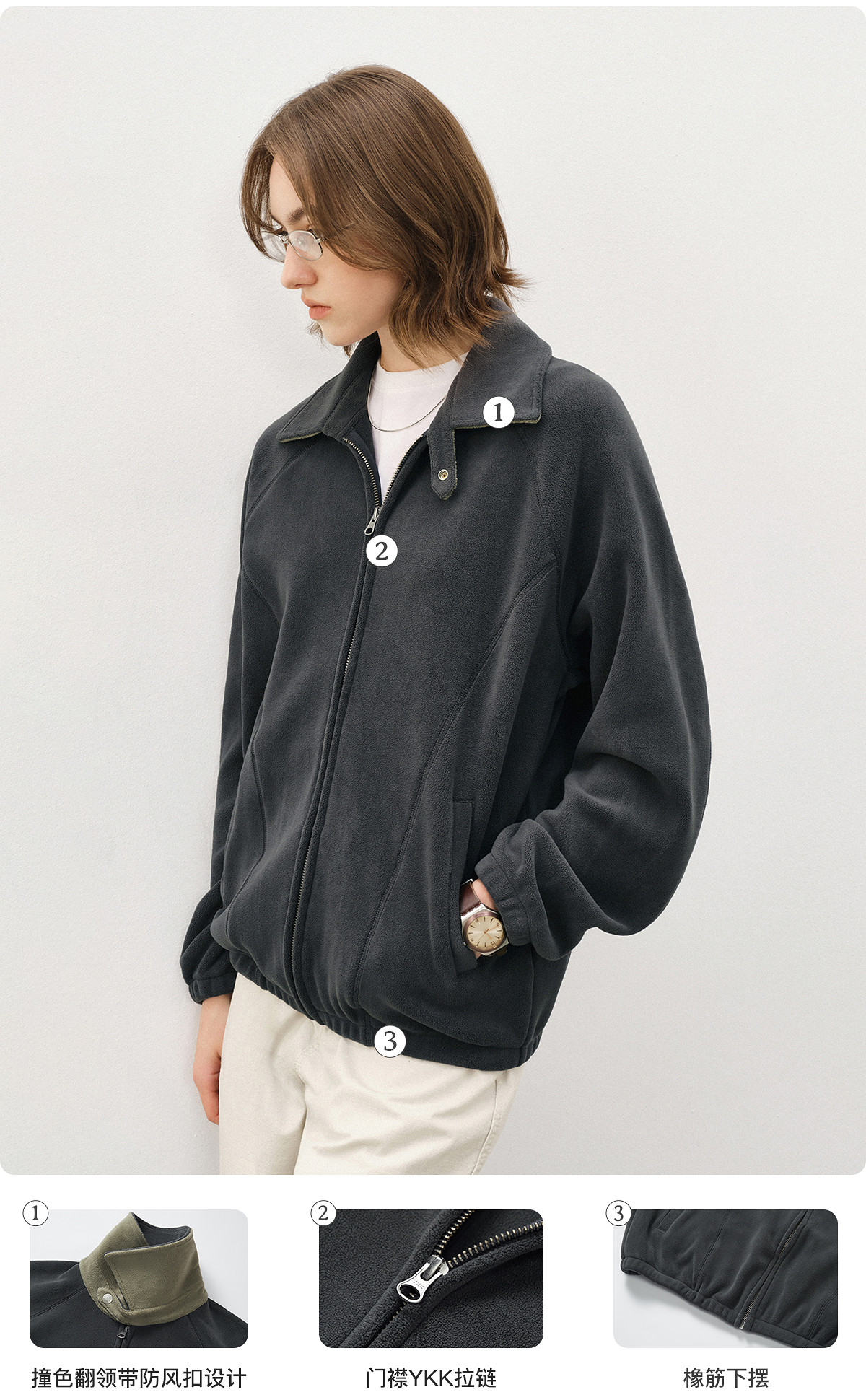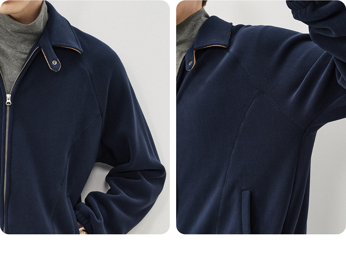 714street奥粒绒撞色卫衣开衫男2025秋冬微宽松落肩翻领夹克外套