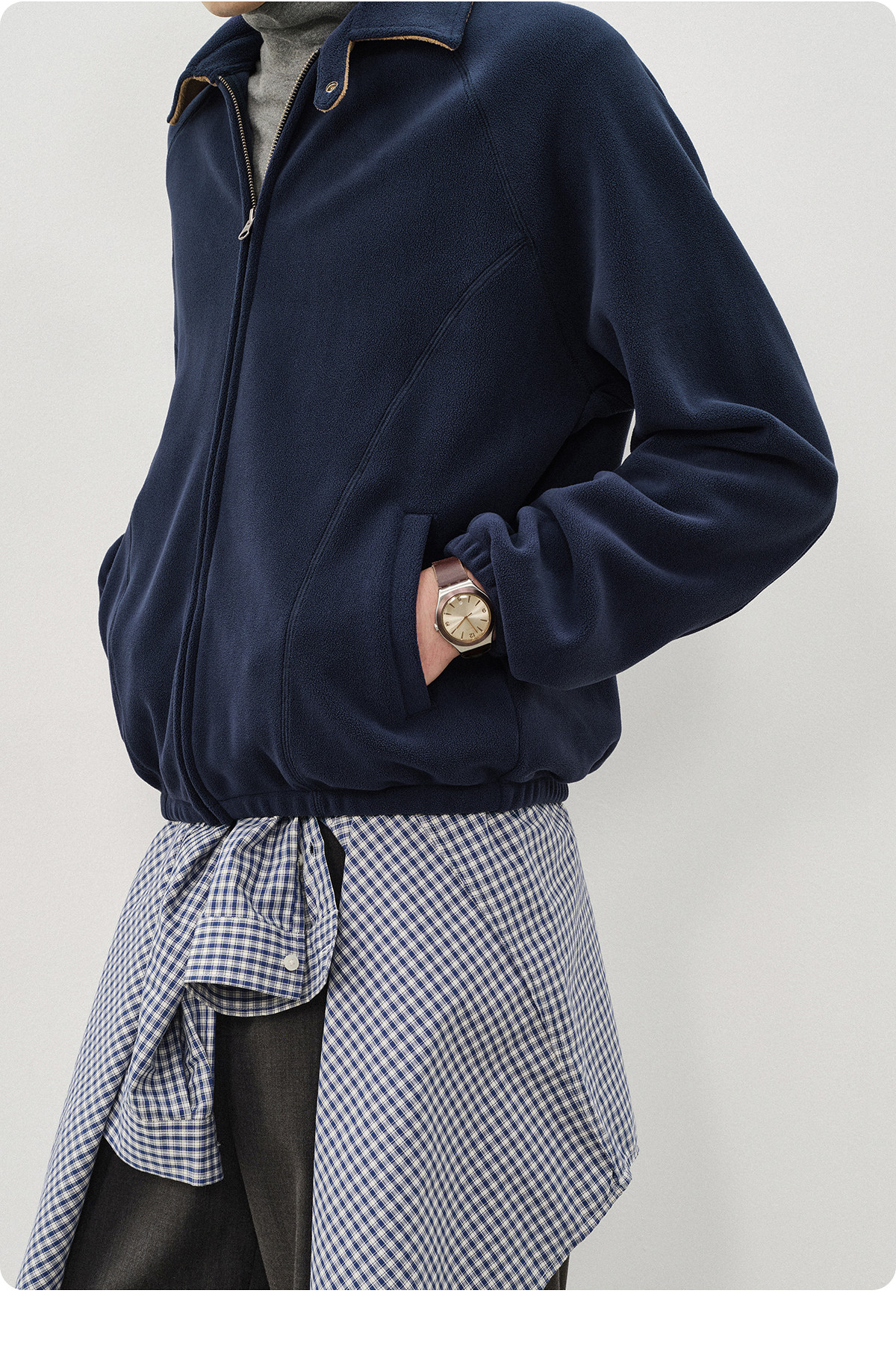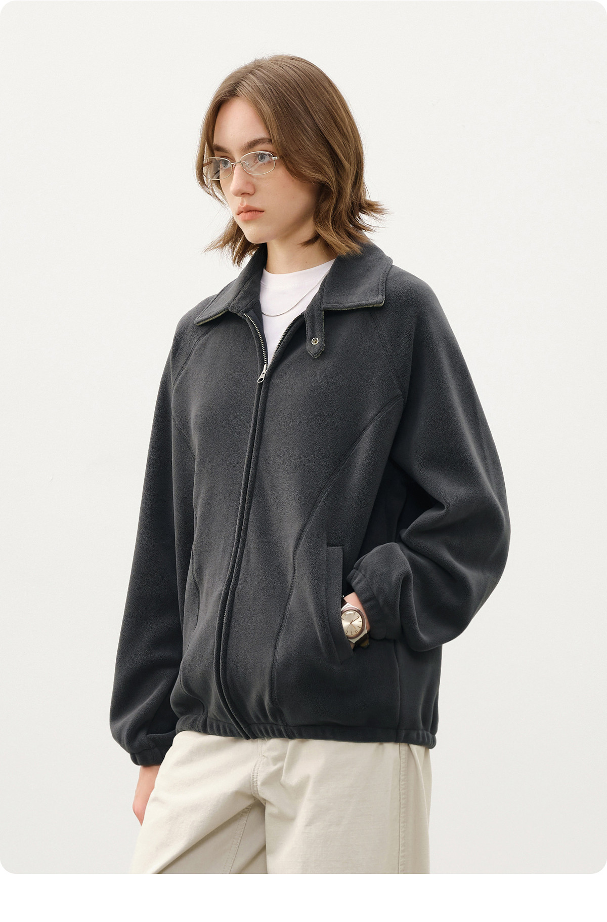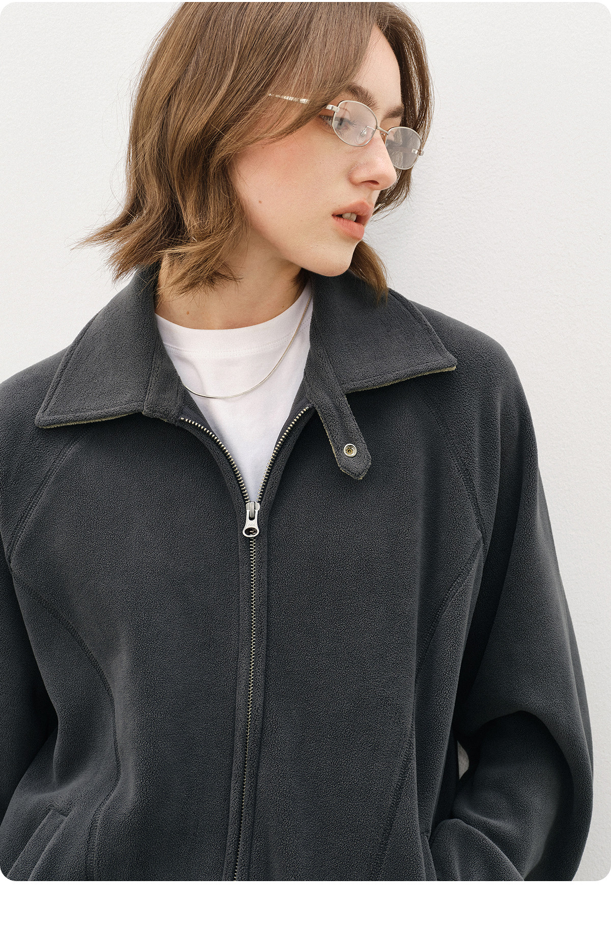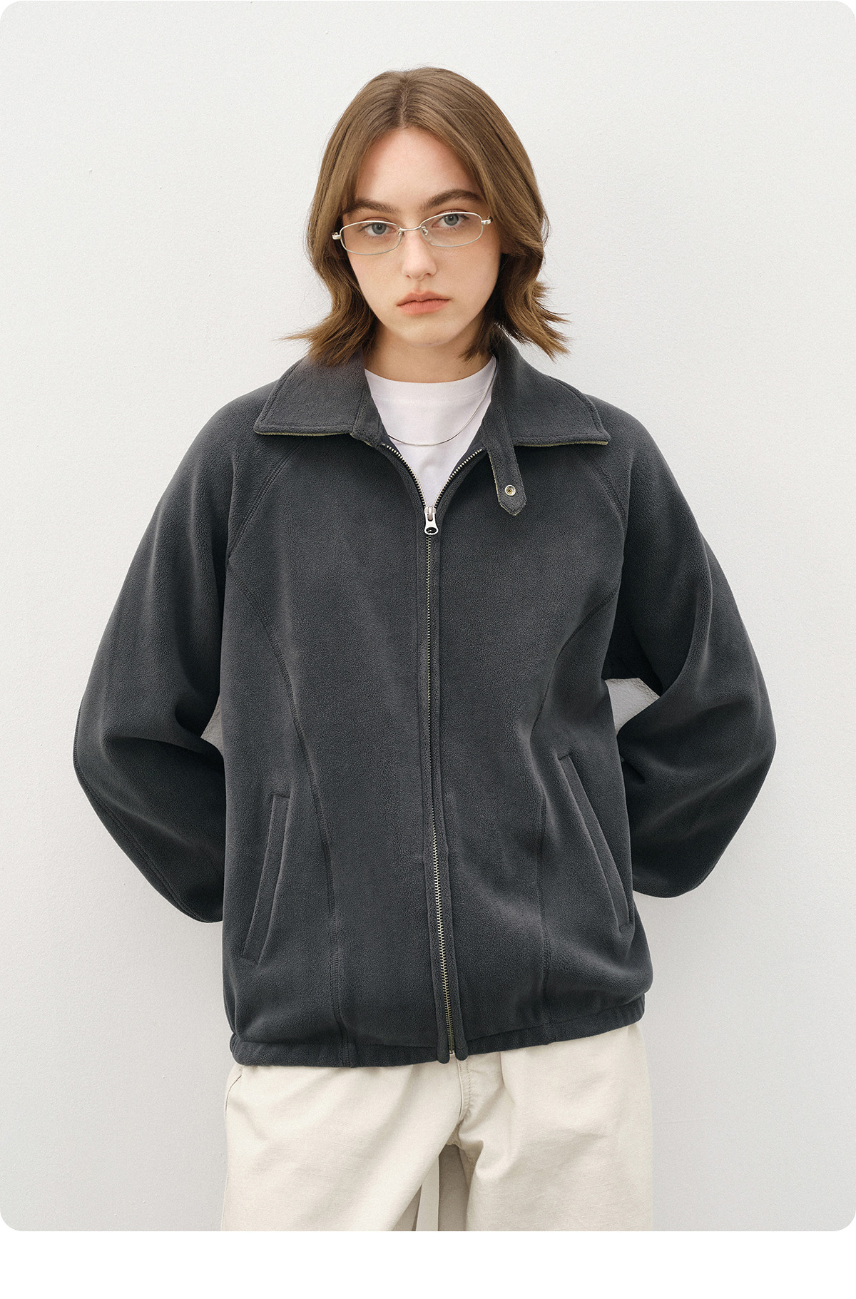 714street奥粒绒撞色卫衣开衫男2025秋冬微宽松落肩翻领夹克外套