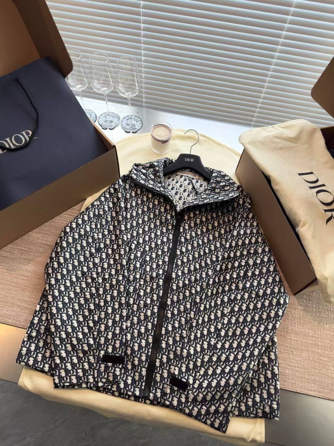 DIOR OBLIQUE经典永不过时的老花冲锋衣外套系列✌️整件衣服34000购买ZP拆解打造,定织双面提花纱线,防伪主麦,版型很正手感形态弧度都需要面料支撑不会软塌塌,除了对位我们还做到了对花纹,非常讲究技术,口袋处对纹都需要3D立体裁剪 真正做到1:1copy 闭眼入 码数:XS S M L
