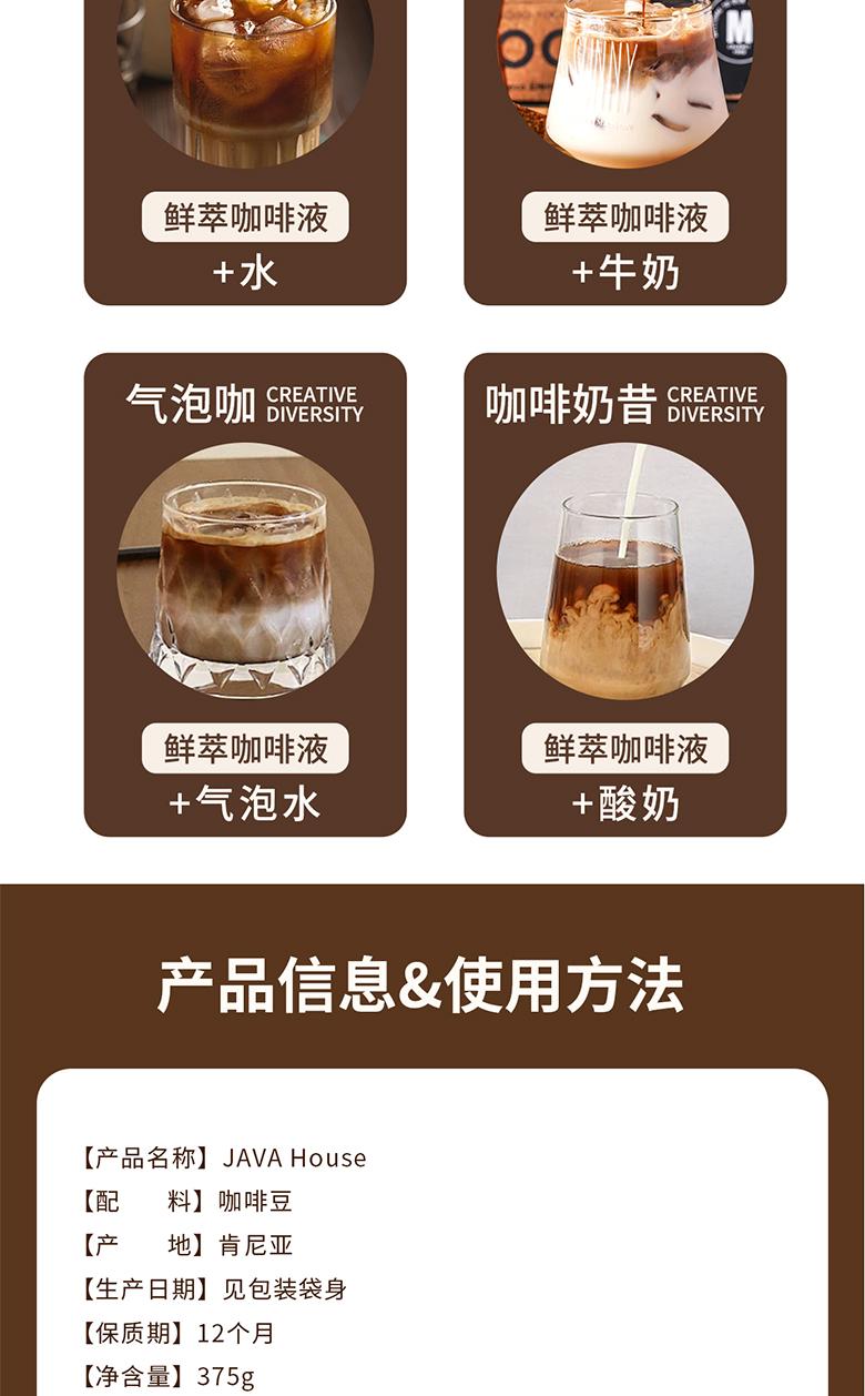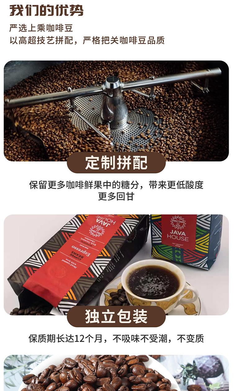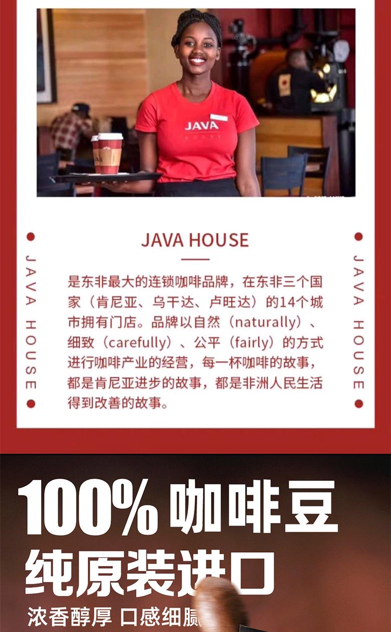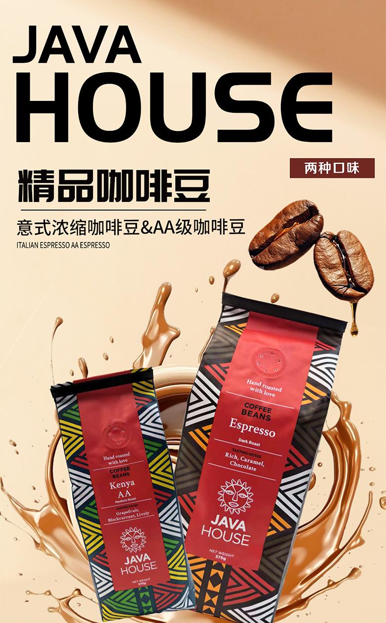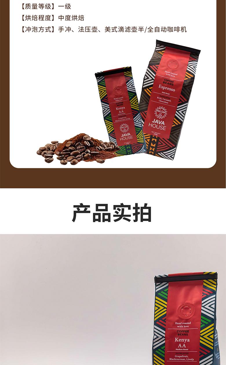原装JAVA HOUSE 肯尼亚 AA 阿拉比卡咖啡豆中度烘焙