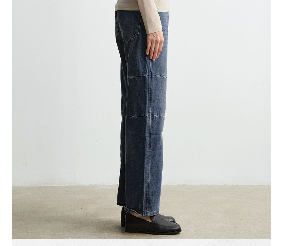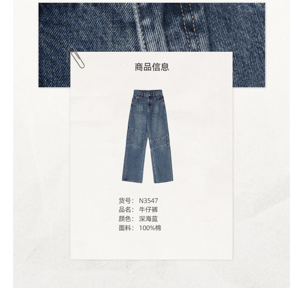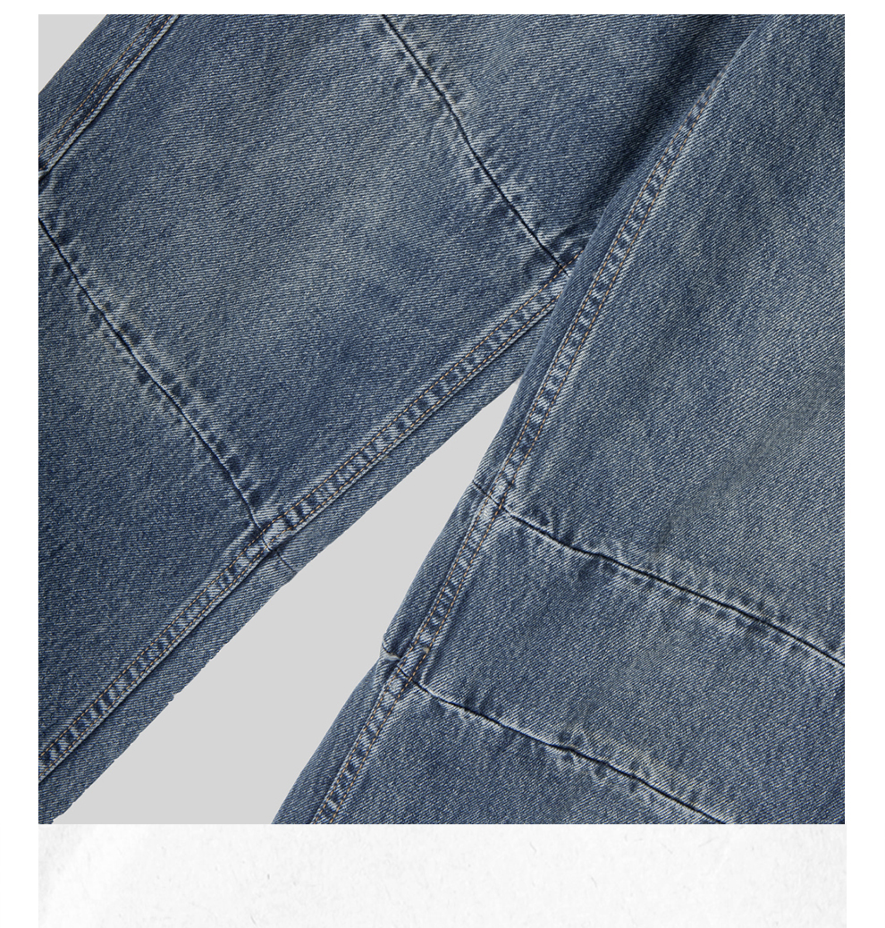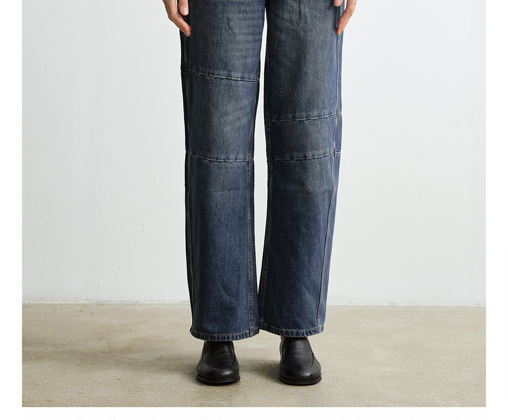 ROMI STUDIO复古拼接 宽松高腰阔腿显瘦深蓝色休闲牛仔裤 N3547