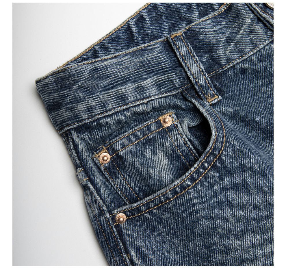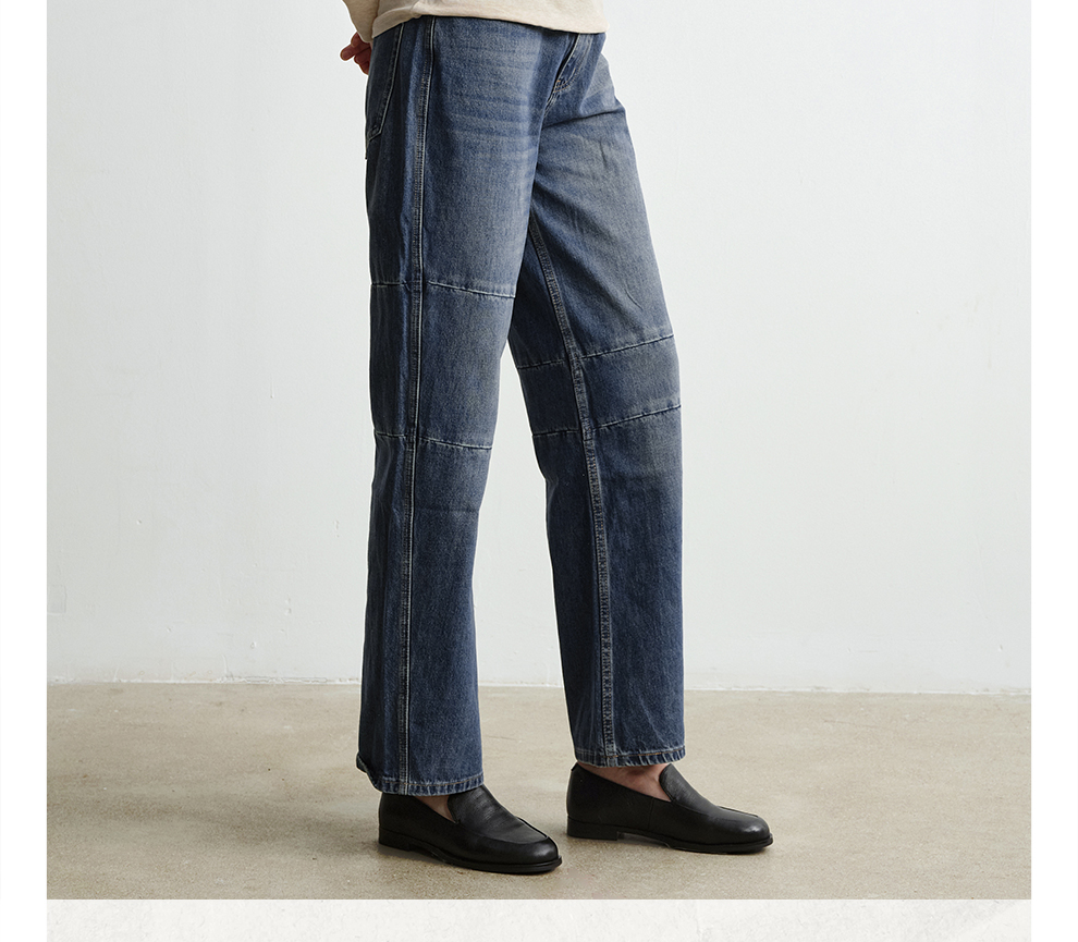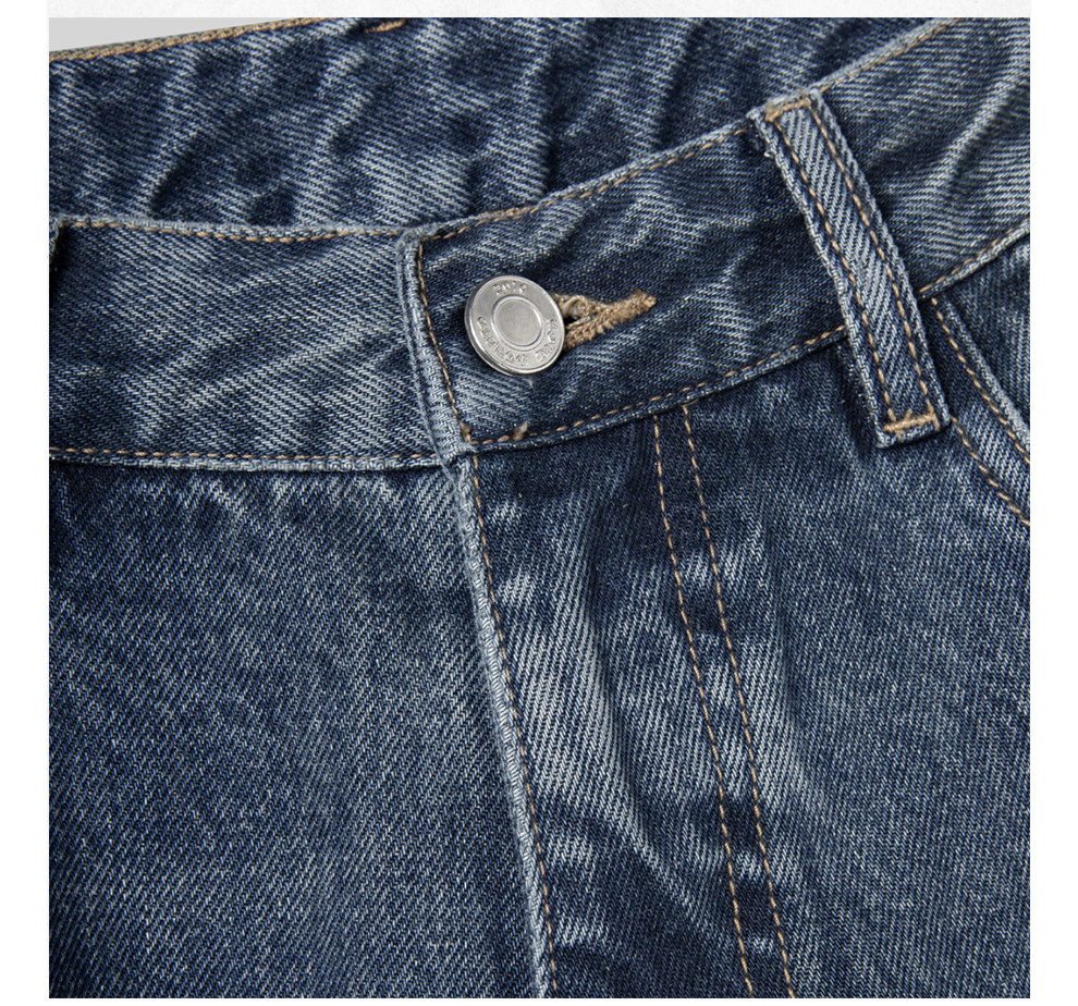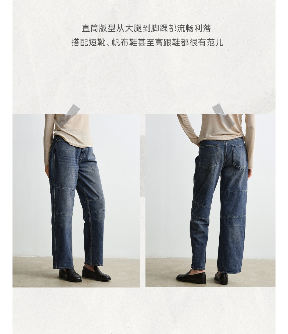 ROMI STUDIO复古拼接 宽松高腰阔腿显瘦深蓝色休闲牛仔裤 N3547