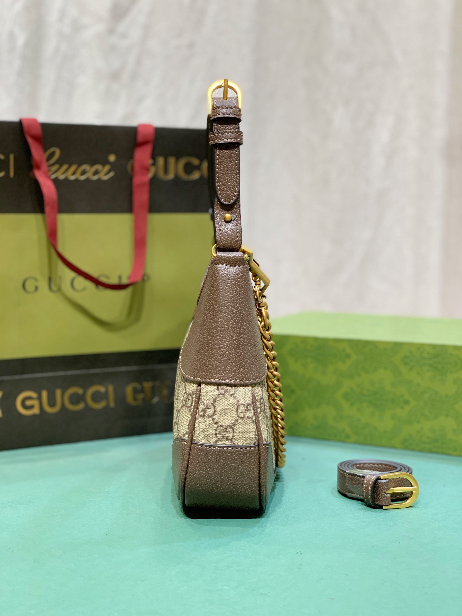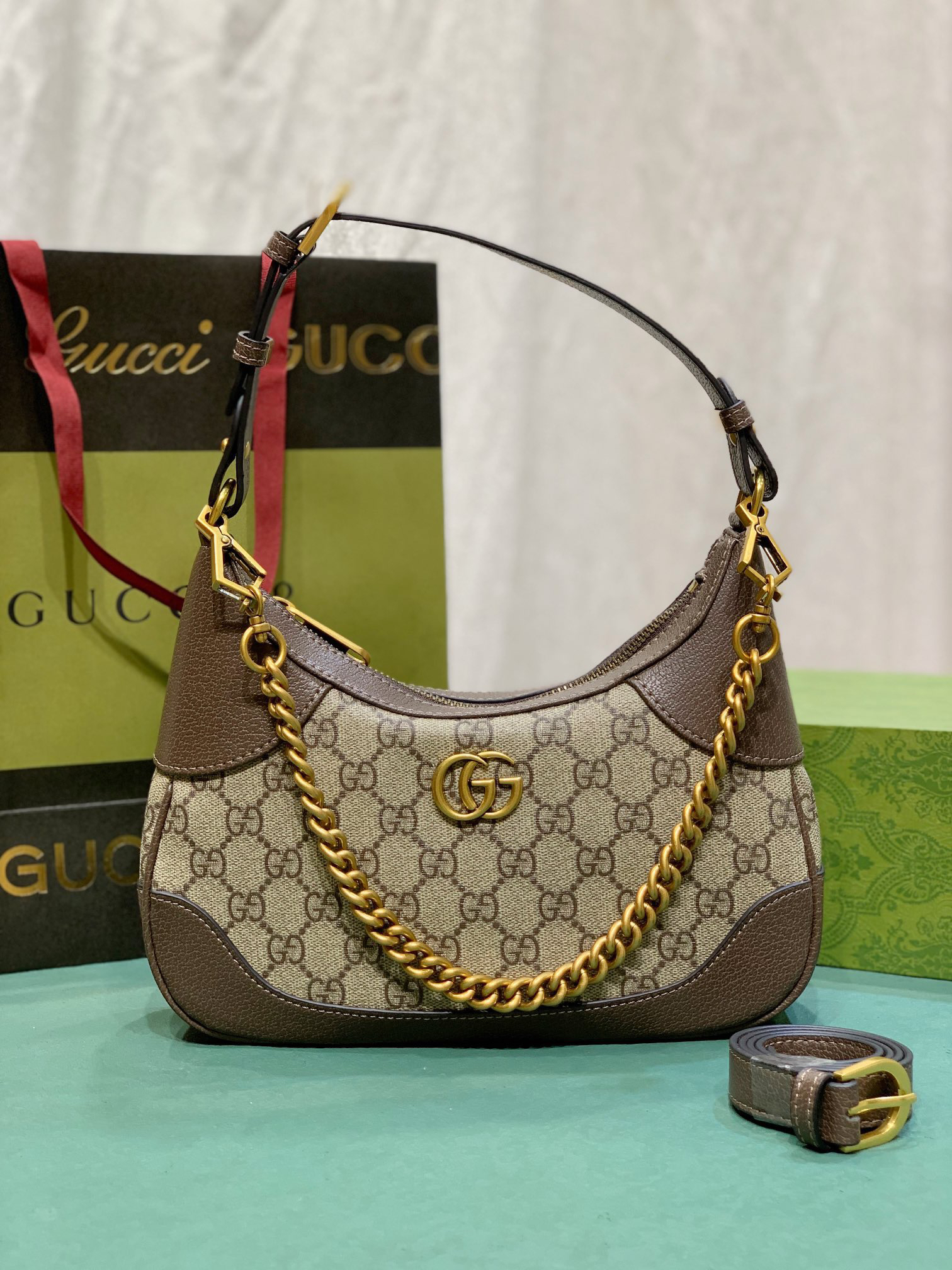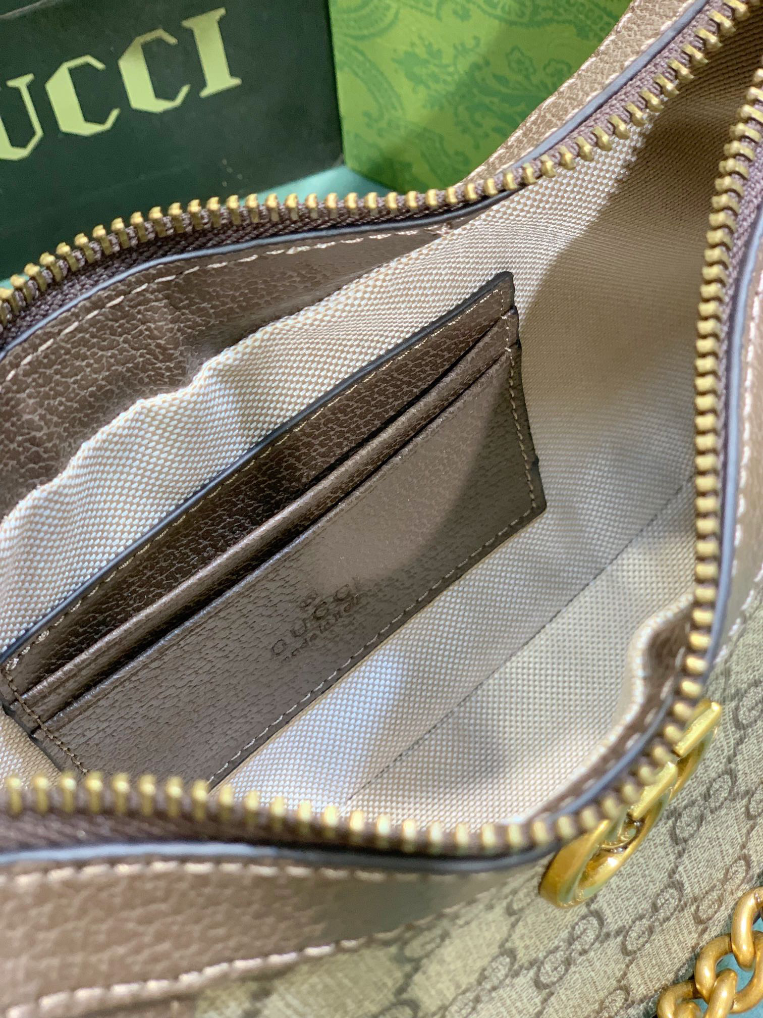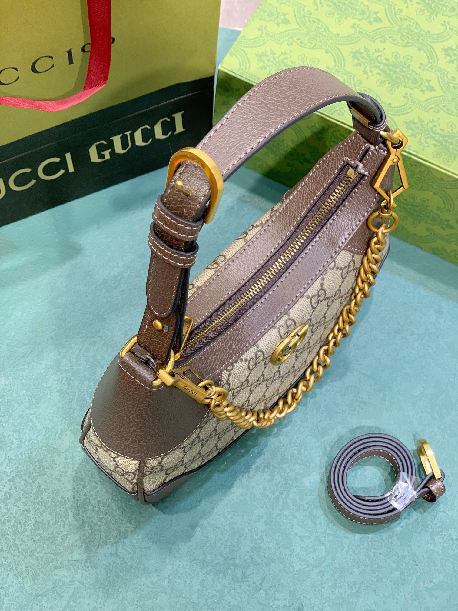 新款gg一zp开版cosmogonie系列在意大利历史悠久的蒙特城堡亮相。秀场上,不同时代、不同地理位置的美学元素交相辉映,将过去与当下相连结。这一全新的新月造型小号肩背包从品牌典藏元素汲取灵感,采用柔软皮革材质呈现,并饰有在20世纪70年代亮相的双g标志。它配有两条可肩带,一条采用皮革材质,另一条则采用具有辨识度的gg金色调金属链设计,充分诠释了品牌所推崇的实用设计理念。