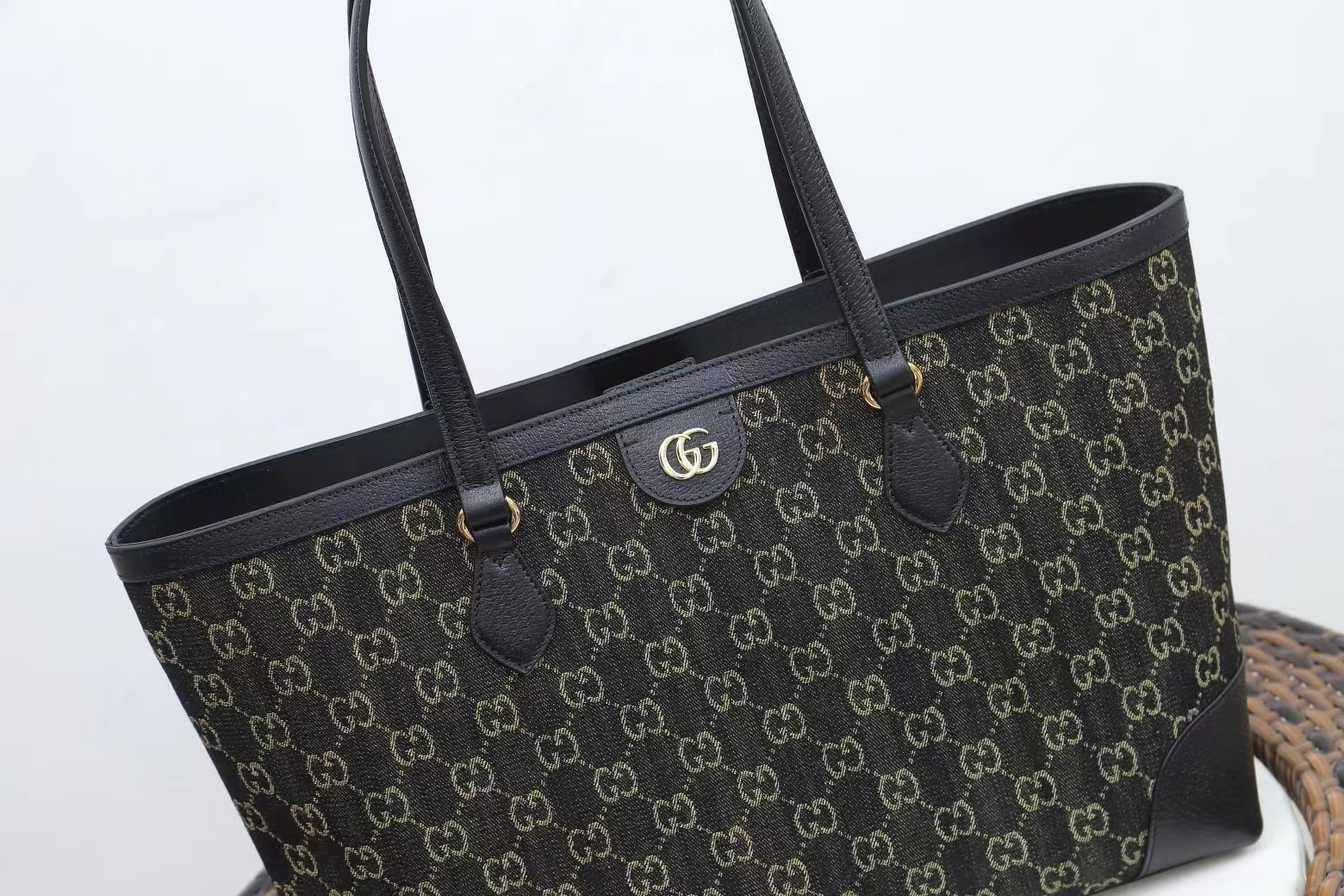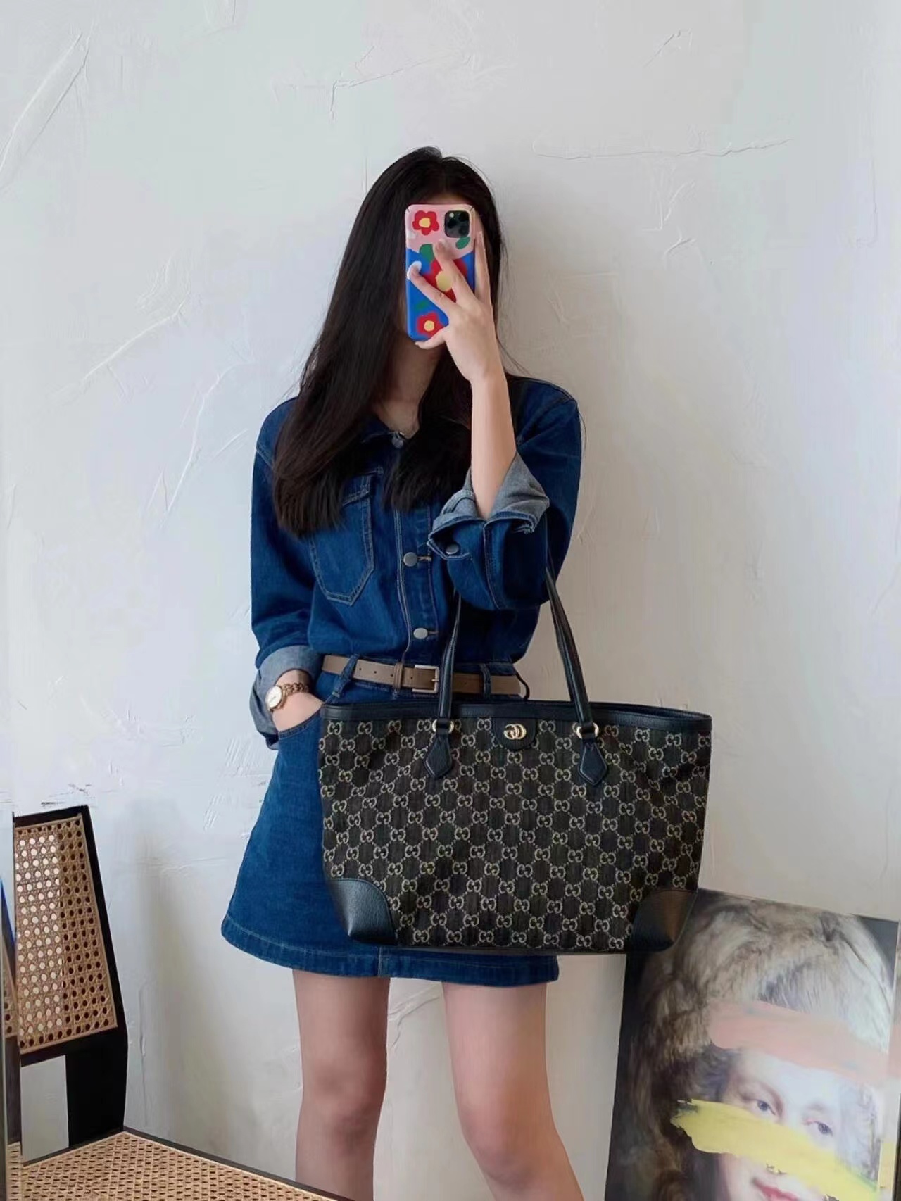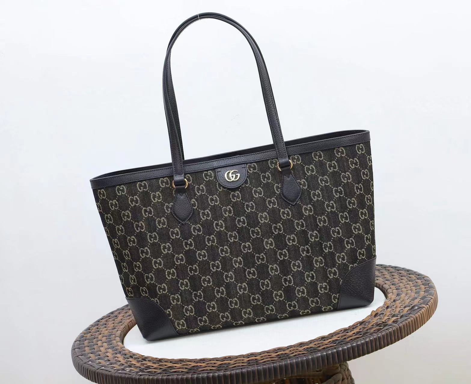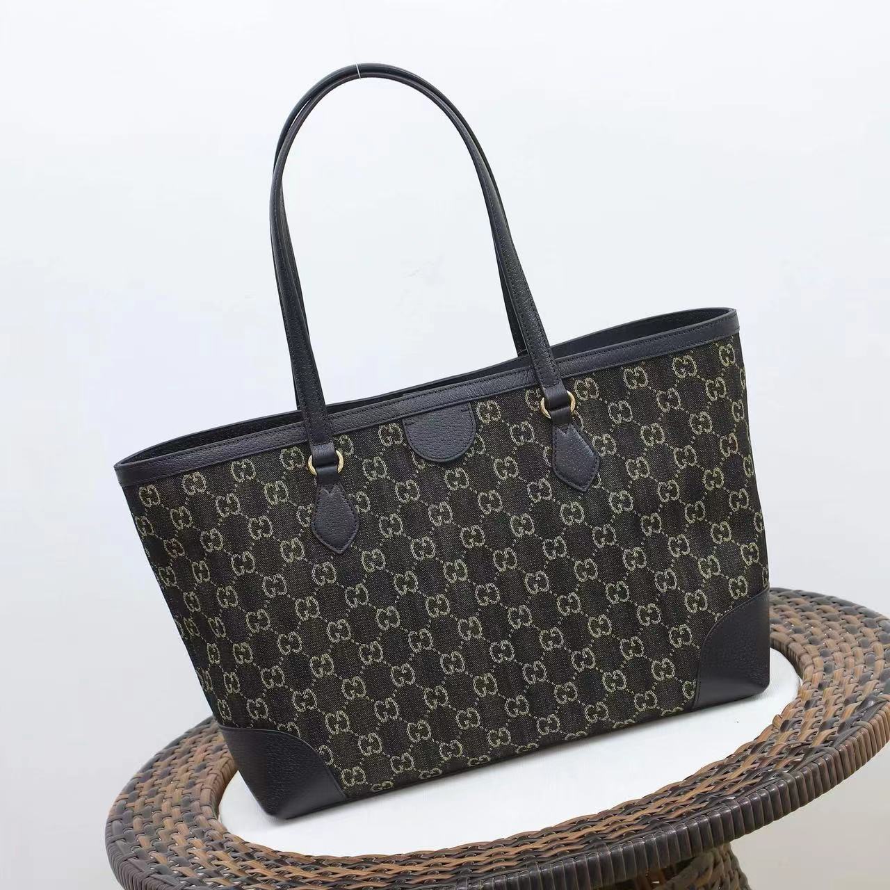 🌟GUCCI新款专柜品质,顶级原单货,实物实拍,款号:631685,尺寸:38x28x14,材质,进口洗水牛仔布配意大利原厂皮,Oidia系列继续将经典融入品牌现代设计理念。GG图案灵感源自30年代的Gucci钻石菱格纹,是品牌历史中不可或缺的传承。这款单品上采用黑色和象牙白色丹宁面料,点缀字母交织图案,突显时尚魅力!