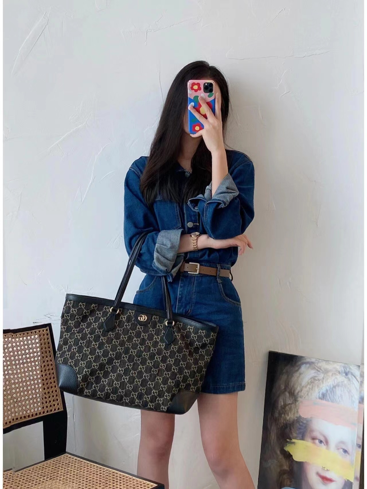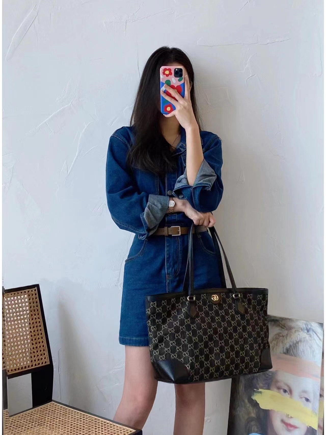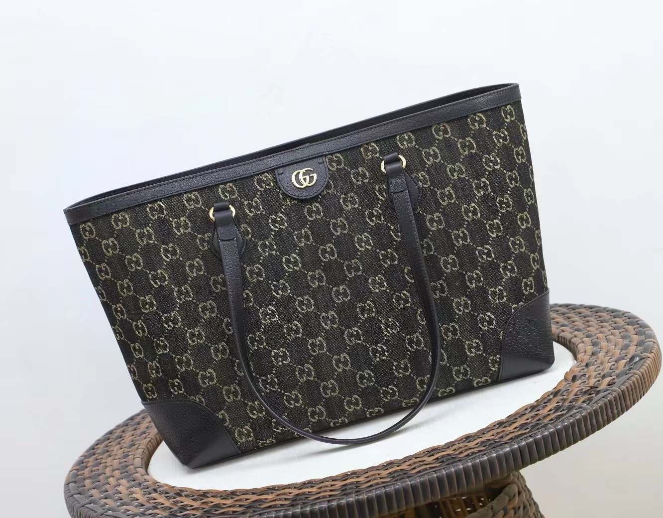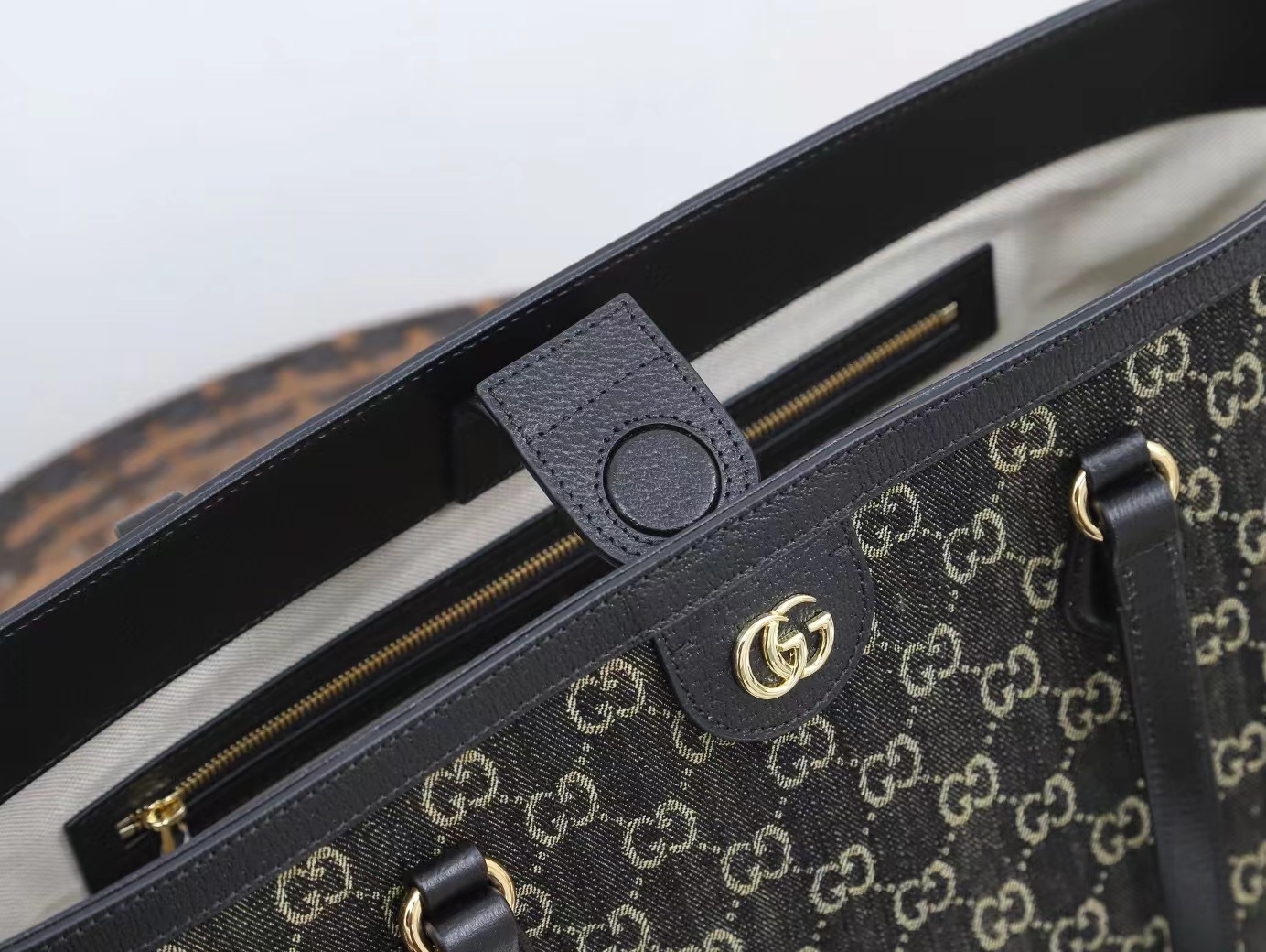 🌟GUCCI新款专柜品质,顶级原单货,实物实拍,款号:631685,尺寸:38x28x14,材质,进口洗水牛仔布配意大利原厂皮,Oidia系列继续将经典融入品牌现代设计理念。GG图案灵感源自30年代的Gucci钻石菱格纹,是品牌历史中不可或缺的传承。这款单品上采用黑色和象牙白色丹宁面料,点缀字母交织图案,突显时尚魅力!