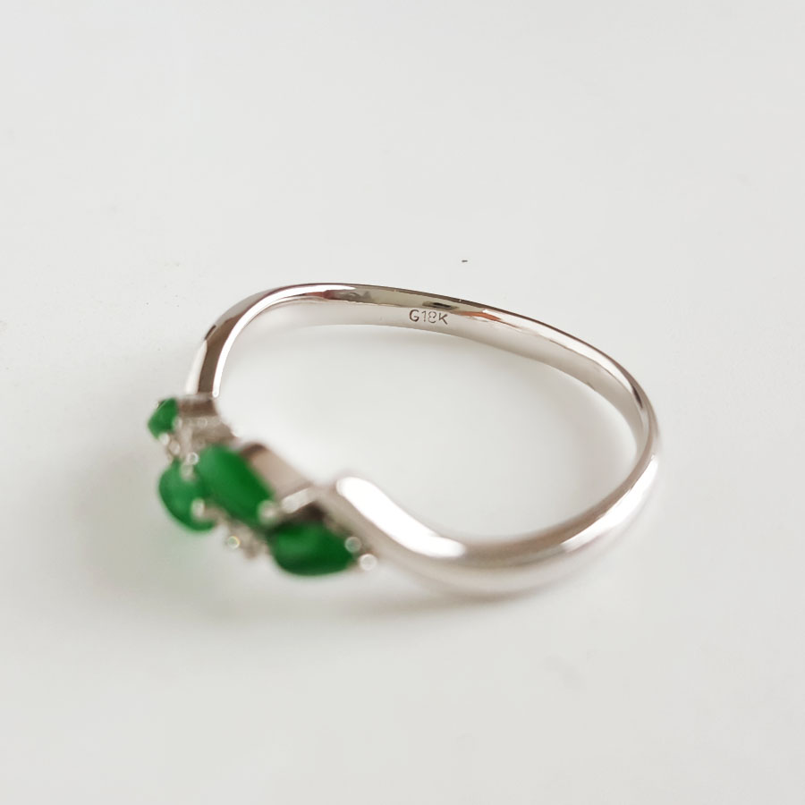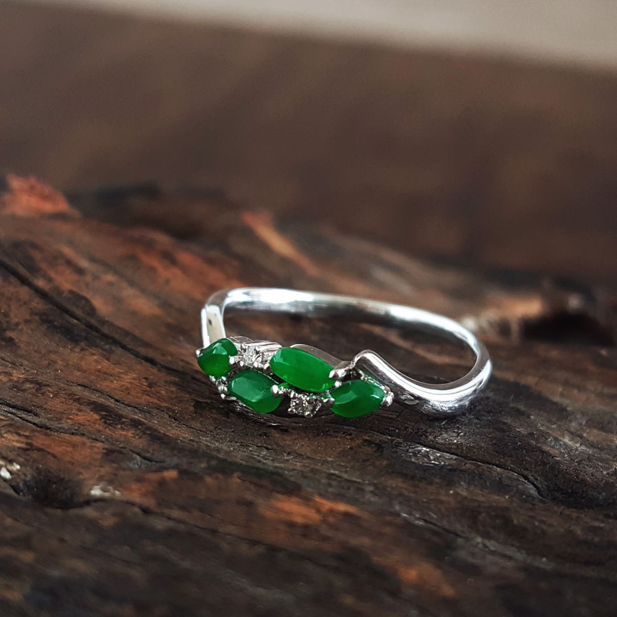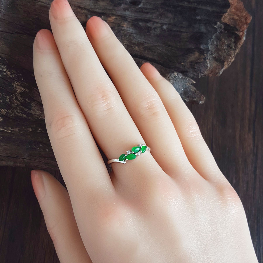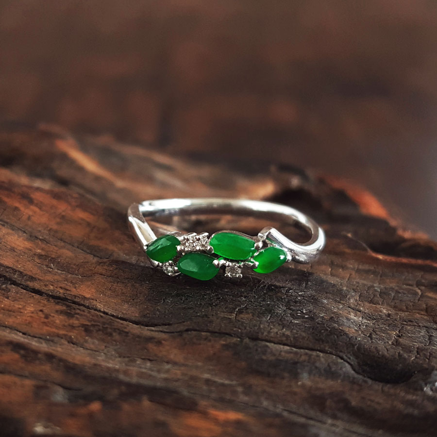名称 | AU750精品白金镶钻镶天然冰种阳绿随型翡翠戒指 |