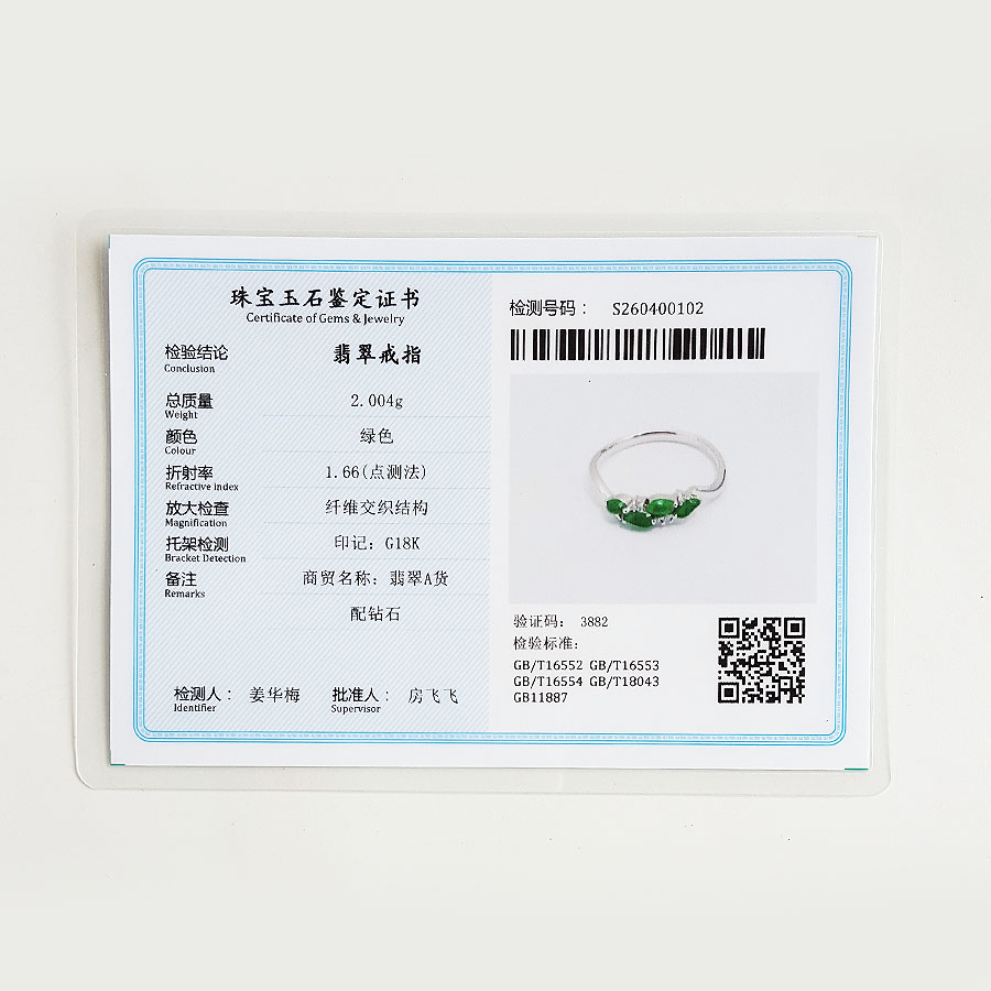 【天然正品】A货翡翠AU750精品白金镶钻镶天然冰种阳绿随型翡翠戒指13号(戒圈可改)310326NJT25