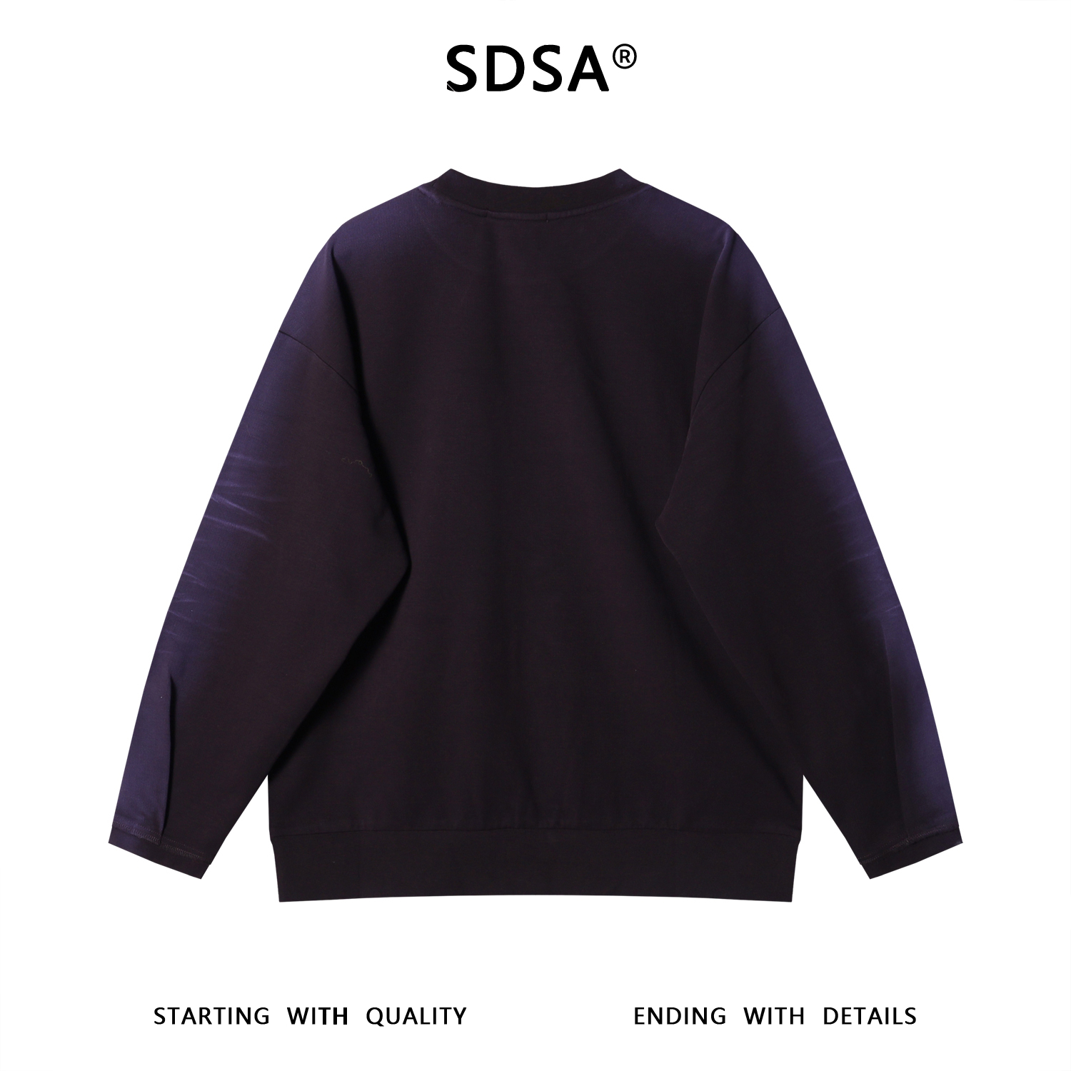 SDSA男士秋冬新款痞帅男装简约扎染铆钉圆领卫衣宽松情侣套头上衣