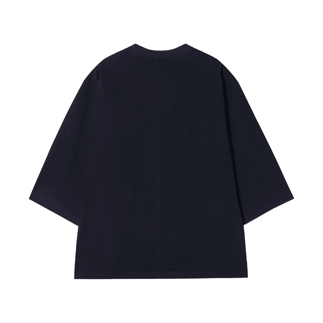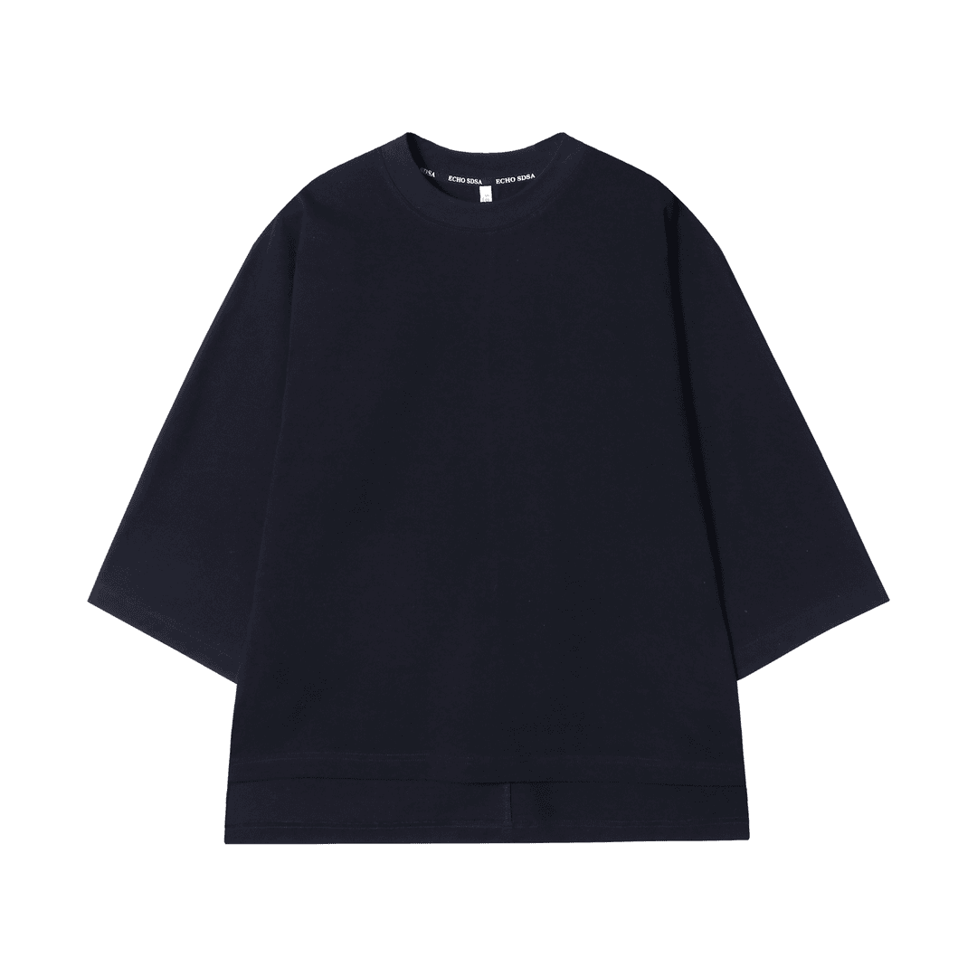 T1412夏季新款时尚拼接休闲七分袖男士上衣百搭潮流纯黑色短袖宽松T恤