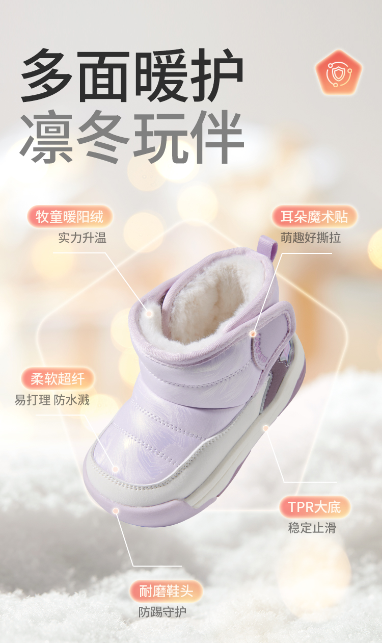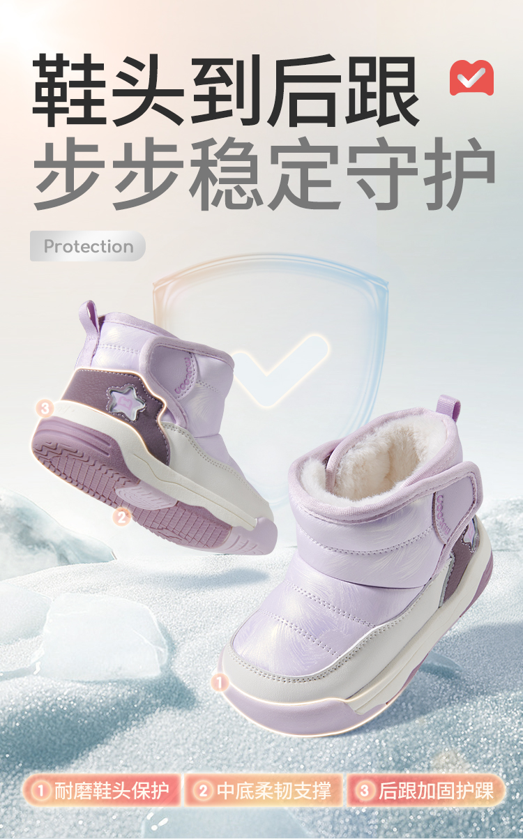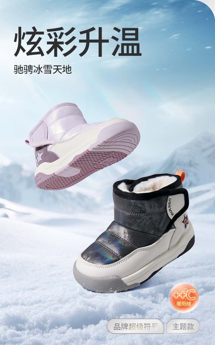 牧童2025冬季大棉雪地靴2-6岁新款稳步机能鞋幼儿园大棉软底棉鞋