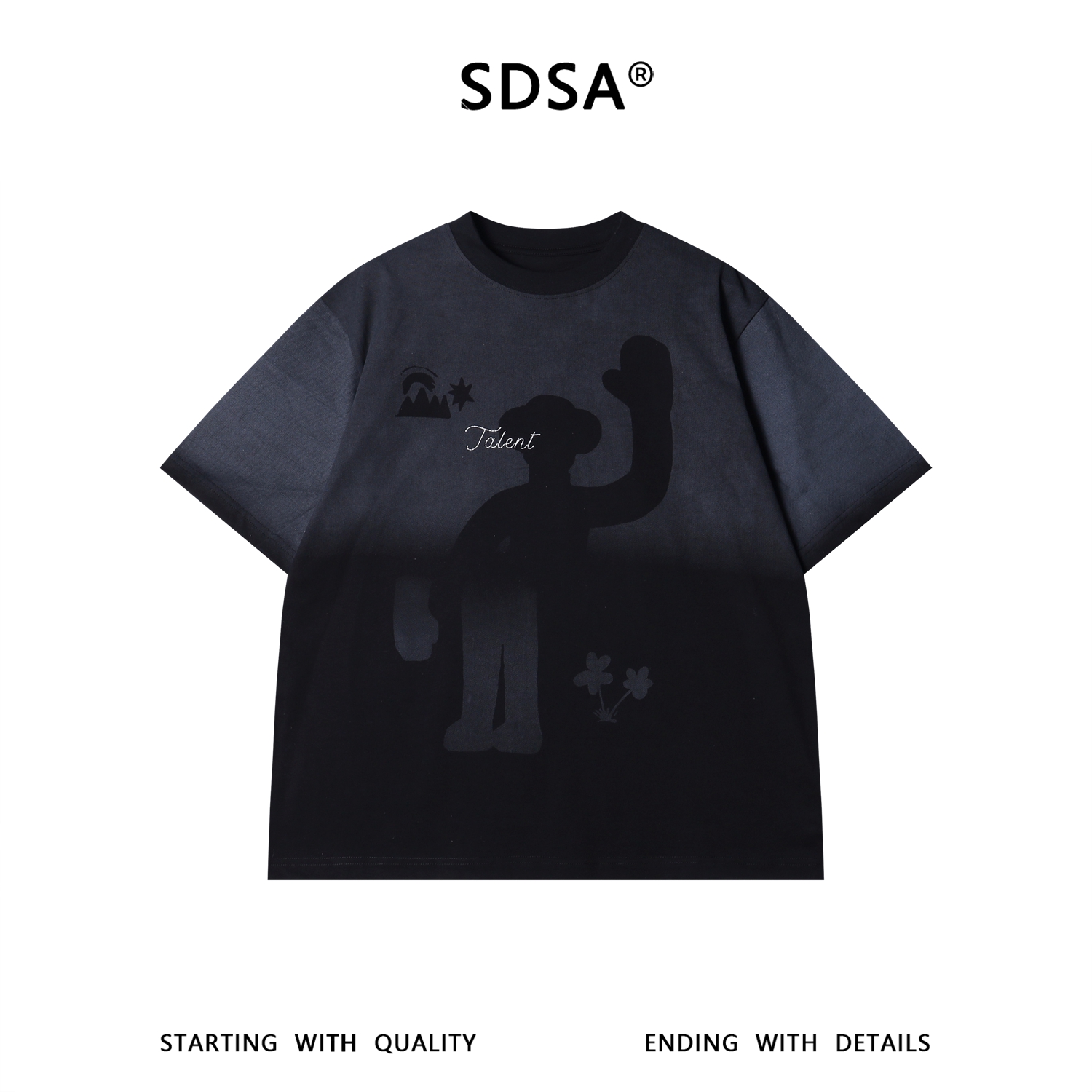 SDSA男装2026新款轻奢美式渐变卡通招手印花圆领短袖T恤百搭潮