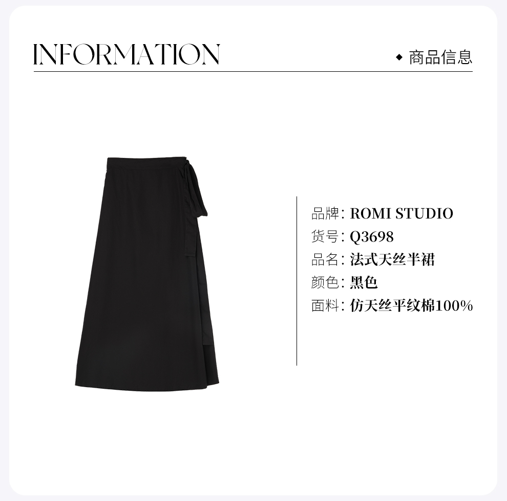 ROMI STUDIO“法式衣橱”100%天丝轻薄垂坠感一片式裹裙半裙Q3698
