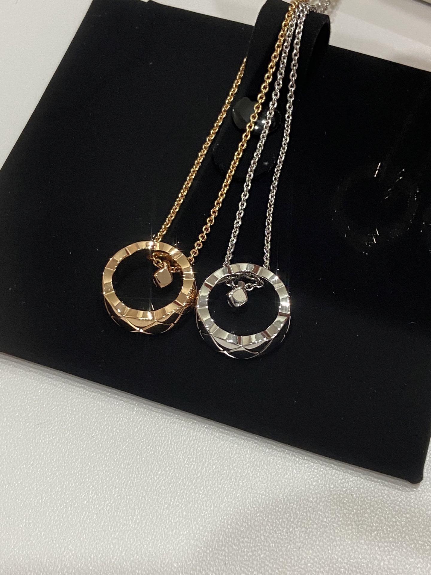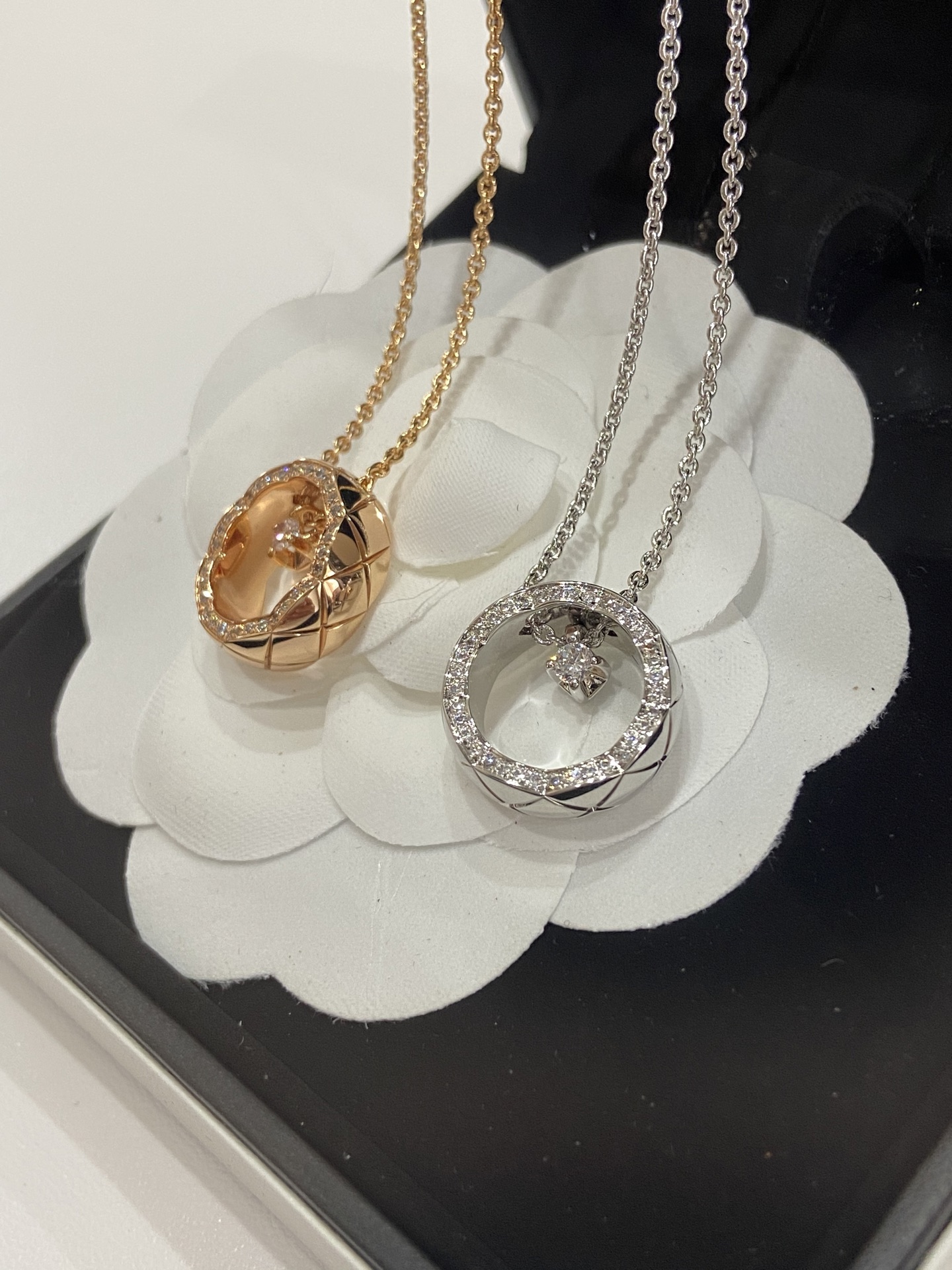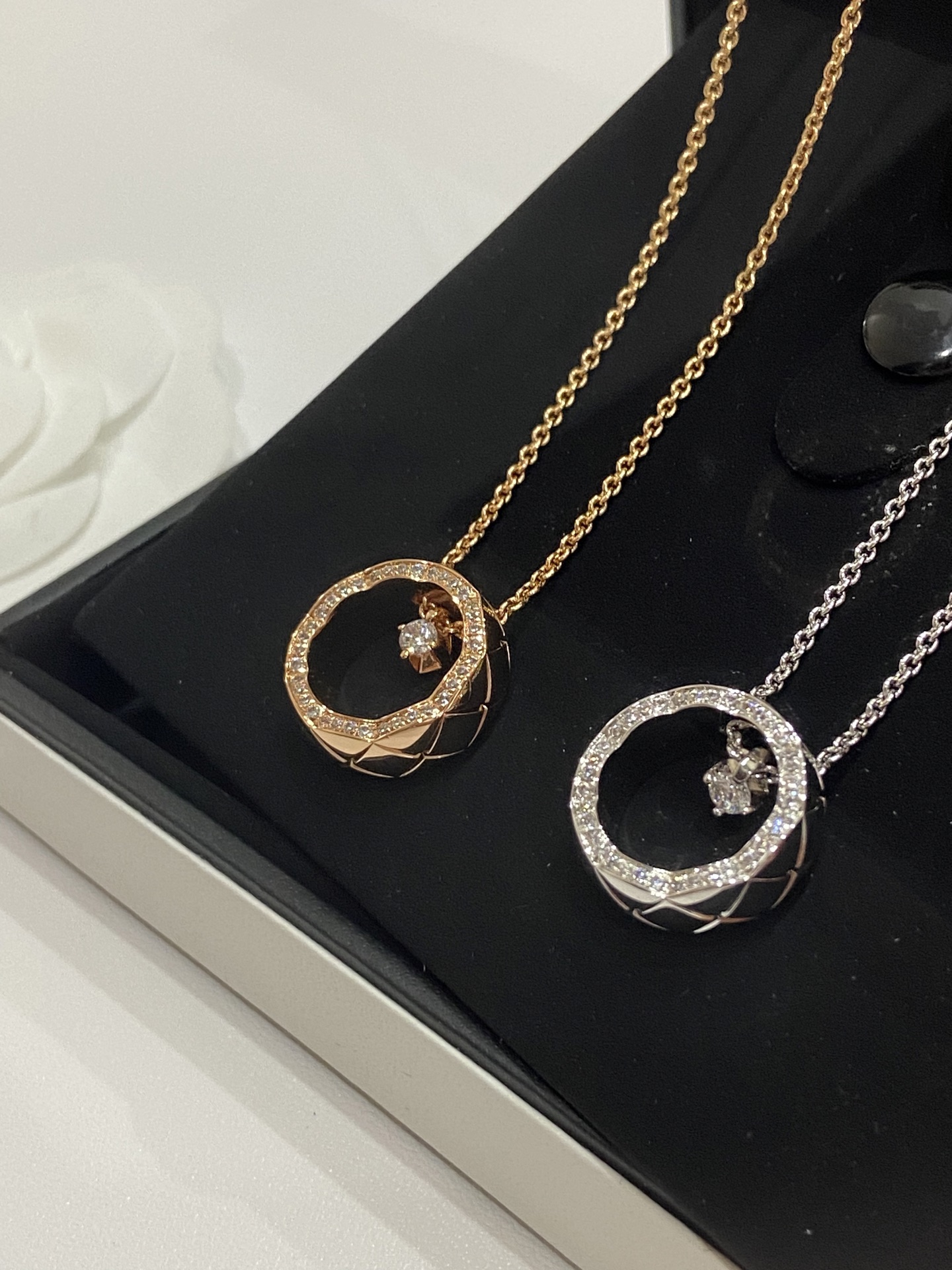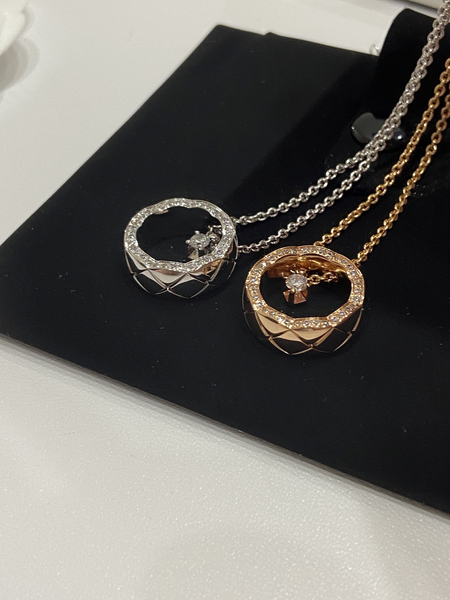 🎈🎈🎈新款COCO CRUSH菱格钻石项链 满月!我们做的是zp一对一版,和zp所有细节达到一致!包括项链内壁的凹槽,视觉上会显得很有质感,我们对项链整体进行360抛光,质感超级好❗️外圈层的菱格纹是用最坚硬的钻石刀雕刻形成渐变的效果,市面很多都是齐平的,这个工艺难度非常高!我们采用进口CNC精雕机精雕,非常精致!采用进口硅钛料钻石镶嵌,超级闪耀!爪子牢牢扣住💎,不必担心掉石✅这系列不管是项链戒指还是耳环,都是用珠宝里最好的工艺来完成,达到大家追求的高端效果!
