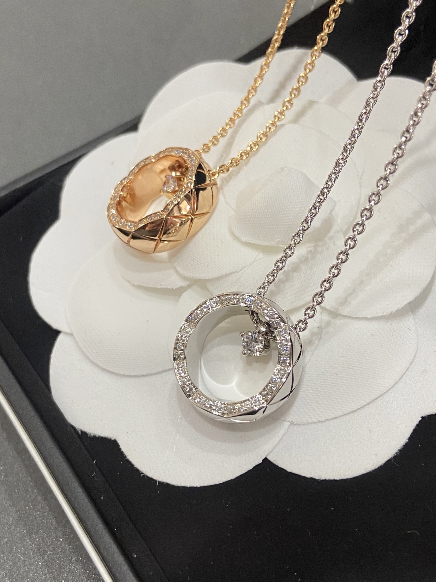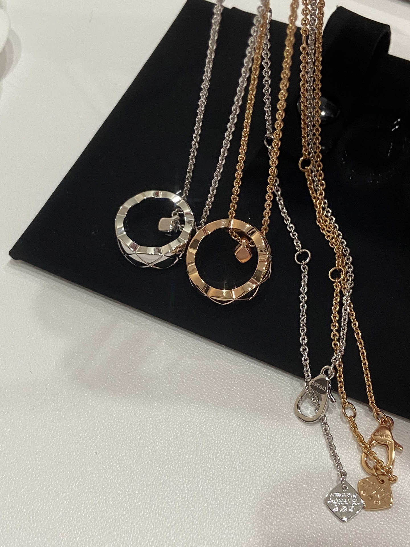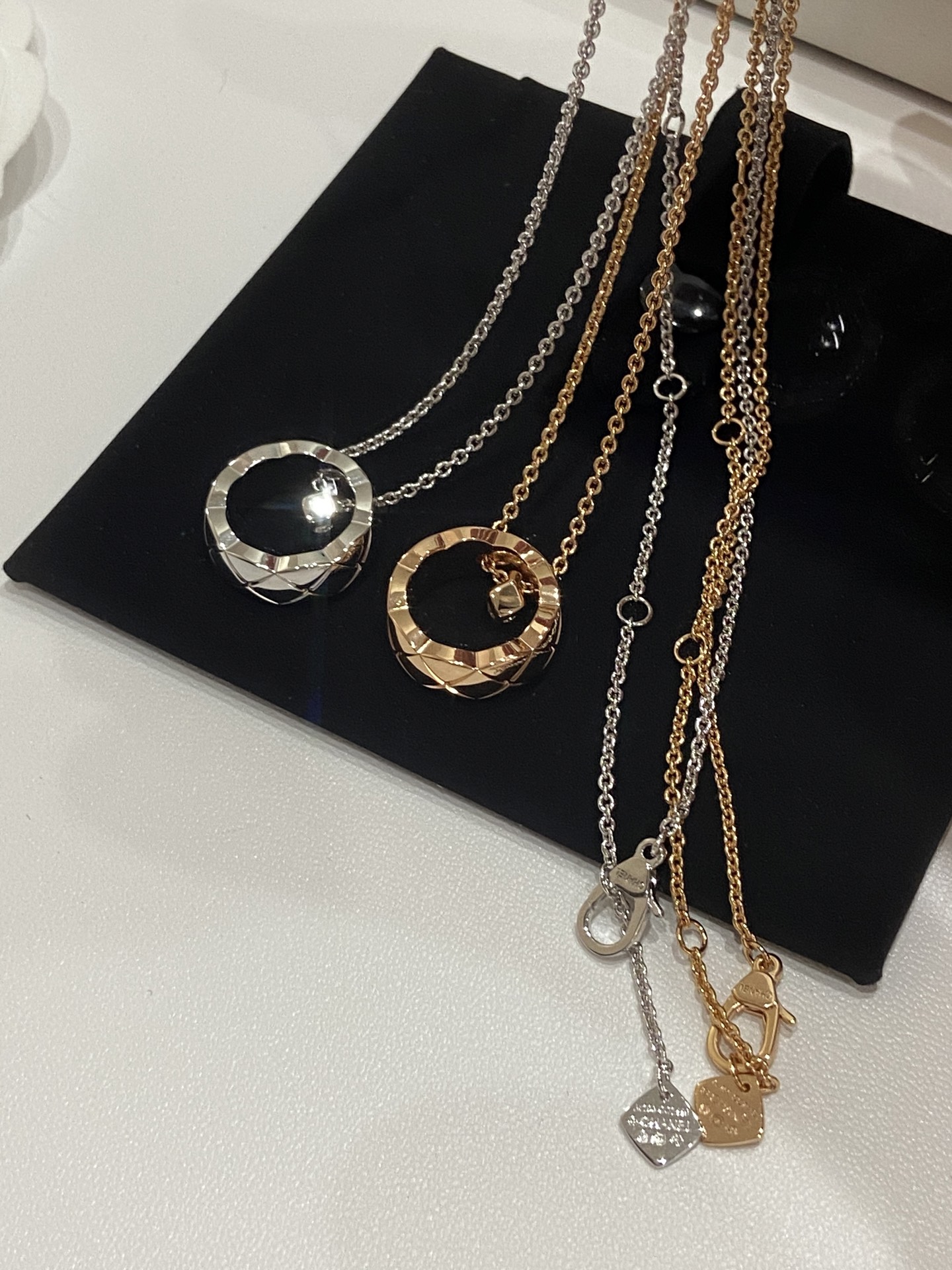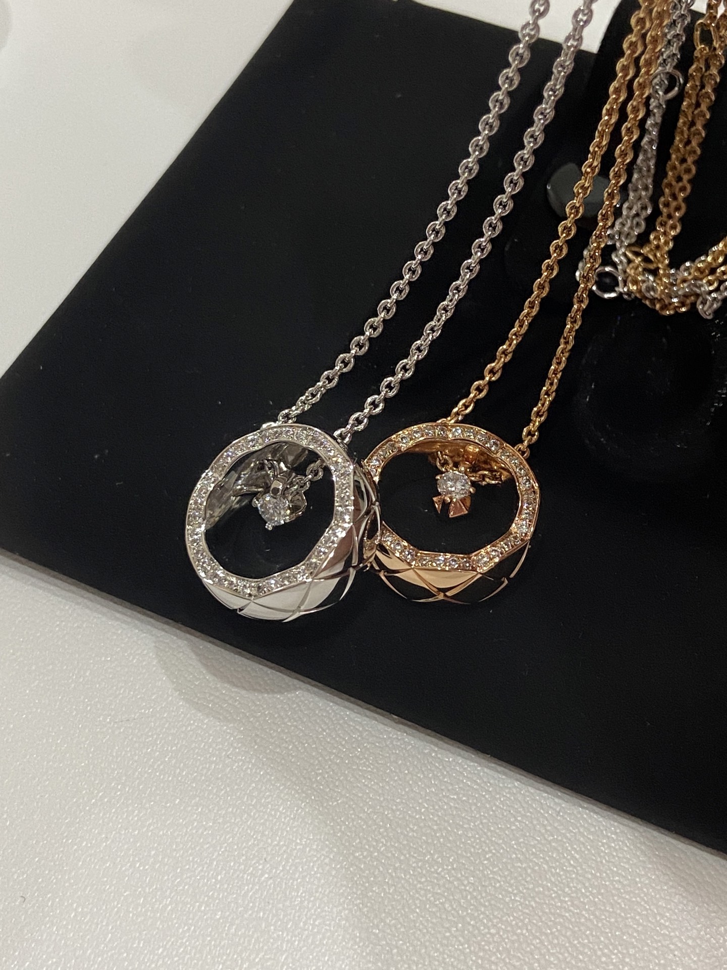 🎈🎈🎈新款COCO CRUSH菱格钻石项链 满月!我们做的是zp一对一版,和zp所有细节达到一致!包括项链内壁的凹槽,视觉上会显得很有质感,我们对项链整体进行360抛光,质感超级好❗️外圈层的菱格纹是用最坚硬的钻石刀雕刻形成渐变的效果,市面很多都是齐平的,这个工艺难度非常高!我们采用进口CNC精雕机精雕,非常精致!采用进口硅钛料钻石镶嵌,超级闪耀!爪子牢牢扣住💎,不必担心掉石✅这系列不管是项链戒指还是耳环,都是用珠宝里最好的工艺来完成,达到大家追求的高端效果!