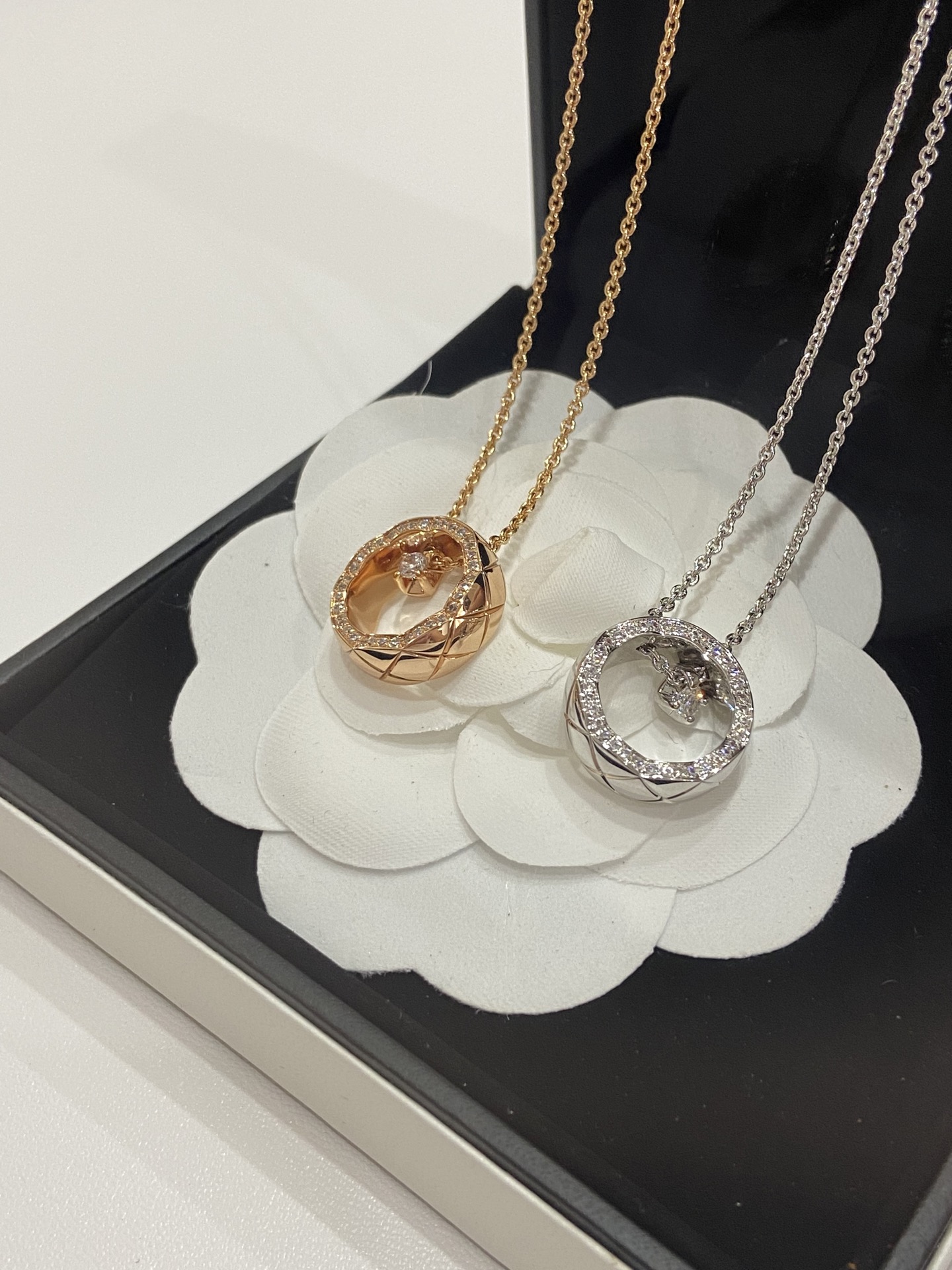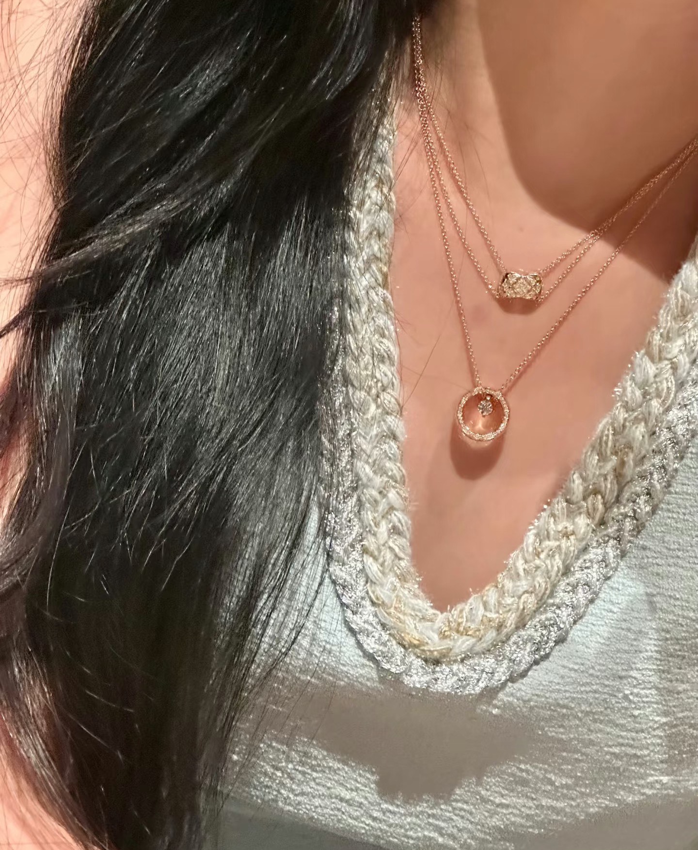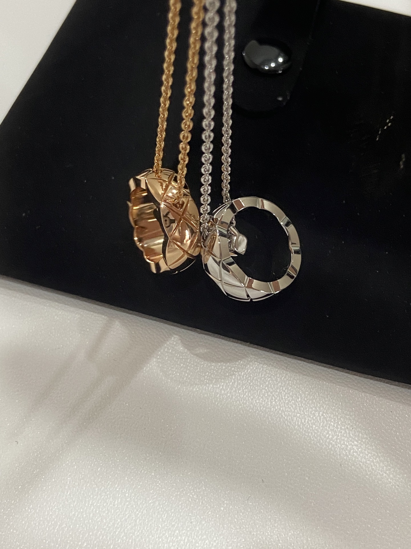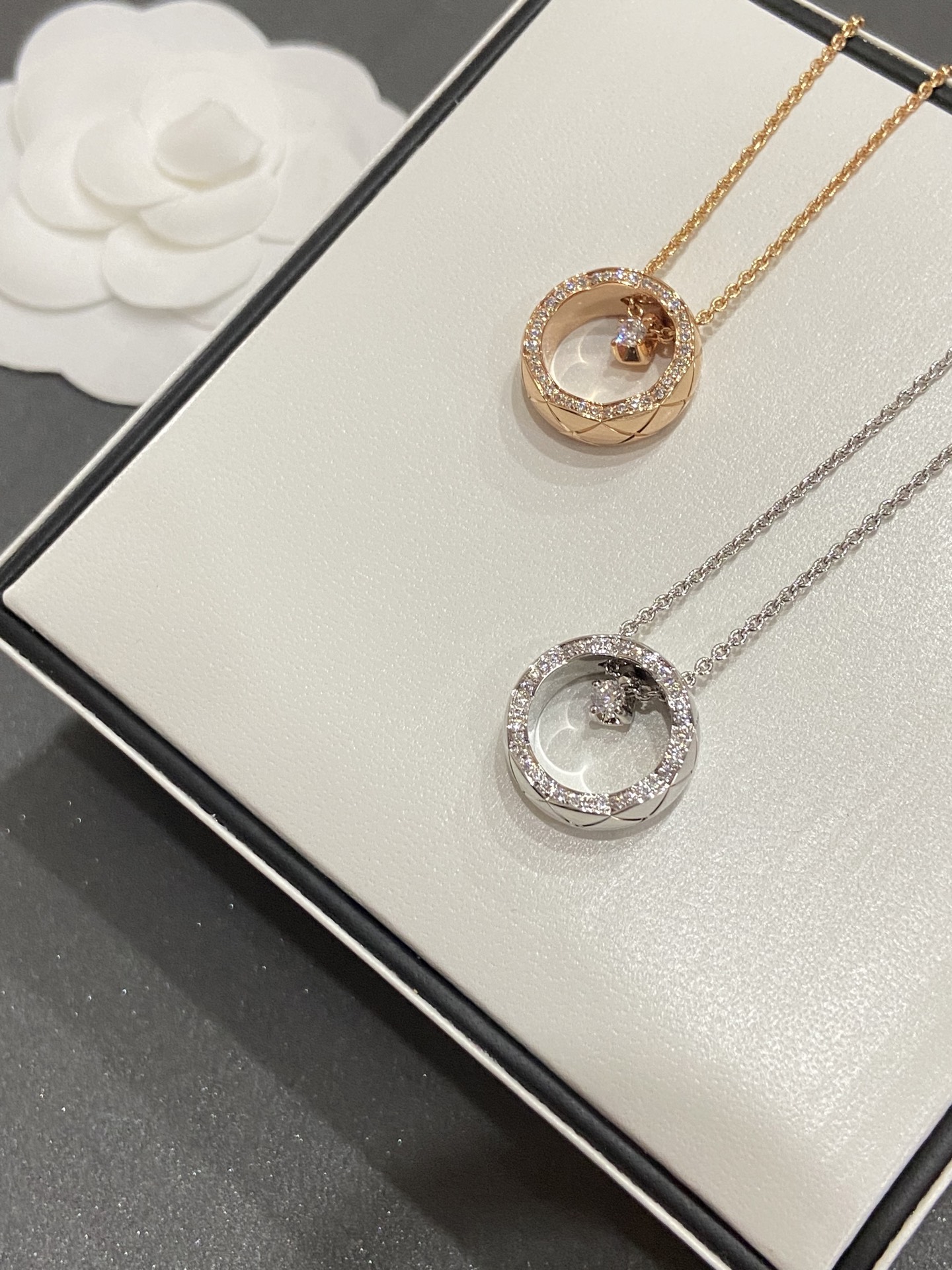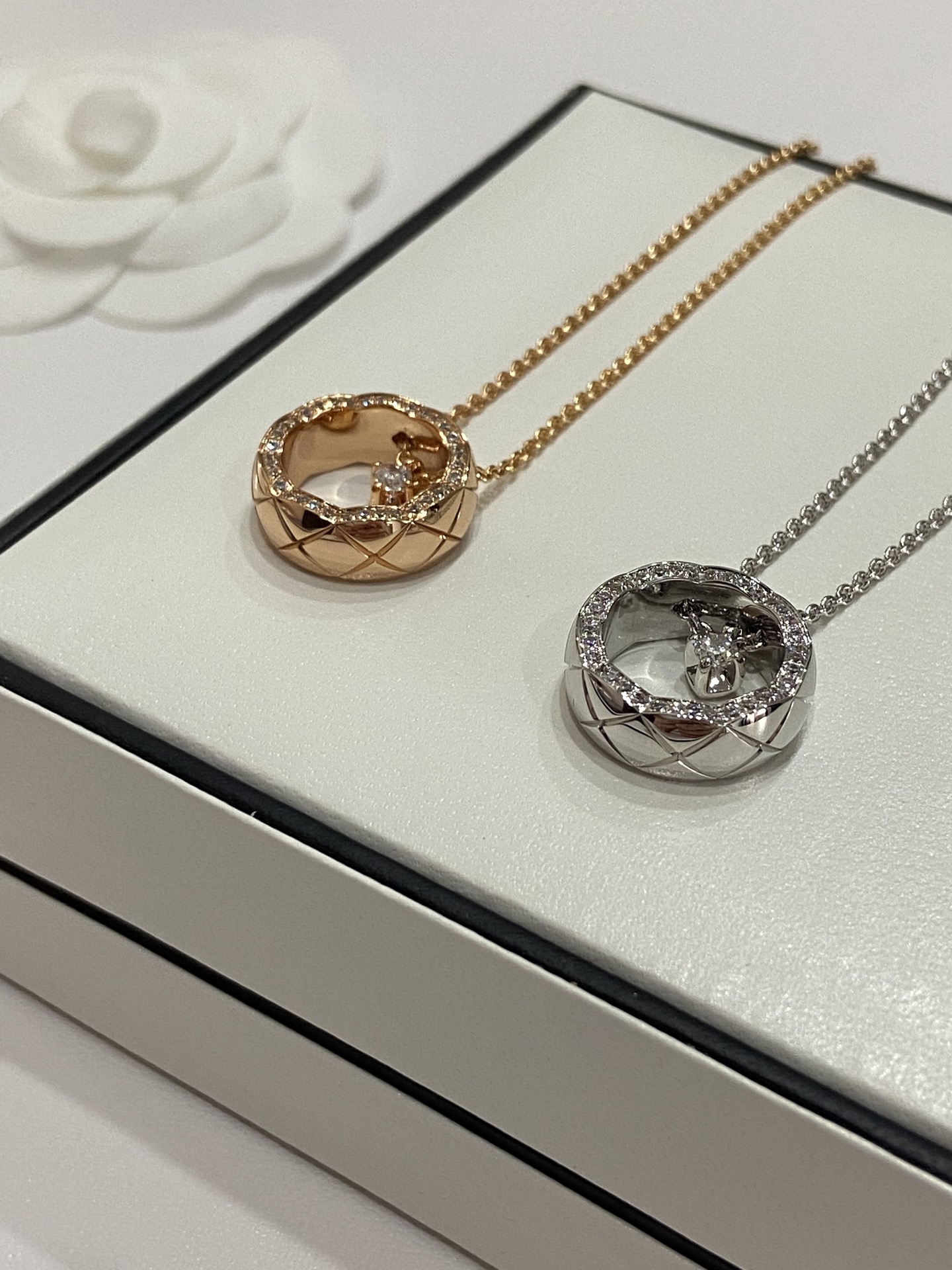 🎈🎈🎈新款COCO CRUSH菱格钻石项链 满月!我们做的是zp一对一版,和zp所有细节达到一致!包括项链内壁的凹槽,视觉上会显得很有质感,我们对项链整体进行360抛光,质感超级好❗️外圈层的菱格纹是用最坚硬的钻石刀雕刻形成渐变的效果,市面很多都是齐平的,这个工艺难度非常高!我们采用进口CNC精雕机精雕,非常精致!采用进口硅钛料钻石镶嵌,超级闪耀!爪子牢牢扣住💎,不必担心掉石✅这系列不管是项链戒指还是耳环,都是用珠宝里最好的工艺来完成,达到大家追求的高端效果!
