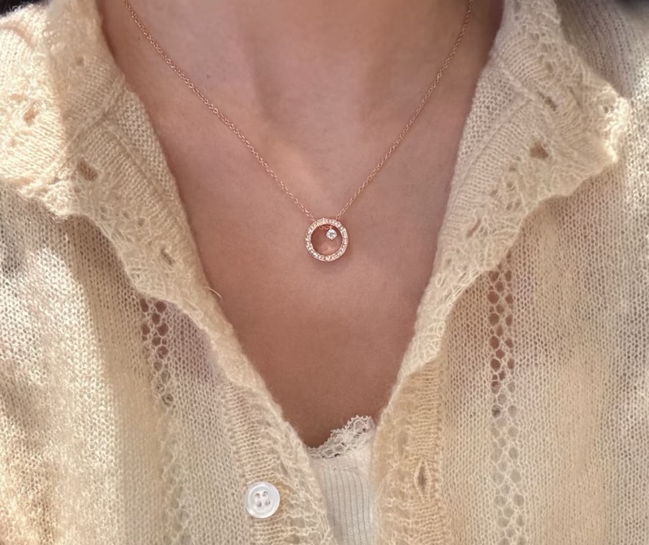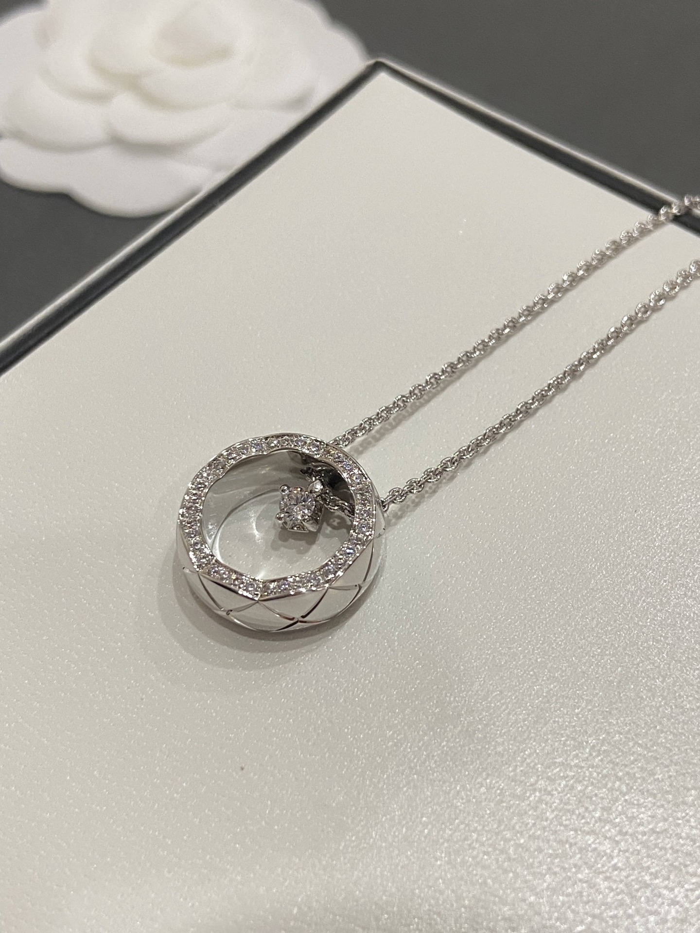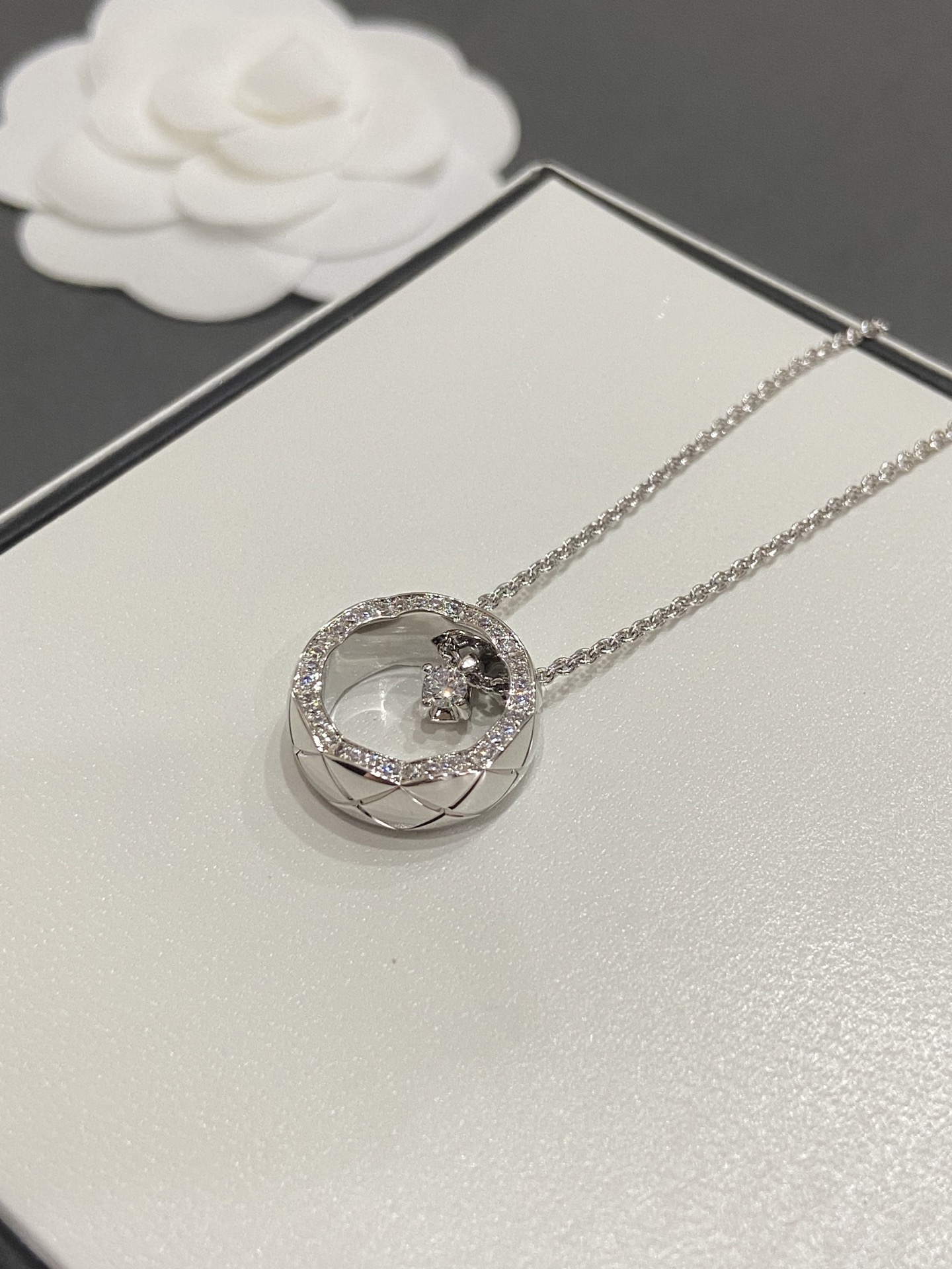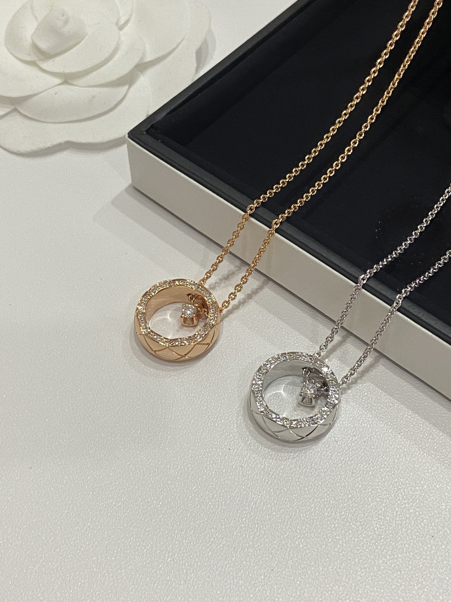 🎈🎈🎈新款COCO CRUSH菱格钻石项链 满月!我们做的是zp一对一版,和zp所有细节达到一致!包括项链内壁的凹槽,视觉上会显得很有质感,我们对项链整体进行360抛光,质感超级好❗️外圈层的菱格纹是用最坚硬的钻石刀雕刻形成渐变的效果,市面很多都是齐平的,这个工艺难度非常高!我们采用进口CNC精雕机精雕,非常精致!采用进口硅钛料钻石镶嵌,超级闪耀!爪子牢牢扣住💎,不必担心掉石✅这系列不管是项链戒指还是耳环,都是用珠宝里最好的工艺来完成,达到大家追求的高端效果!