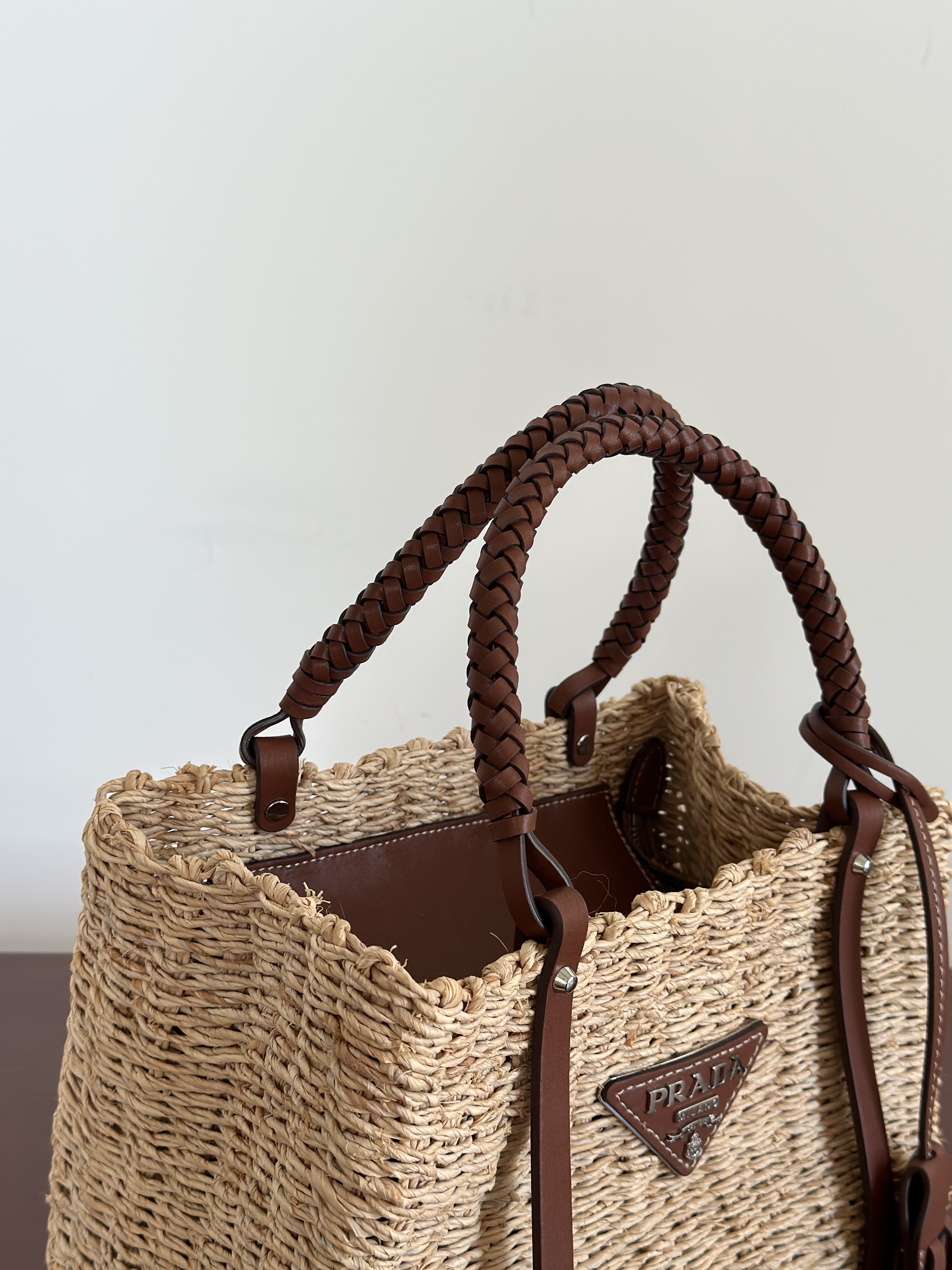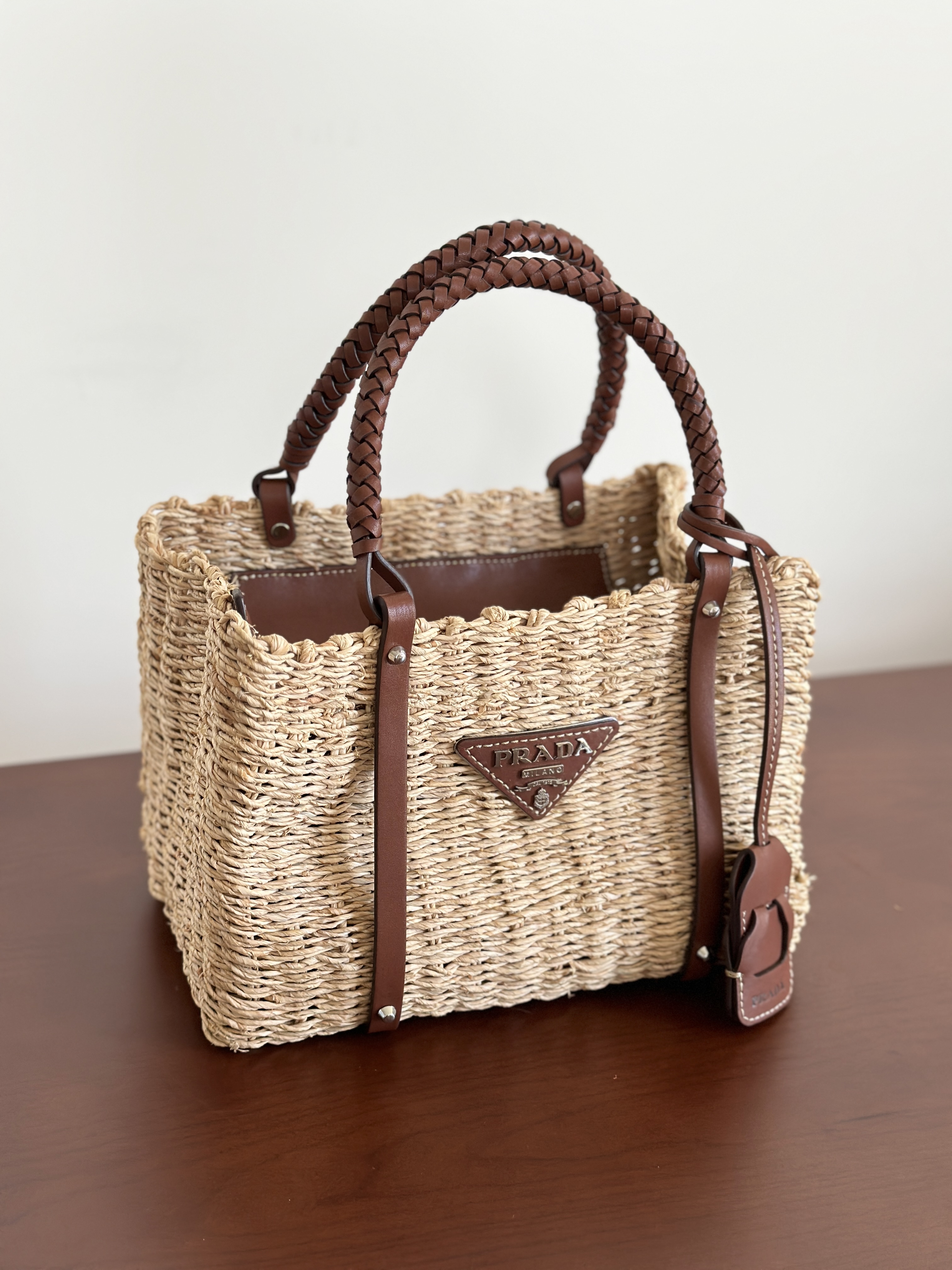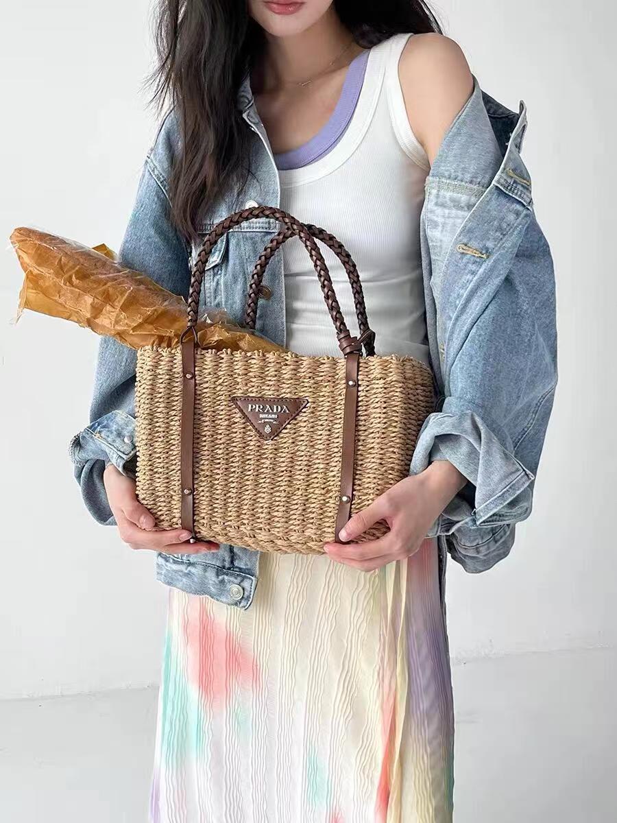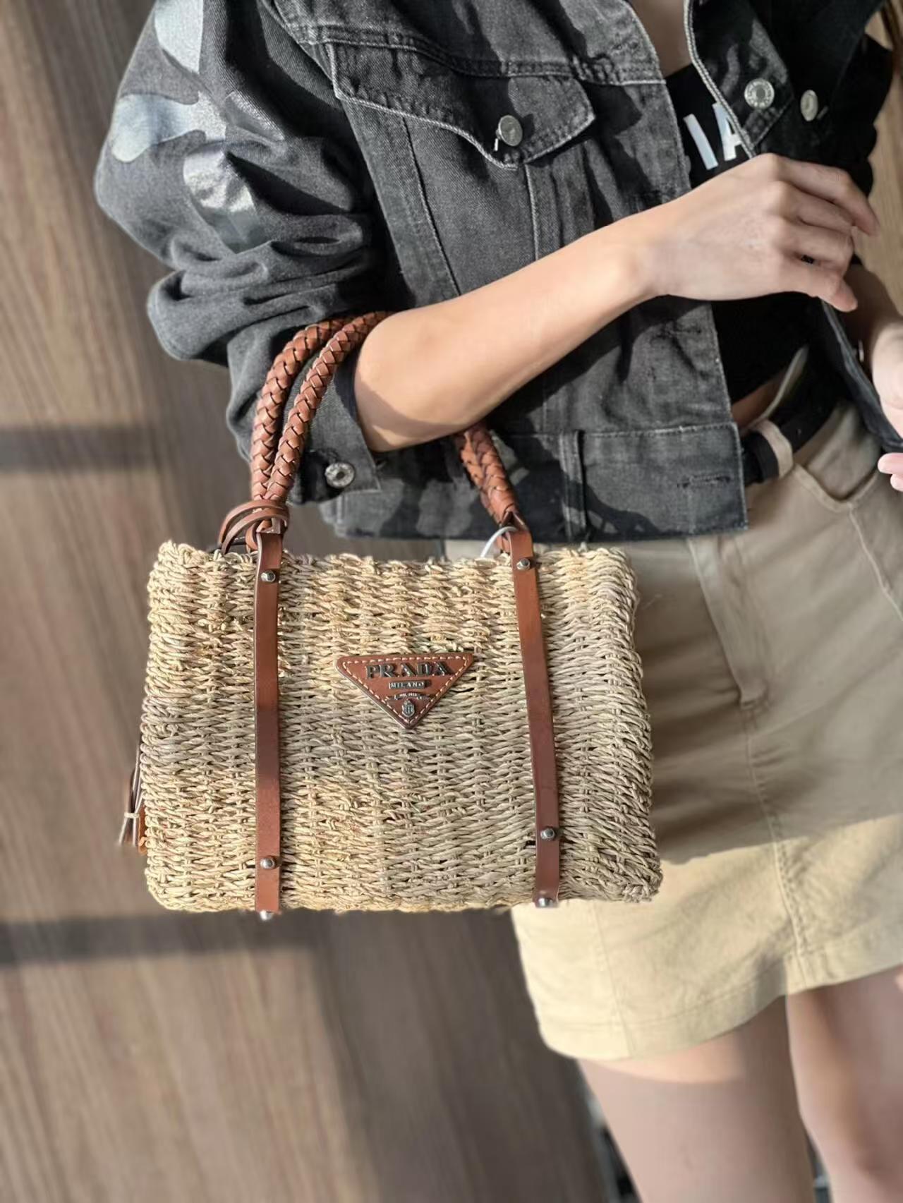 BT038-普拉达光滑牛皮和稻草 手提包 男女同款情侣款 米色( BT*RG)7.22直播款