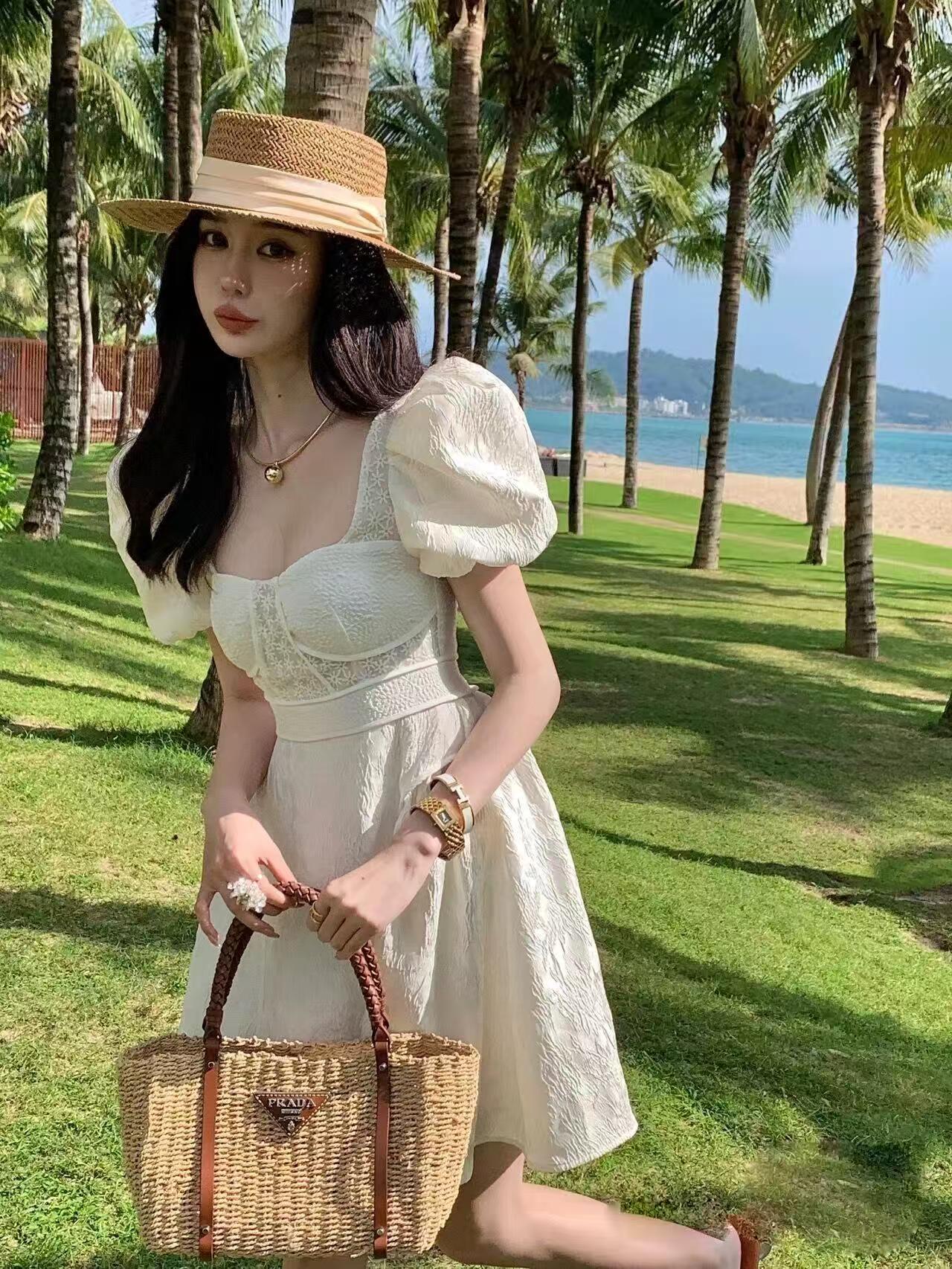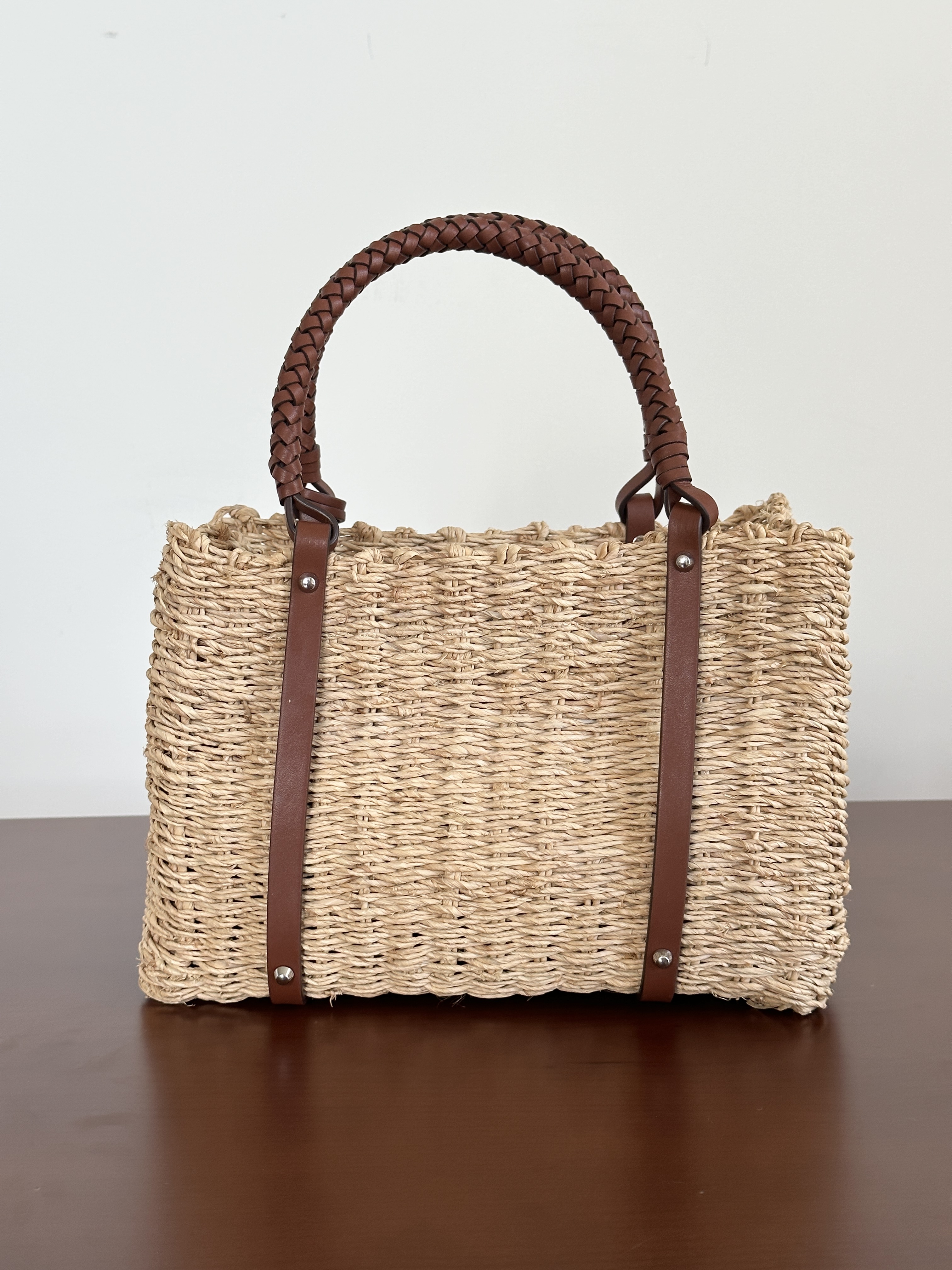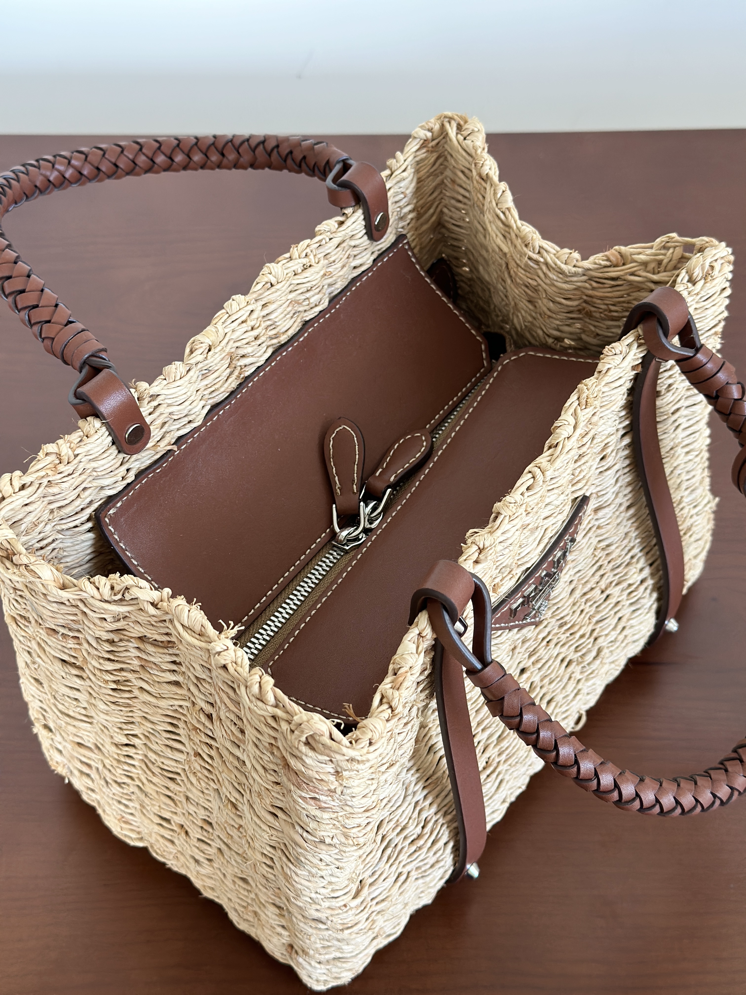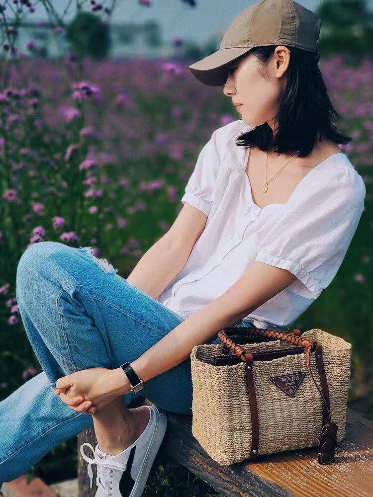 BT038-普拉达光滑牛皮和稻草 手提包 男女同款情侣款 米色( BT*RG)7.22直播款