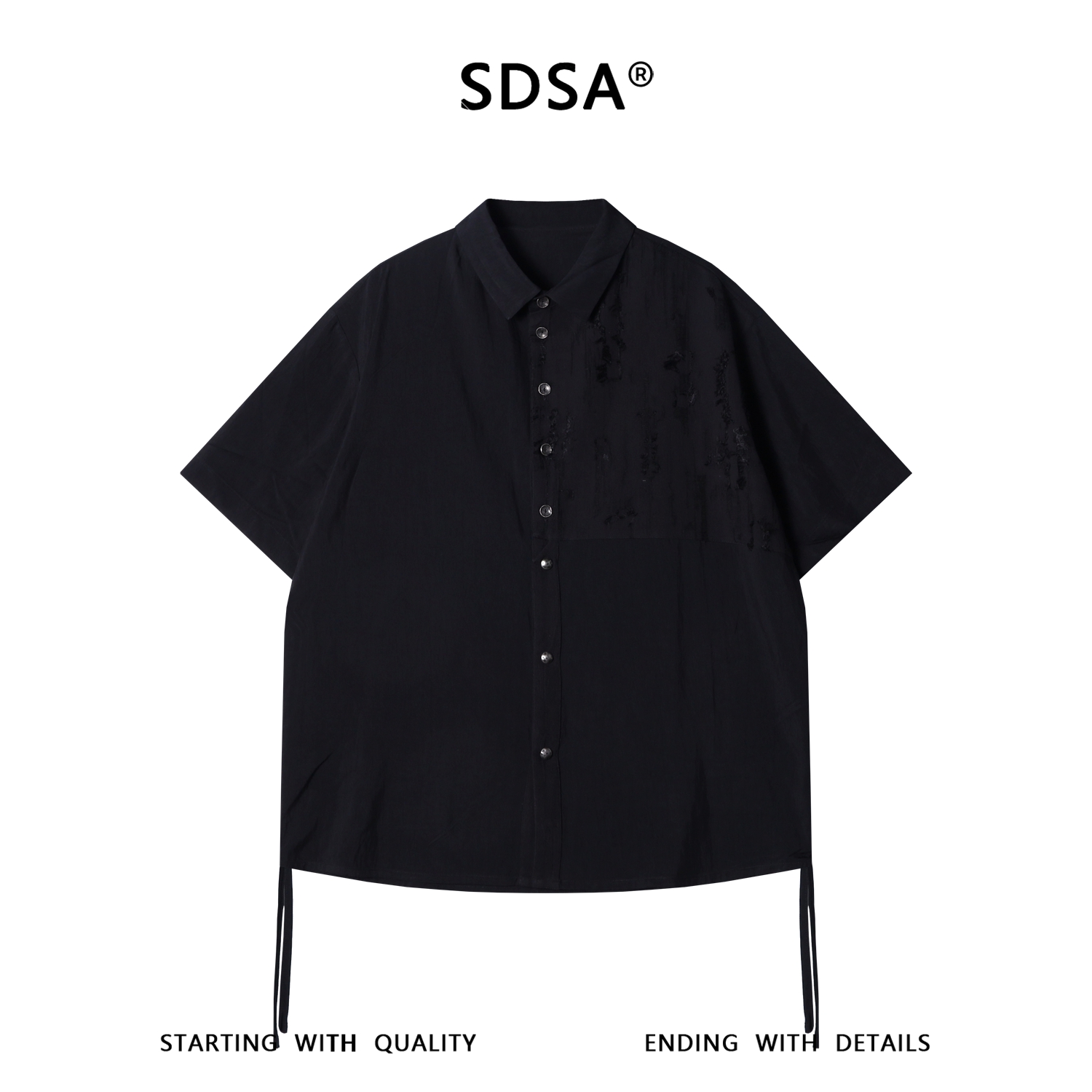 SDSA男装2026新款高贵轻奢下摆抽绳暗纹短袖衬衫宽松翻领休闲上衣