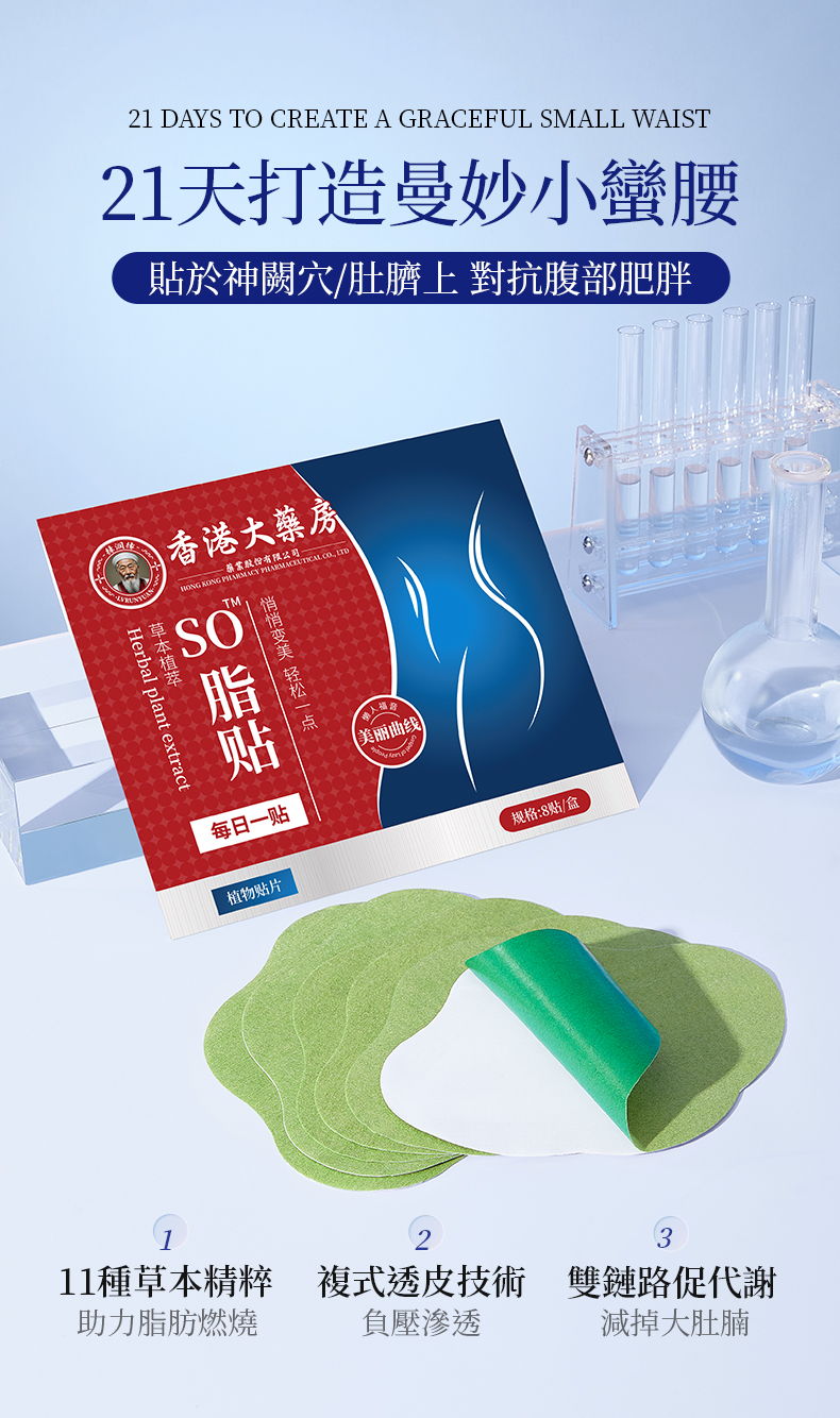 【买2送1,买3送2】香港大药房·So脂贴 每日一贴 轻松享瘦 百年品牌 草本配方 安全不反弹 8贴/盒