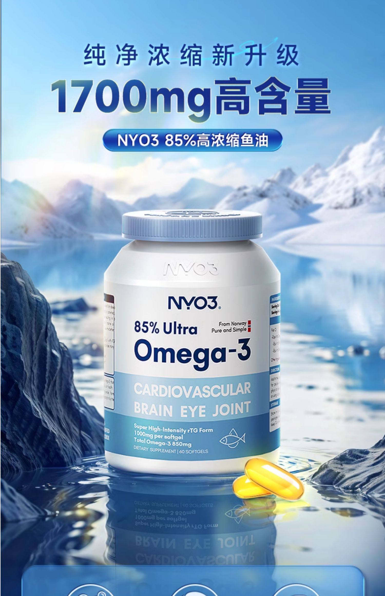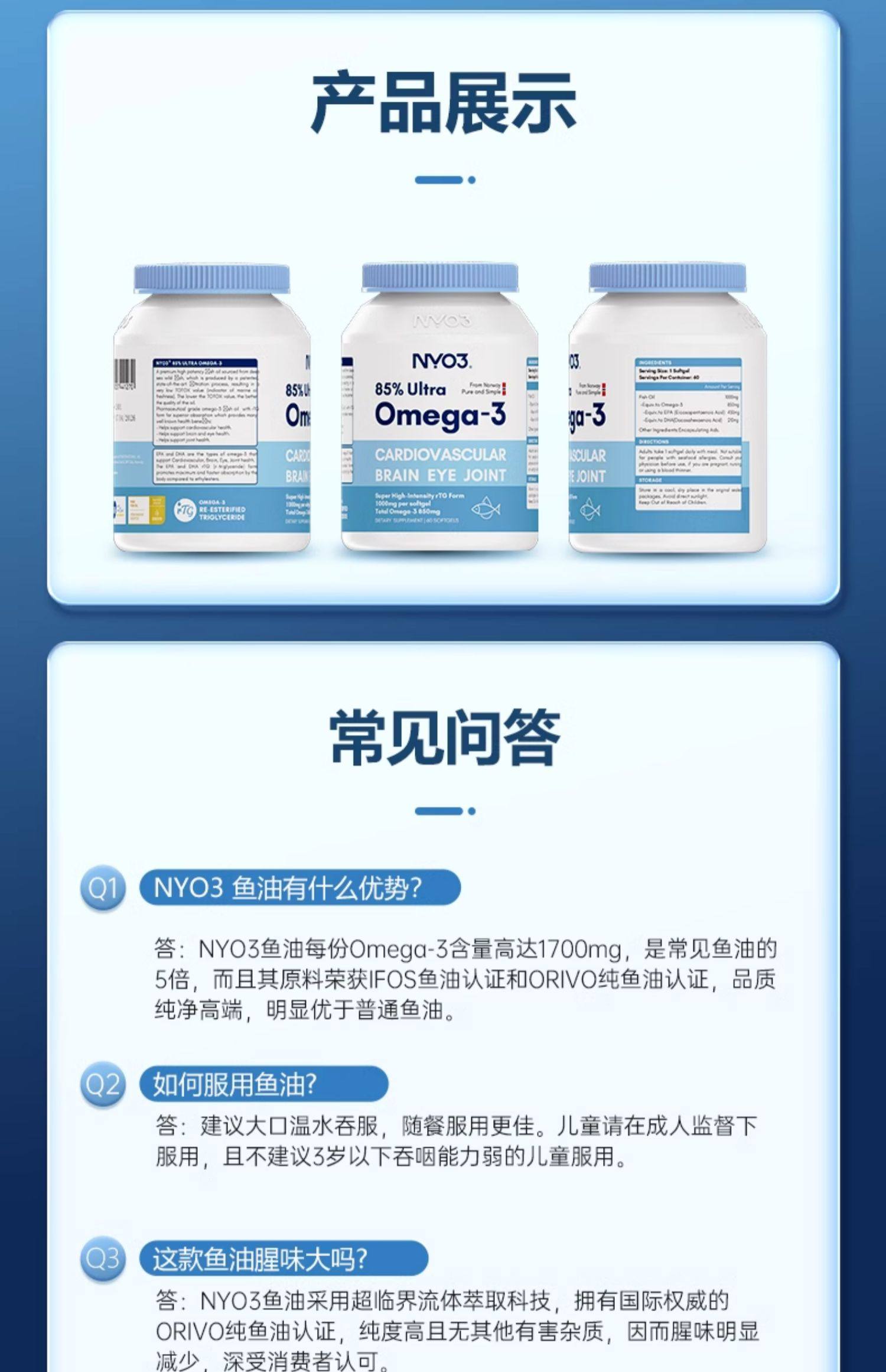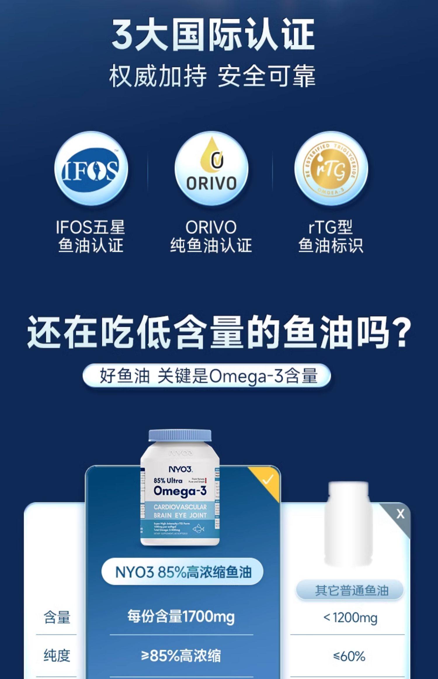 NYO3挪威深海鱼油软胶囊中老年高含量欧米茄鱼油omega3无腥味健身