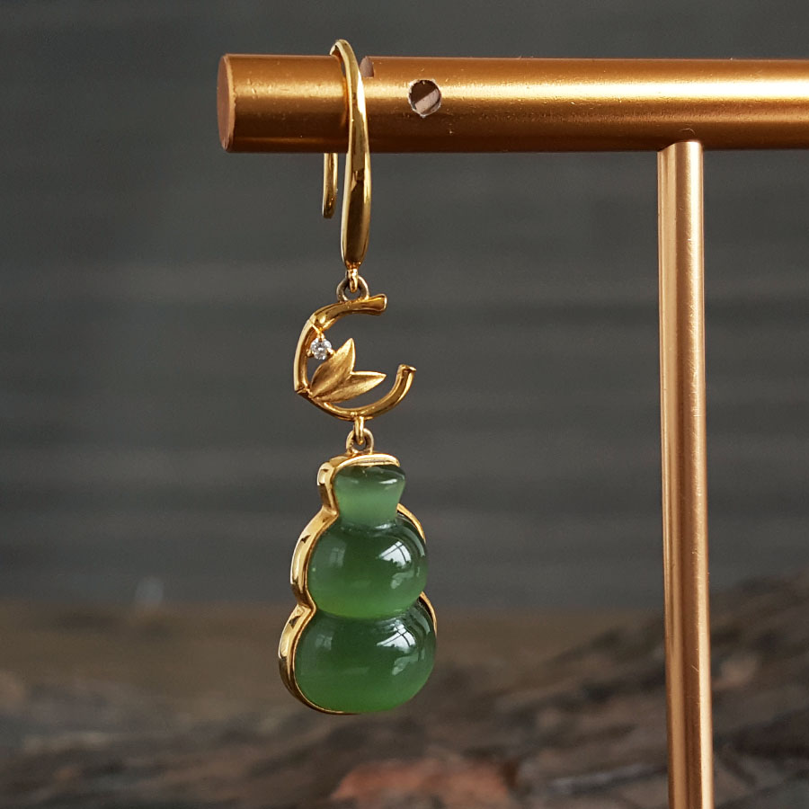 名称 | AU750黄金镶钻镶天然葫芦造型碧玉猫眼耳坠 |