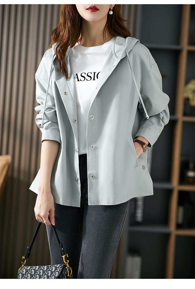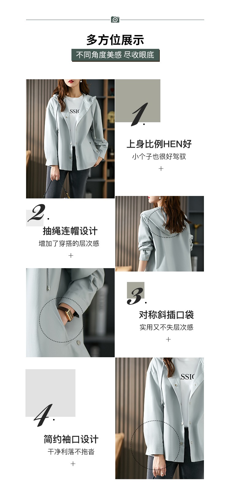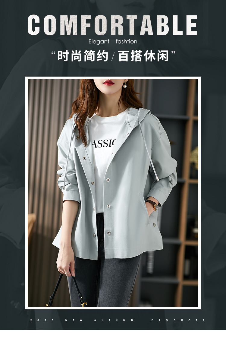 【现货7天】连帽短外套女2023秋季新款夹克韩版宽松显瘦外搭休闲风衣短款
