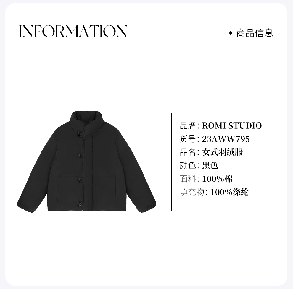ROMISTUDIO“双面两穿”90白鹅绒柔软肤感立领羽绒服 RWCWW86903